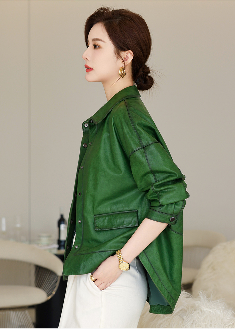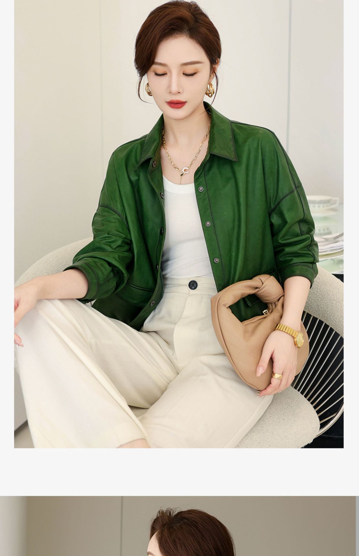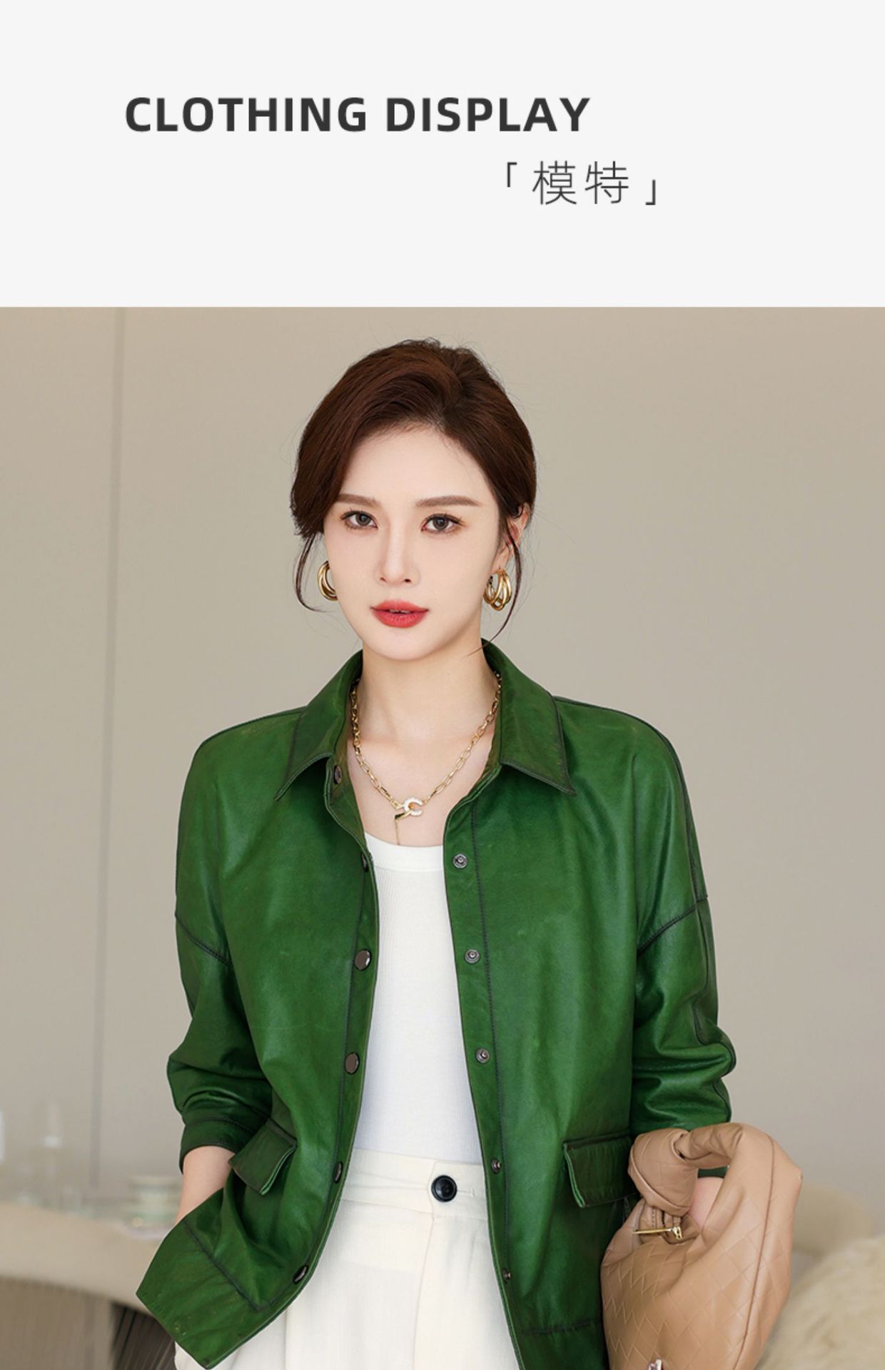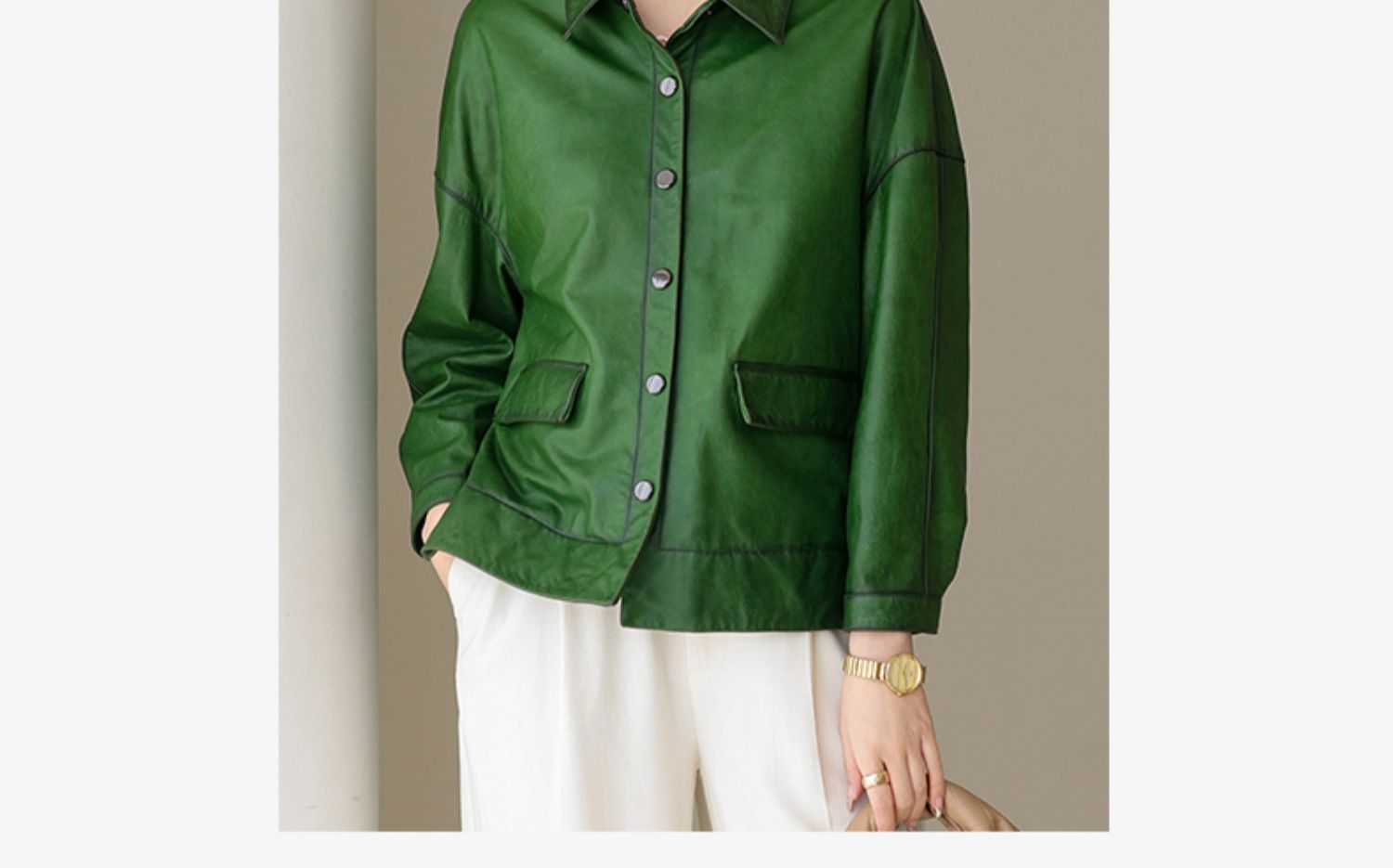 Áo khoác da cổ điển dành cho nữ, được làm từ chất liệu da cừu mềm mại và bền đẹp. Kiểu dáng rộng rãi mang đến sự thoải mái, phù hợp cho những ngày thu se lạnh hoặc tiết trời xuân mát mẻ. Thiết kế này có màu xanh lá tươi mới, tôn lên vẻ ngoại hình năng động. Bạn có thể mặc kết hợp cùng quần jeans và áo thun để tạo phong cách hằng ngày. Dùng khăn mềm ẩm để lau sạch bụi bám trên bề mặt, sau đó treo ở nơi khô ráo. | Tên sản phẩm: Áo Da Nữ Chất Liệu Da Bò Hàng Mùa Xuân Thu Đông - Thời Trang Nữ | Mã sản phẩm: B4910 - Giá: 6.010.000đ | Mã nhà sản xuất: HADGA-G06Hình ảnh sản phẩm