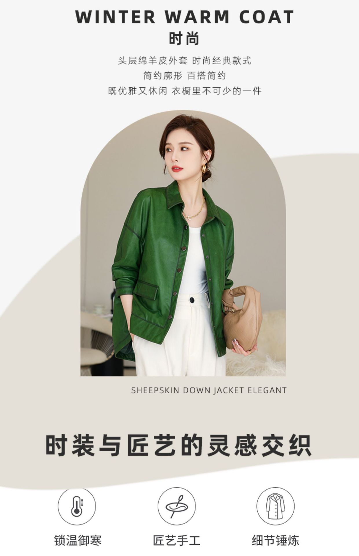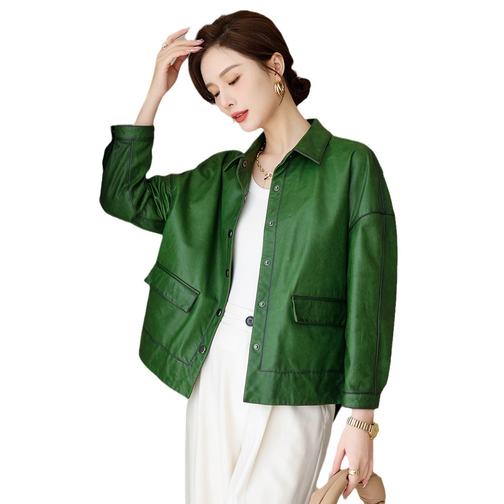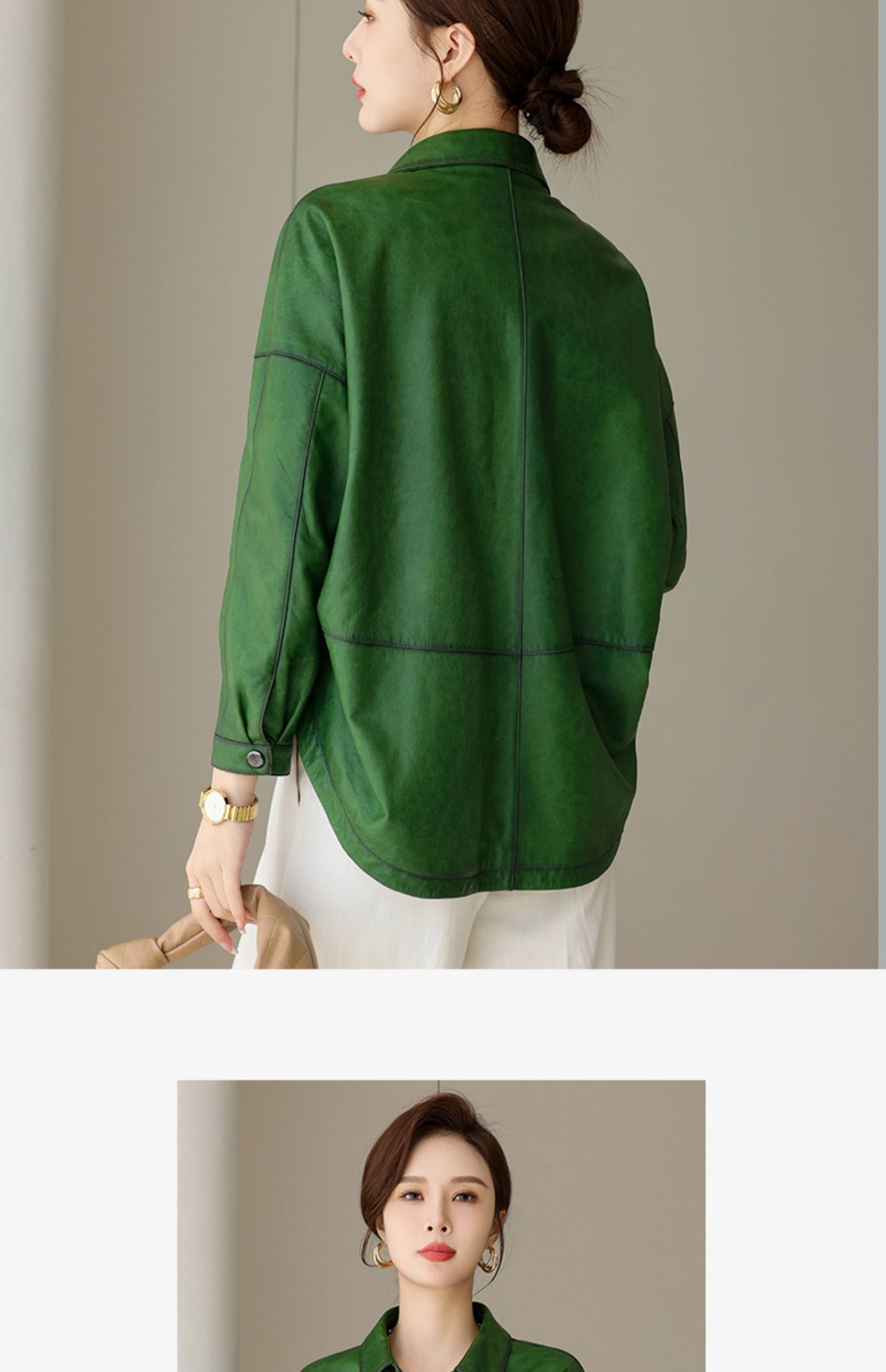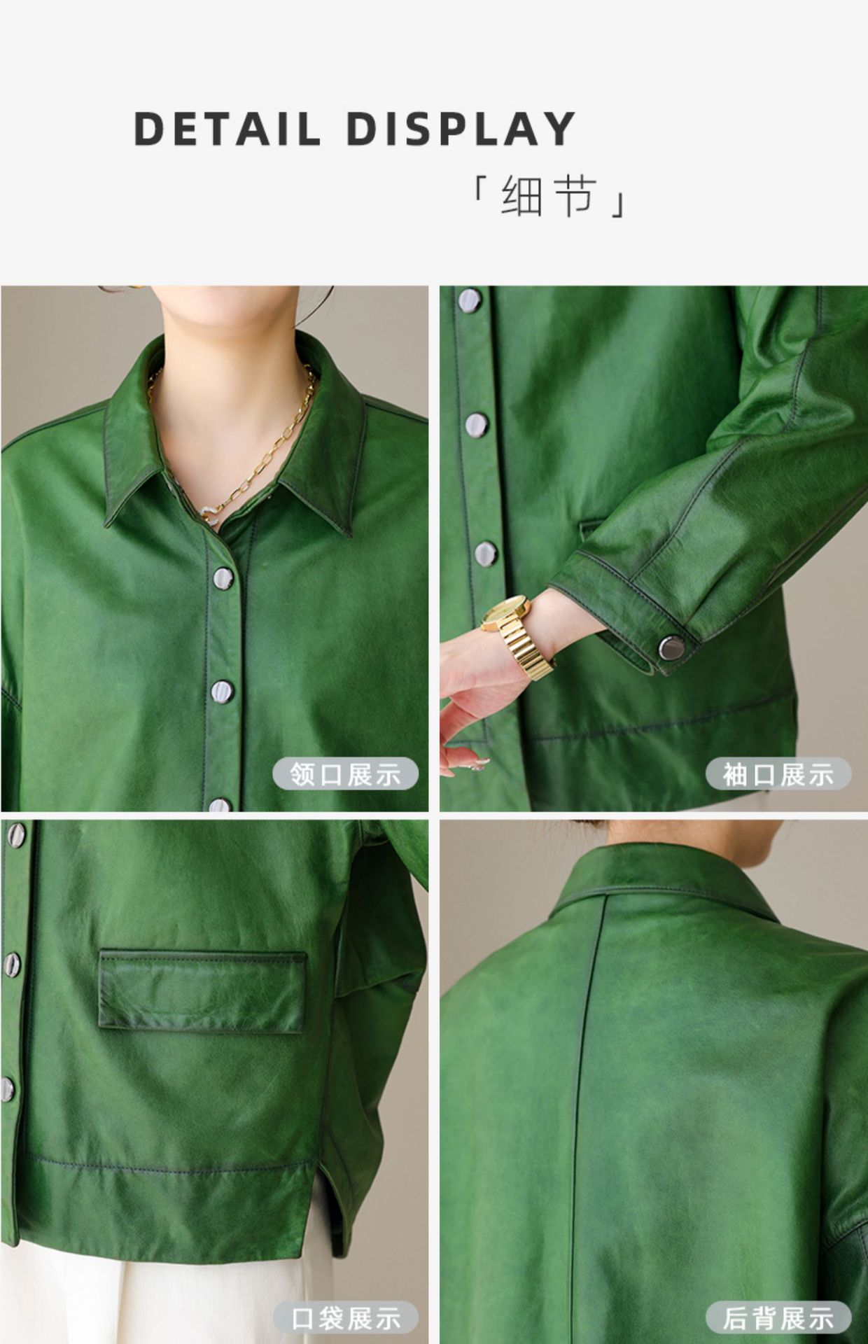 Áo khoác da cổ điển dành cho nữ, được làm từ chất liệu da cừu mềm mại và bền đẹp. Kiểu dáng rộng rãi mang đến sự thoải mái, phù hợp cho những ngày thu se lạnh hoặc tiết trời xuân mát mẻ. Thiết kế này có màu xanh lá tươi mới, tôn lên vẻ ngoại hình năng động. Bạn có thể mặc kết hợp cùng quần jeans và áo thun để tạo phong cách hằng ngày. Dùng khăn mềm ẩm để lau sạch bụi bám trên bề mặt, sau đó treo ở nơi khô ráo. | Tên sản phẩm: Áo Da Nữ Chất Liệu Da Bò Hàng Mùa Xuân Thu Đông - Thời Trang Nữ | Mã sản phẩm: B4910 - Giá: 6.010.000đ | Mã nhà sản xuất: HADGA-G06Hình ảnh sản phẩm