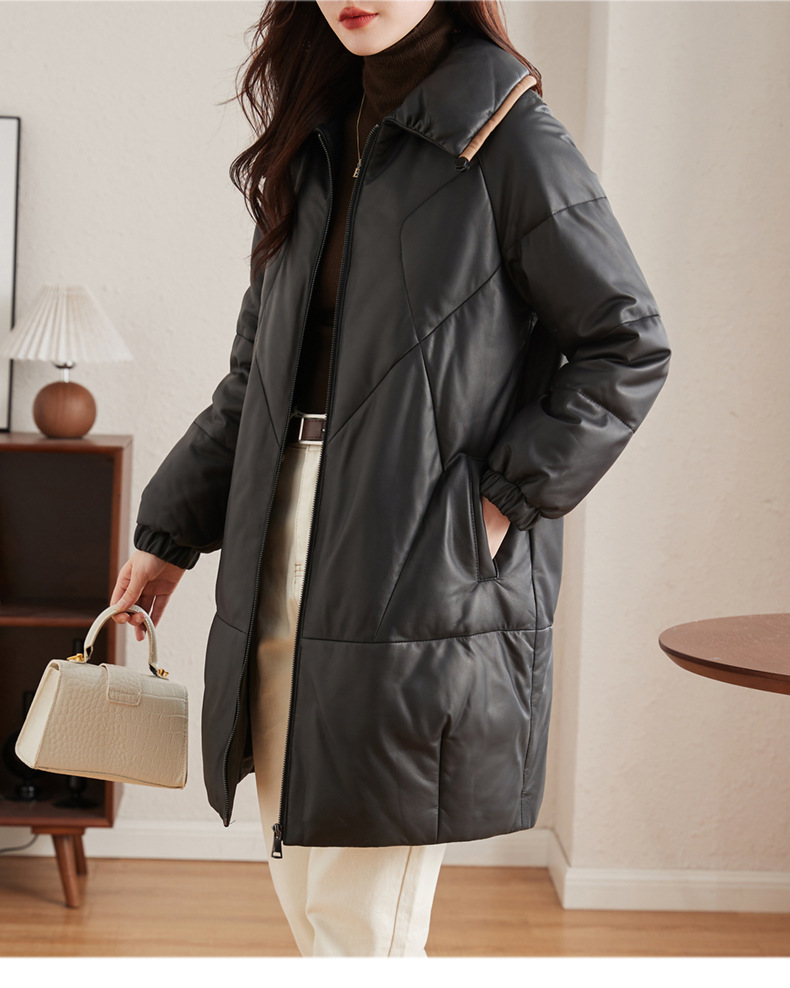 Áo khoác nữ dáng dài, phối hợp độc đáo giữa lớp da thật mềm mại bên ngoài và lớp lông vũ ấm áp bên trong. Kiểu dáng rộng rãi thoải mái, phù hợp với nhiều dáng người. Thiết kế cổ điển, dễ dàng phối cùng nhiều trang phục khác nhau. Sản phẩm giữ ấm tốt cho những ngày đông giá lạnh. Chỉ cần mặc trực tiếp và kéo khóa, bạn đã có một set đồ vừa ấm áp vừa thời trang. | Tên sản phẩm: Áo Da Nữ Chất Liệu Da Bò Big Size Ngoại Cỡ Dày Ấm Hàng Mùa Xuân Thu Đông - Thời Trang Nữ | Mã sản phẩm: B4968 - Giá: 6.010.000đ | Mã nhà sản xuất: HADGA-G06Hình ảnh sản phẩm