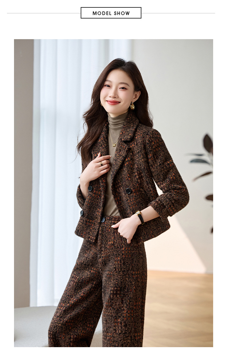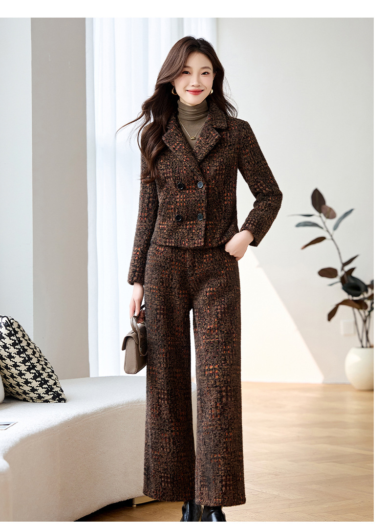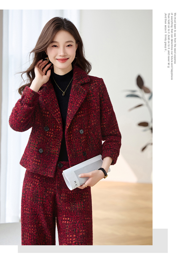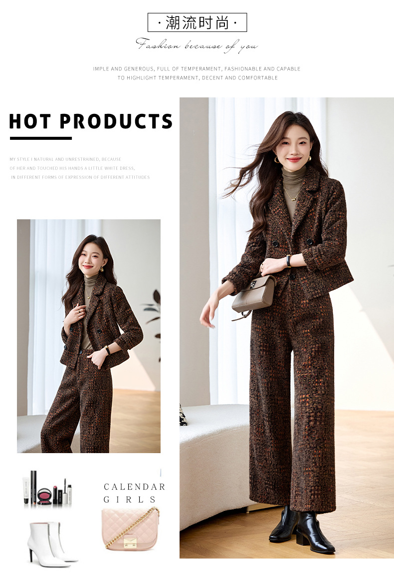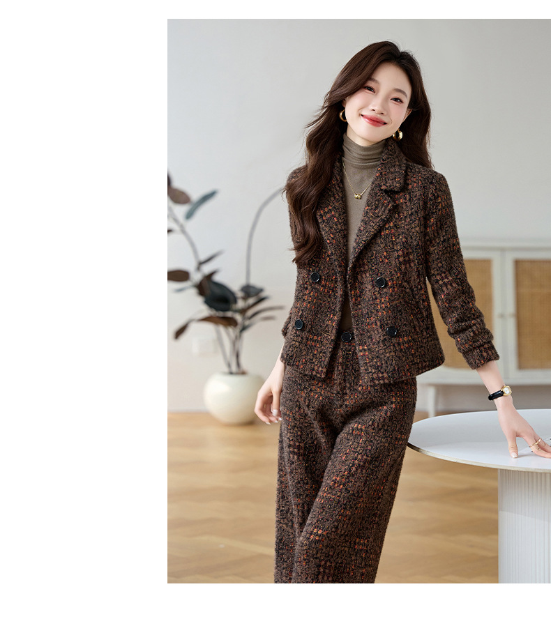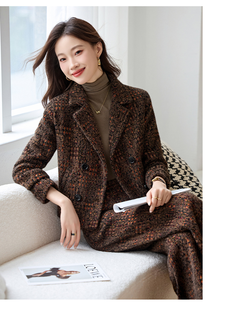Bộ trang phục mùa thu đông này gồm áo khoác và quần dài ống thẳng, tạo vẻ ngoài chỉn chu. Áo khoác có cổ ve và hàng khuy kép, được lót thêm lớp bông giữ ấm tốt. Chất vải dày dặn, giúp chắn gió và giữ nhiệt khi trời lạnh. Bạn có thể mặc nguyên bộ để đồng bộ, hoặc phối với trang phục khác. Phù hợp cho nhiều dịp như đi làm, gặp gỡ hay dạo phố. | Tên sản phẩm: Áo Vest Nữ Chất Liệu Vải Bông Vest Cả Bộ 2 Món Dày Ấm Hàng Mùa Xuân Thu Đông - Thời Trang Nữ | Mã sản phẩm: B4969 - Giá: 2.350.000đ | Mã nhà sản xuất: HADG-G05Hình ảnh sản phẩm