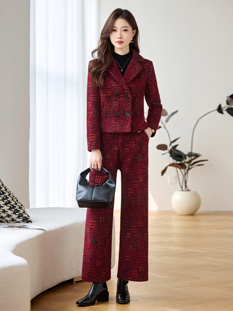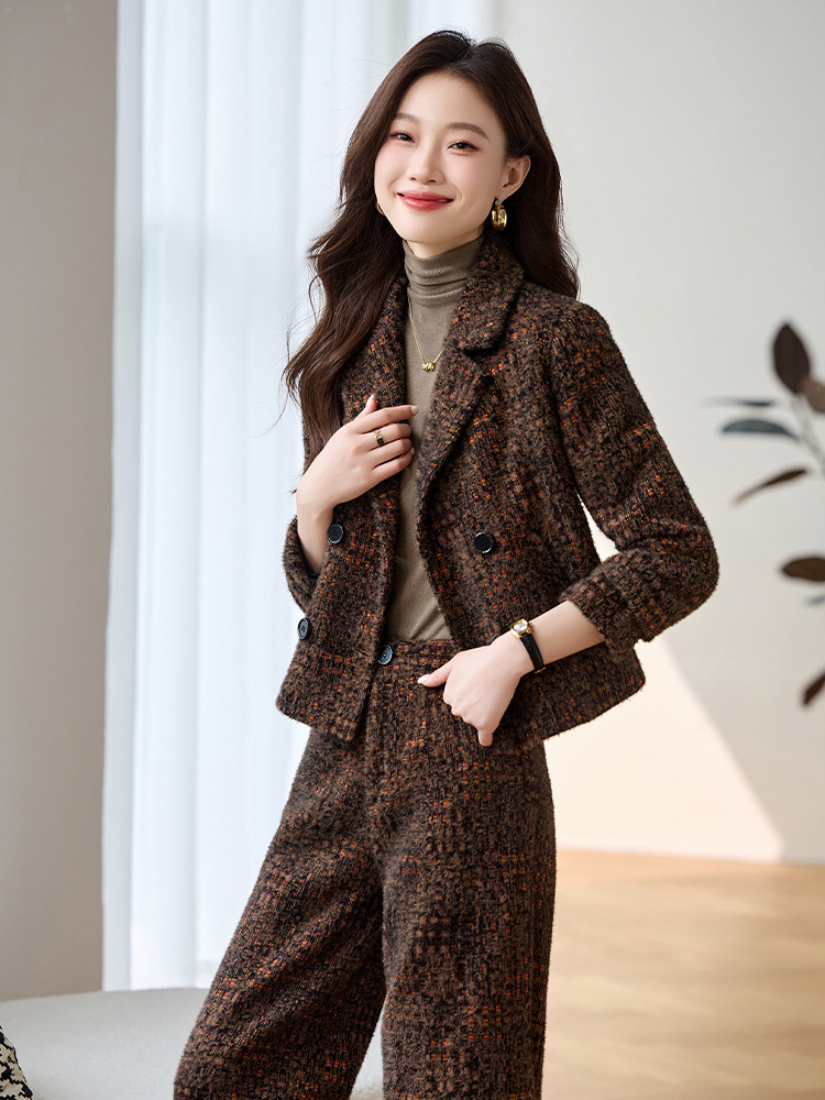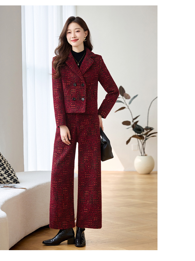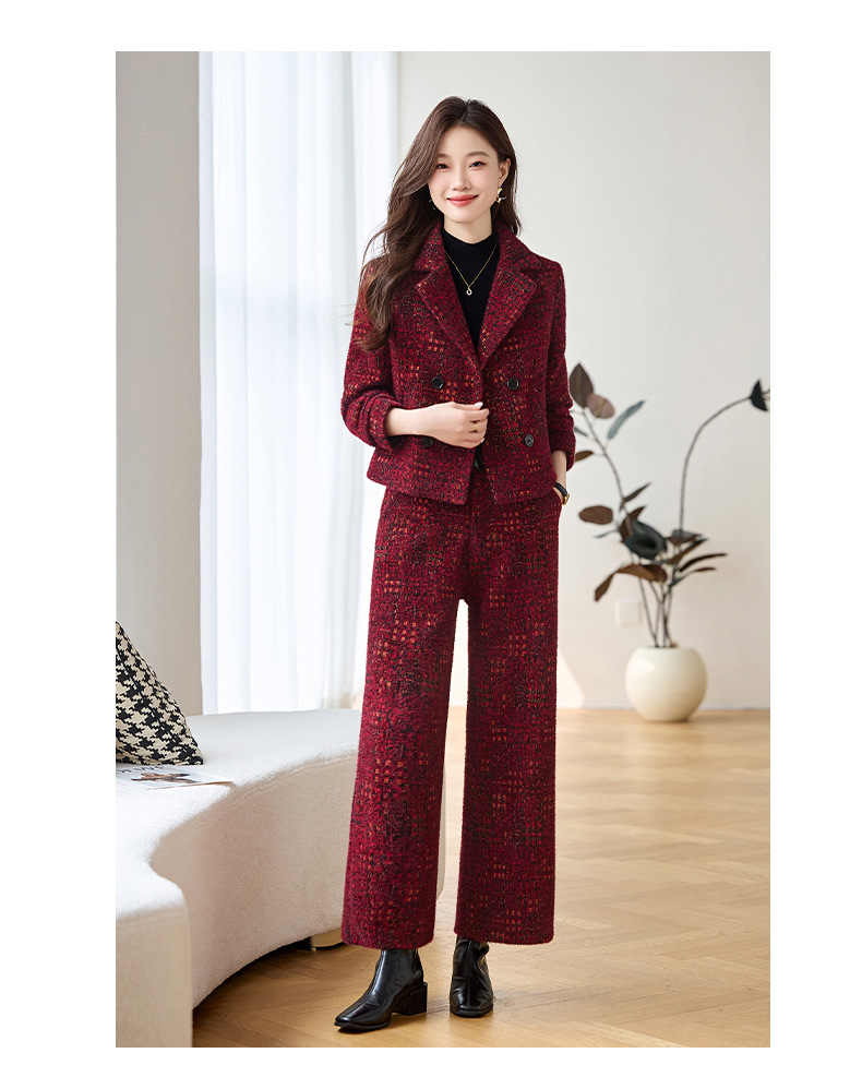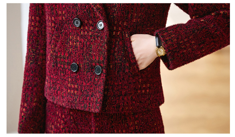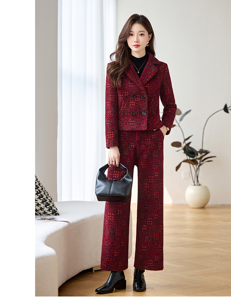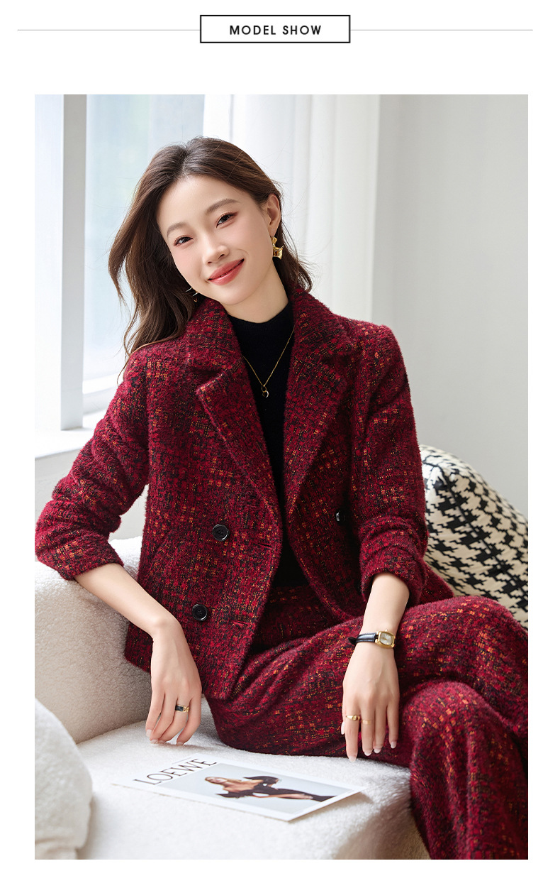 Bộ trang phục mùa thu đông này gồm áo khoác và quần dài ống thẳng, tạo vẻ ngoài chỉn chu. Áo khoác có cổ ve và hàng khuy kép, được lót thêm lớp bông giữ ấm tốt. Chất vải dày dặn, giúp chắn gió và giữ nhiệt khi trời lạnh. Bạn có thể mặc nguyên bộ để đồng bộ, hoặc phối với trang phục khác. Phù hợp cho nhiều dịp như đi làm, gặp gỡ hay dạo phố. | Tên sản phẩm: Áo Vest Nữ Chất Liệu Vải Bông Vest Cả Bộ 2 Món Dày Ấm Hàng Mùa Xuân Thu Đông - Thời Trang Nữ | Mã sản phẩm: B4969 - Giá: 2.350.000đ | Mã nhà sản xuất: HADG-G05Hình ảnh sản phẩm