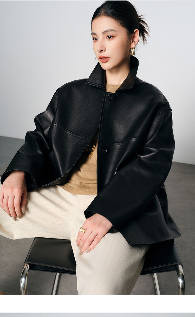 Áo khoác da cừu non dành cho nữ, thiết kế dáng áo choàng với cổ bẻ và dây thắt eo. Sản phẩm được làm từ chất liệu da thật mềm mại, mang đến cảm giác dễ chịu khi mặc. Kiểu dáng dễ phối đồ, phù hợp cho thời tiết mùa xuân và mùa thu. Cách mặc đơn giản, chỉ cần cài hàng cúc đơn phía trước và thắt dây eo để tạo điểm nhấn. Đây là mẫu áo mới ra mắt, giúp bạn có nhiều cách phối đồ đa dạng. | Tên sản phẩm: Áo Da Nữ Chất Liệu Da Bò Kín Cổ Hàng Mùa Xuân Thu Đông - Thời Trang Nữ | Mã sản phẩm: B4971 - Giá: 5.090.000đ | Mã nhà sản xuất: HADGA-G06Hình ảnh sản phẩm