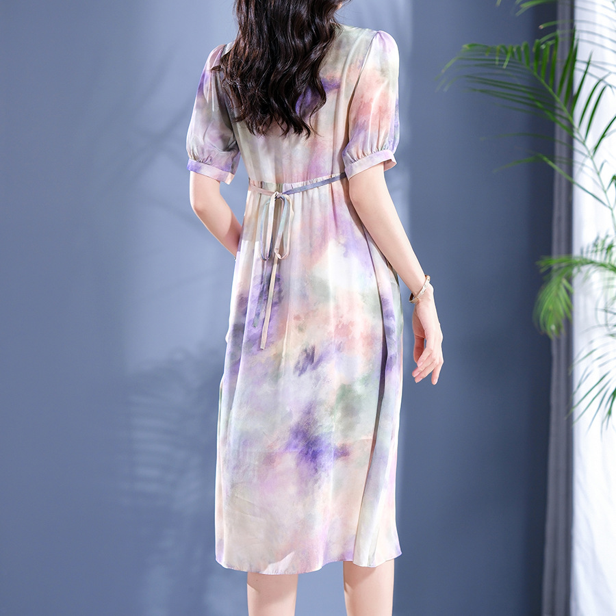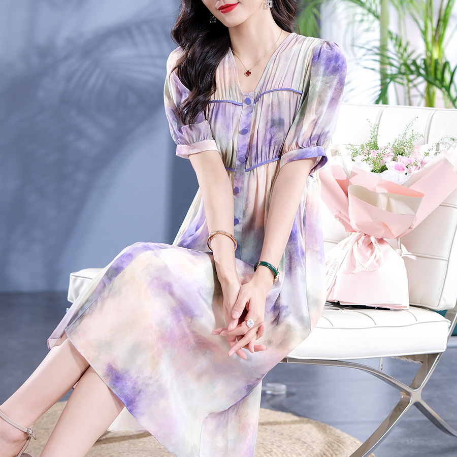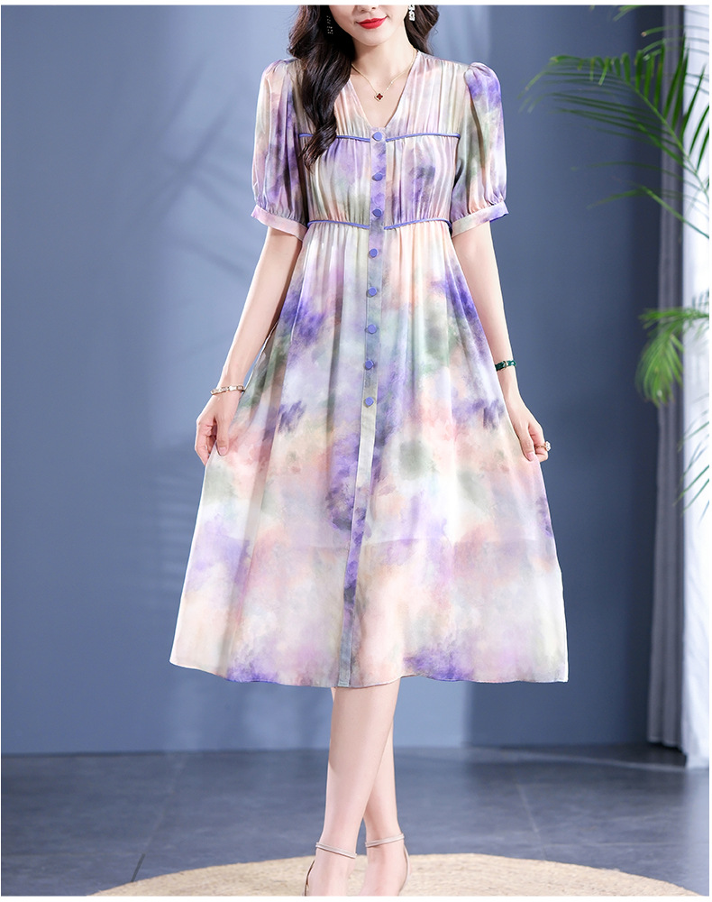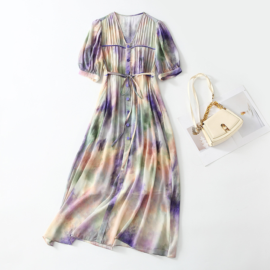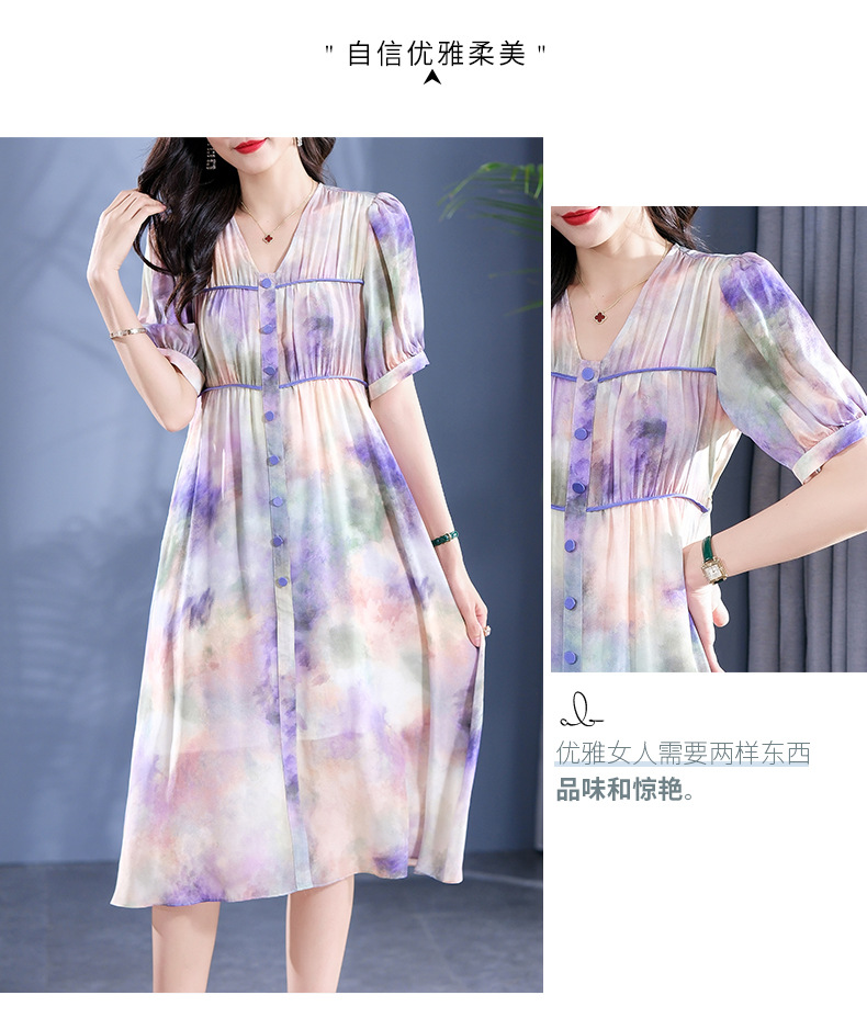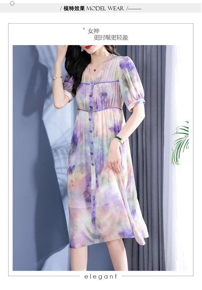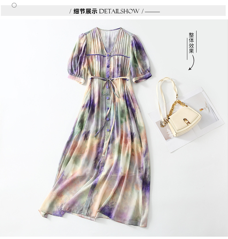 Chiếc váy này có phần cổ khoét hình chữ V tạo điểm nhấn. Điểm đặc biệt nằm ở phần ngực với những đường nhún được phối màu loang nhẹ nhàng, tạo hiệu ứng chuyển sắc tinh tế. Chất liệu lụa mềm mại giúp tôn lên các đường nét của cơ thể. Sản phẩm phù hợp để mặc trong nhiều dịp khác nhau. Bạn chỉ cần giặt nhẹ nhàng và phơi khô trong bóng mát để giữ vẻ đẹp lâu bền cho váy. | Tên sản phẩm: Váy Đầm Liền Thân Nữ Chất Liệu Lụa Tơ Tằm Cổ Chữ V - Thời Trang Nữ | Mã sản phẩm: B4981 - Giá: 2.910.000đ | Mã nhà sản xuất: SHDA-G06Hình ảnh sản phẩm
