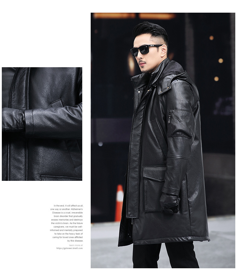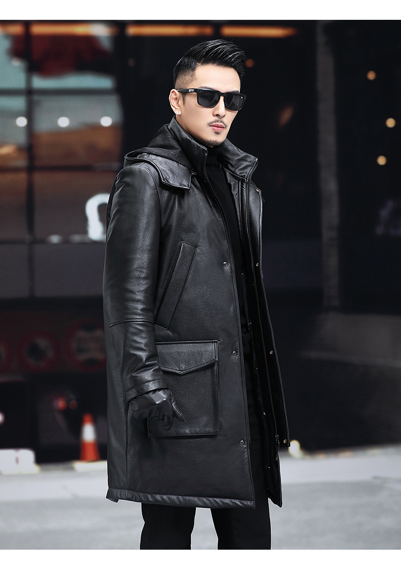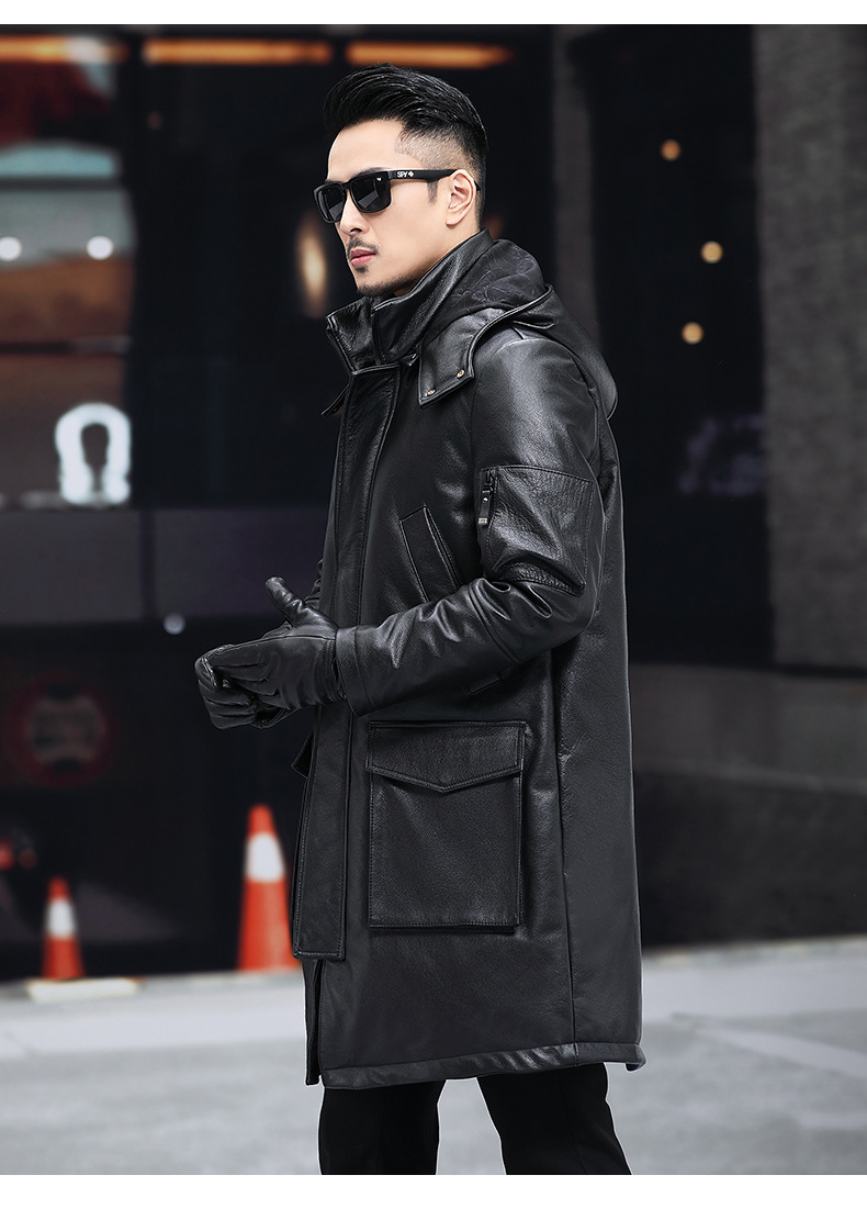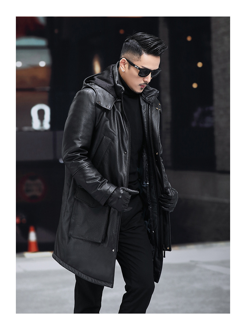 Áo khoác mùa đông này được làm từ chất liệu da thật mềm mại bên ngoài, kết hợp lớp lông vũ dày bên trong giữ ấm rất tốt. Kiểu dáng dài thời trang, có mũ trùm tiện lợi che nắng mưa. Sản phẩm phù hợp mặc trong những ngày trời lạnh. Bạn chỉ cần mặc trực tiếp như các loại áo khoác thông thường, giữ ấm cho cơ thể mà vẫn thoải mái vận động nhẹ nhàng. | Tên sản phẩm: Áo Da Nam Chất Liệu Da Bò Mũ Liền Dày Ấm Hàng Mùa Xuân Thu Đông - Thời Trang Nam | Mã sản phẩm: B4994 - Giá: 9.250.000đ | Mã nhà sản xuất: HADGA-G06Hình ảnh sản phẩm