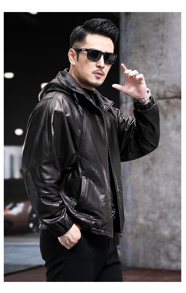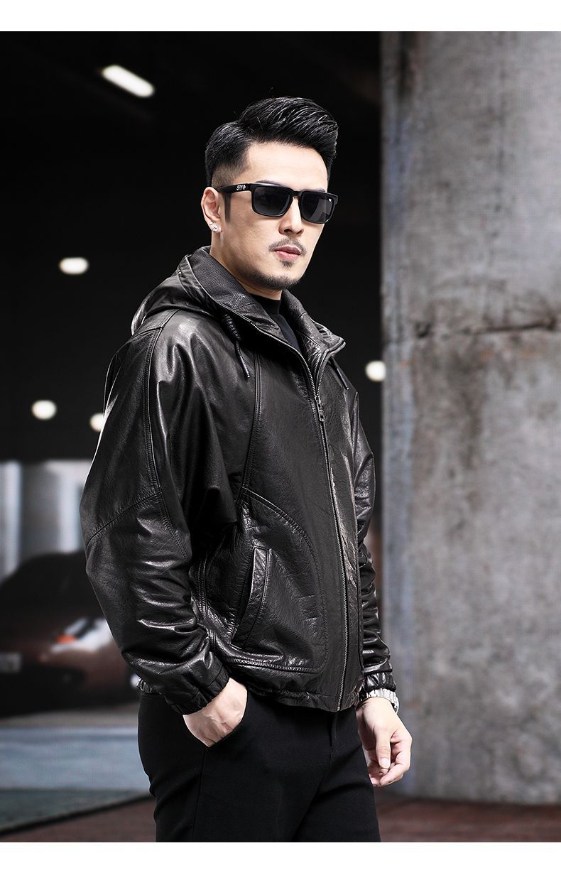 Áo khoác da nam kiểu dáng rộng rãi, thoải mái. Chất liệu từ da bò non xử lý dầu sáp, cho bề mặt mềm mại và vẻ ngoài độc đáo. Thiết kế cổ liền nón, tay áo phồng dạng cánh dơi và đường v nối hạ thấp tạo phong cách trẻ trung, năng động. Sản phẩm dễ dàng phối cùng nhiều loại trang phục khác nhau. Khi mặc, tránh tiếp xúc với nước mưa và nơi có nhiệt độ cao để giữ được độ bền đẹp của chất da. | Tên sản phẩm: Áo Da Nam Chất Liệu Da Bò Mũ Liền - Thời Trang Nam | Mã sản phẩm: B4998 - Giá: 6.940.000đ | Mã nhà sản xuất: HADGA-G06Hình ảnh sản phẩm