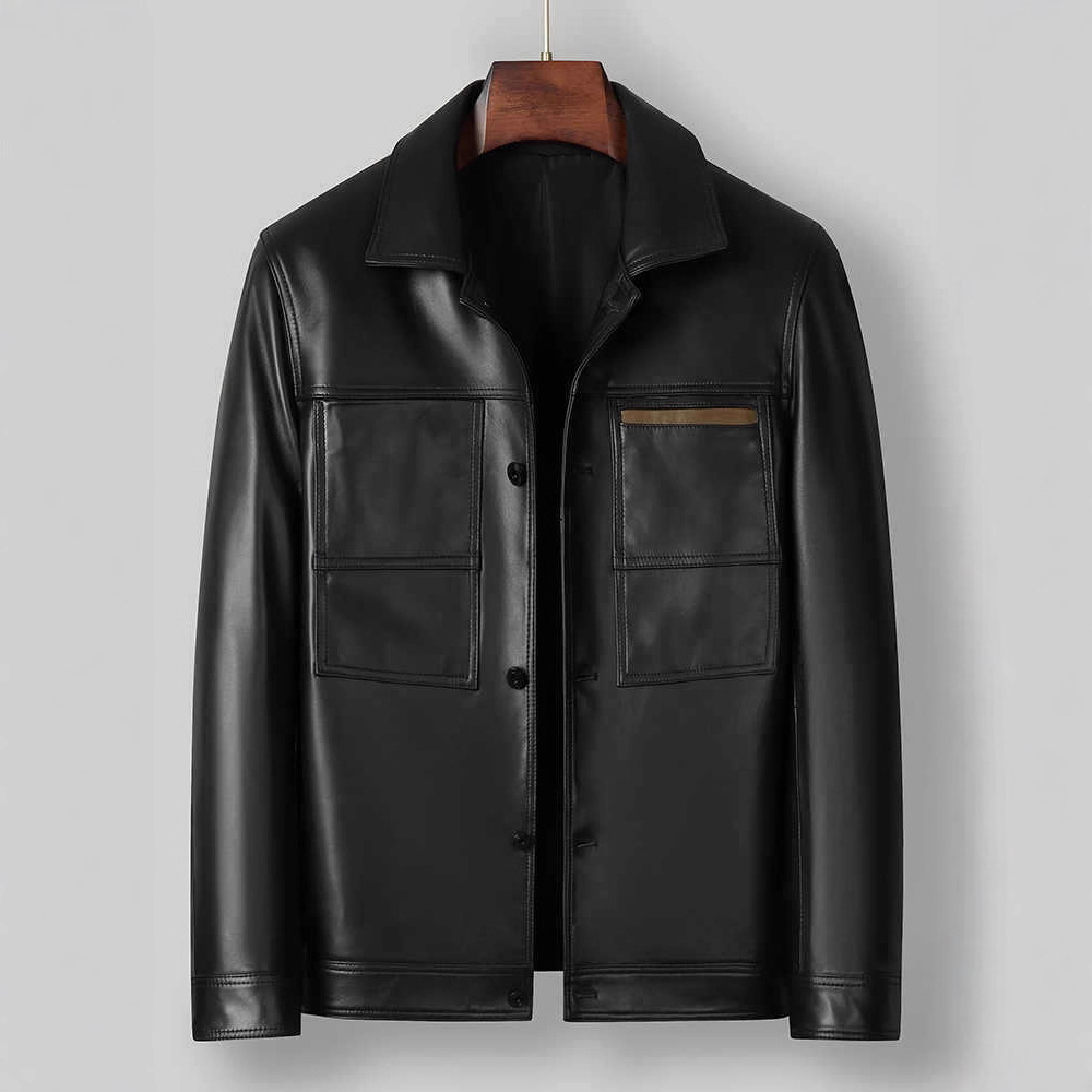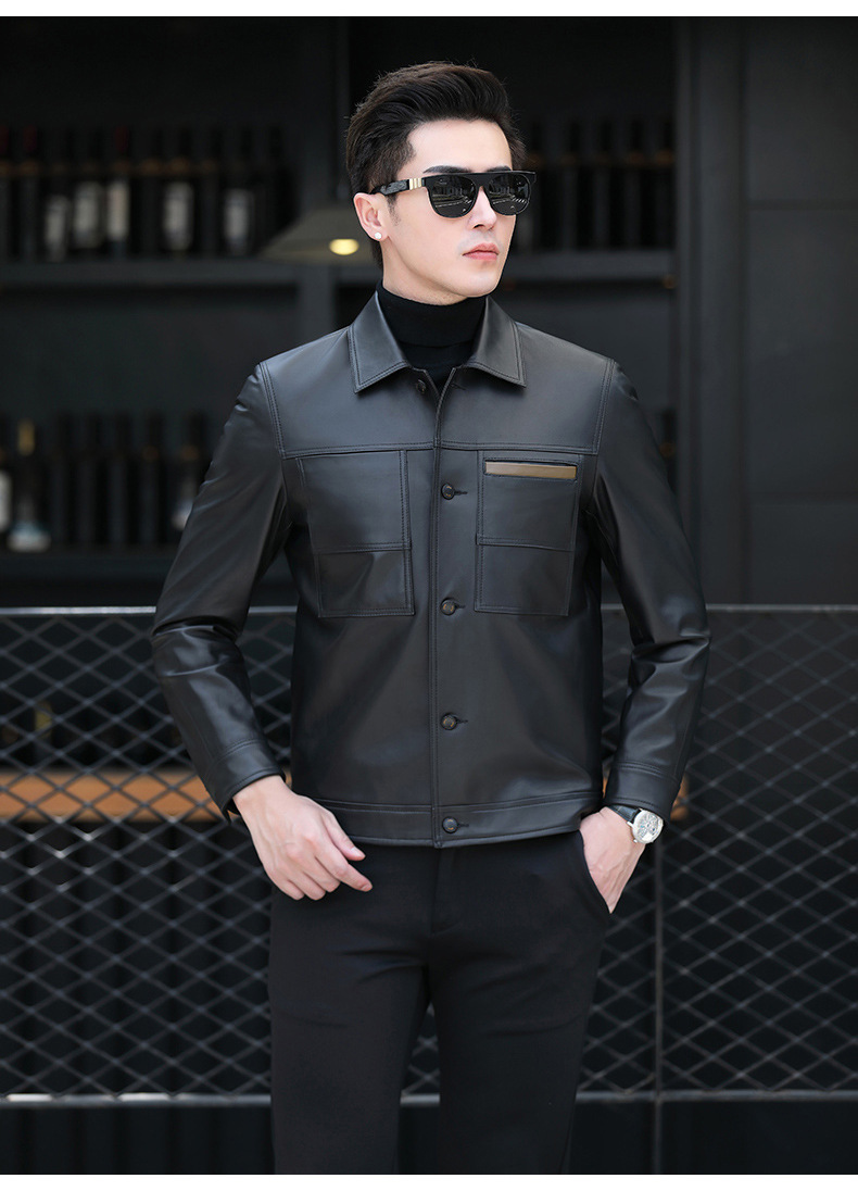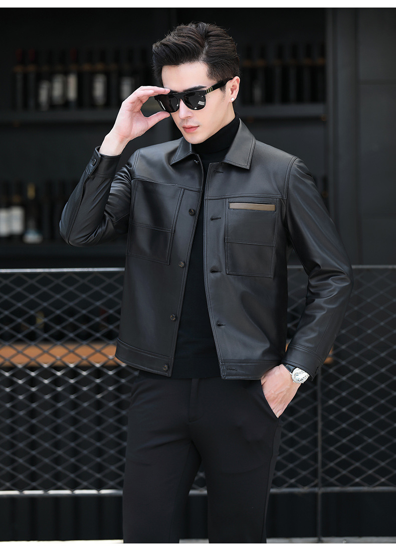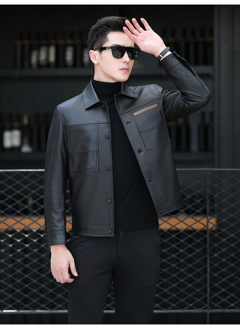 Áo khoác da cừu non dáng ngắn dành cho nam, thiết kế cổ bẻ lịch sự. Sản phẩm phù hợp cho cả công sở và những dịp giao lưu thường ngày. Chất liệu da thật từ lớp da đầu tiên, mềm mại và thoải mái khi mặc. Áo giữ ấm tốt trong tiết trời thu đông. Dễ dàng phối cùng quần âu và áo sơ mi. Bảo quản nơi khô ráo, dùng khăn mềm lau sạch bụi bám trên bề mặt sau khi dùng. | Tên sản phẩm: Áo Da Nam Chất Liệu Da Bò Kín Cổ Hàng Mùa Xuân Thu Đông - Thời Trang Nam | Mã sản phẩm: B5001 - Giá: 4.440.000đ | Mã nhà sản xuất: HADGA-G06Hình ảnh sản phẩm