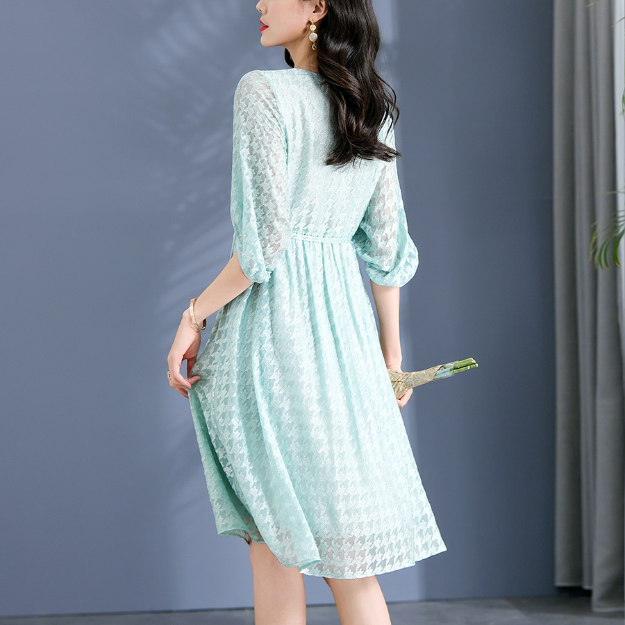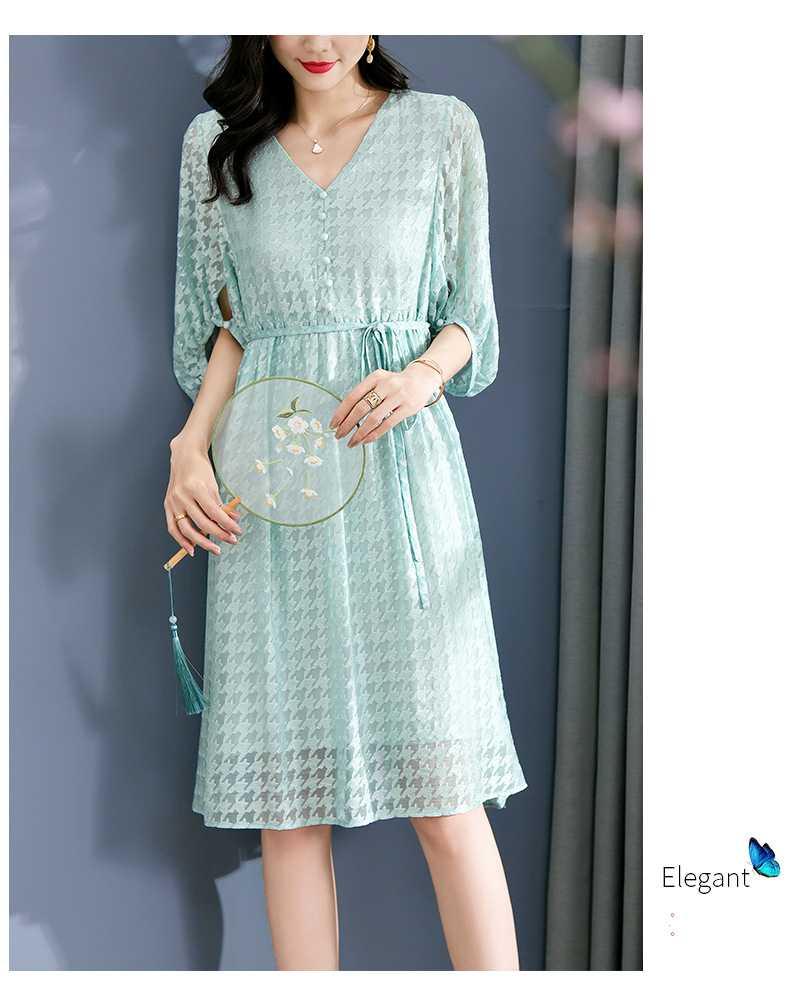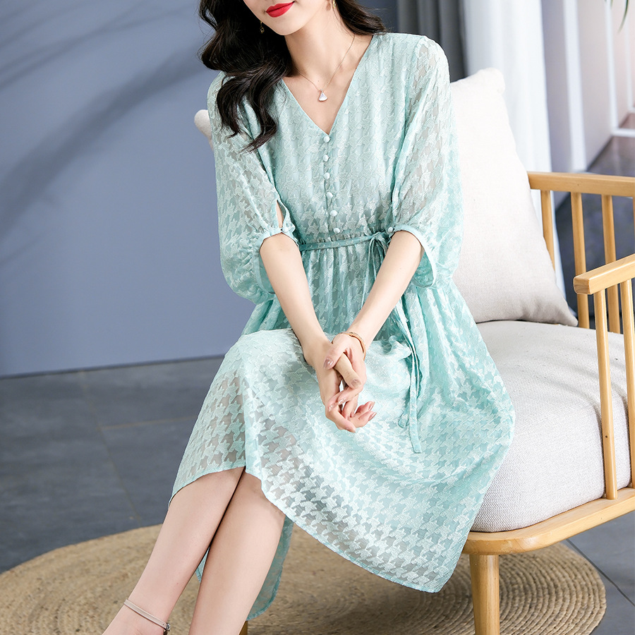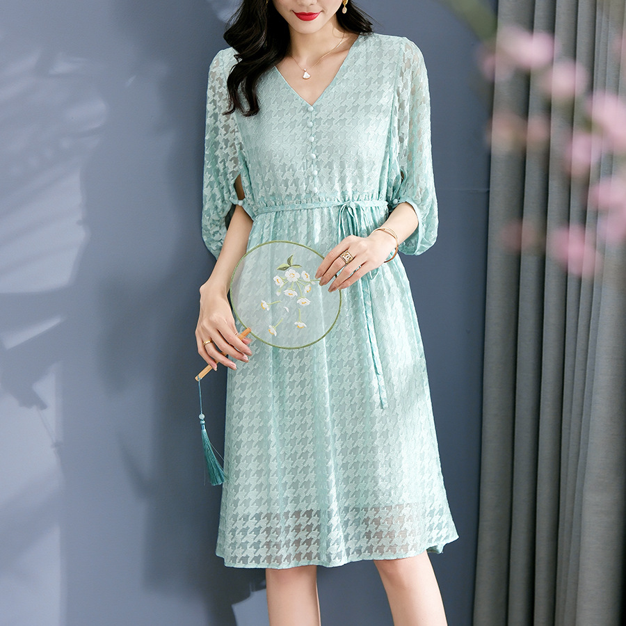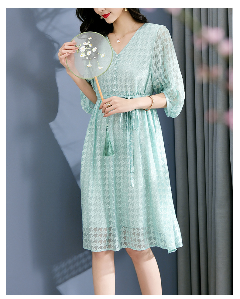 Chiếc đầm ôm dáng với họa tiết caro đặc trưng, tạo điểm nhấn nổi bật. Cổ khoét sâu hình chữ V tôn vinh vòng cổ, kết hợp cùng dây buộc nơ điều chỉnh linh hoạt giúp tôn lên đường cong cơ thể. Chất liệu lụa mềm mại mang đến cảm giác dễ chịu khi mặc. Sản phẩm phù hợp cho nhiều dịp khác nhau, từ dạo phố đến các buổi gặp mặt. Có thể giặt tay nhẹ nhàng và phơi nơi thoáng mát để giữ form vải. | Tên sản phẩm: Váy Đầm Liền Thân Nữ Chất Liệu Lụa Tơ Tằm Kẻ Caro Kẻ Caro Cổ Chữ V - Thời Trang Nữ | Mã sản phẩm: B5002 - Giá: 2.640.000đ | Mã nhà sản xuất: SHDA-G06Hình ảnh sản phẩm