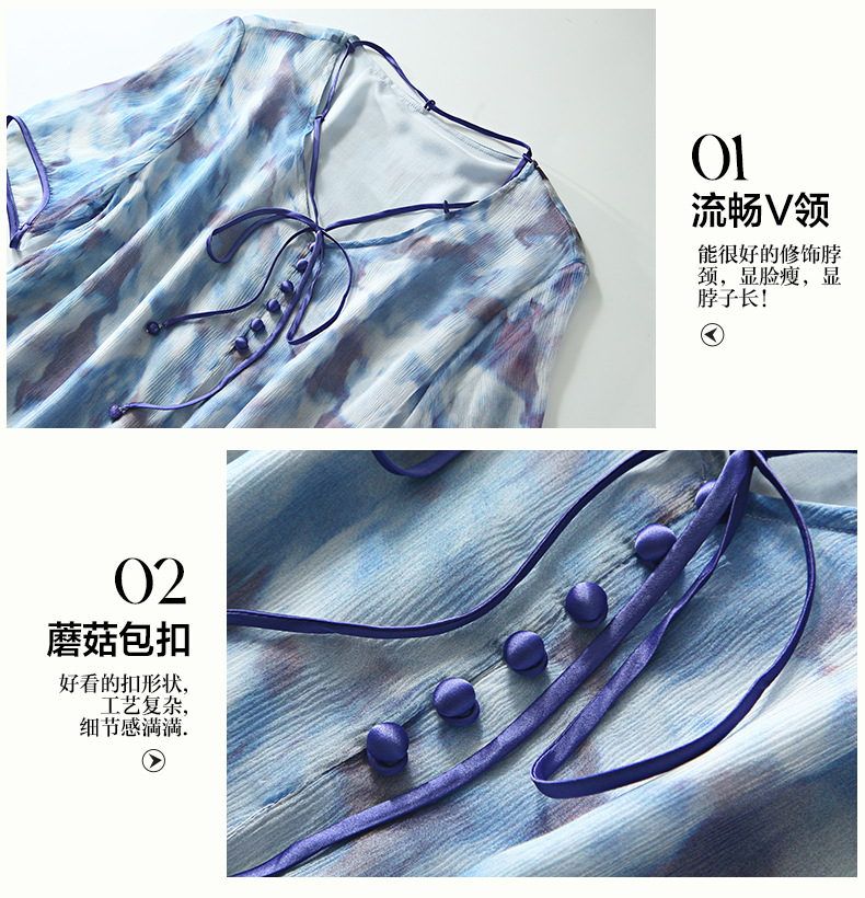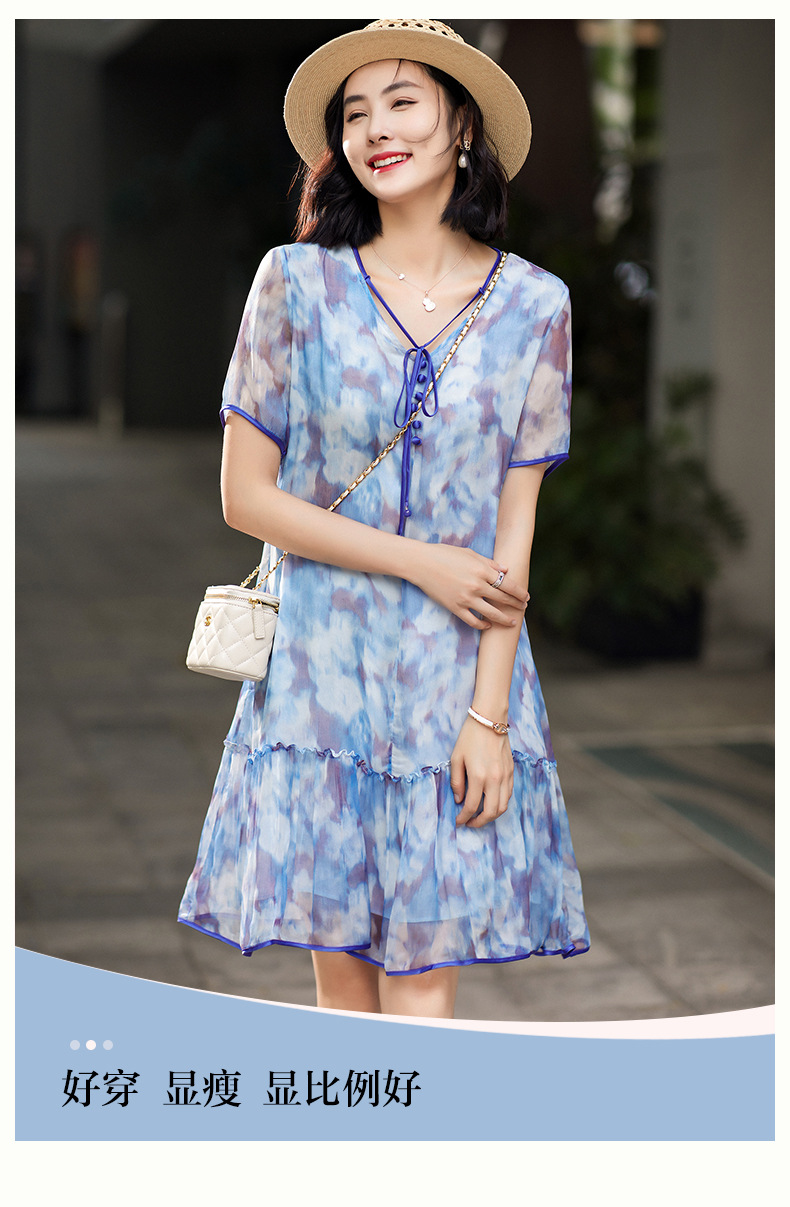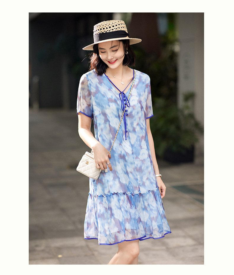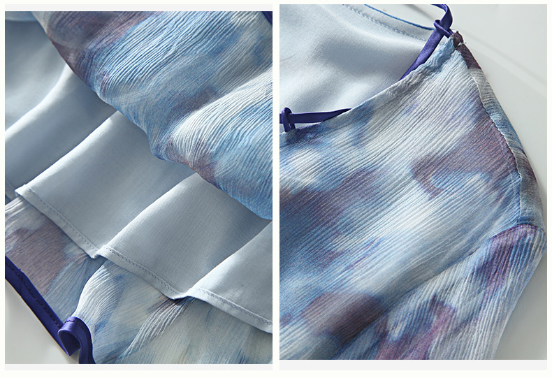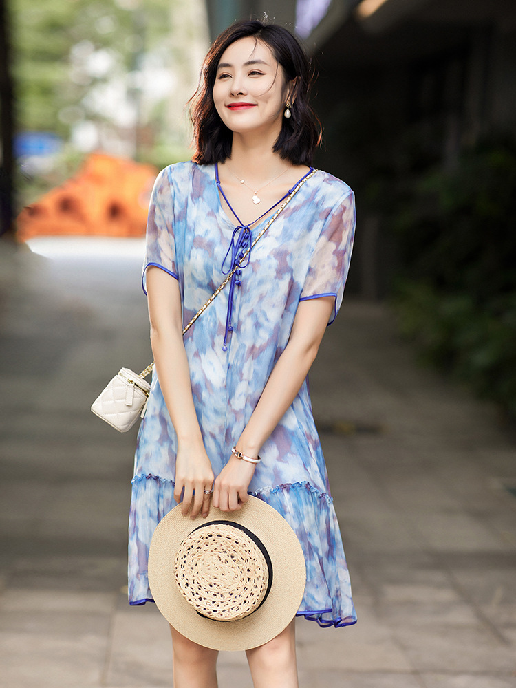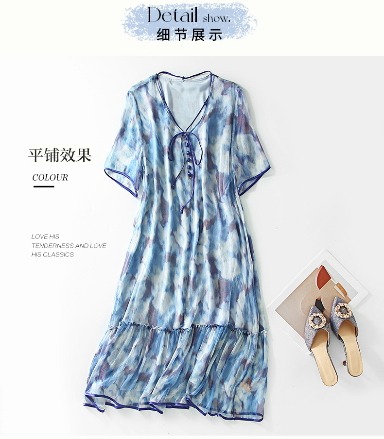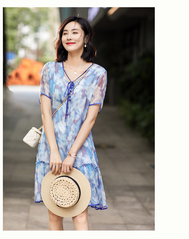Chiếc đầm được dệt từ sợi tơ tự nhiên, mang đến cảm giác mềm mại và thoáng mát khi mặc. Điểm nổi bật là họa tiết in loang màu như những đám mây, tạo nên vẻ đẹp nghệ thuật và mới lạ. Kiểu dáng đầm suông nhẹ nhàng, phù hợp cho nhiều dịp sinh hoạt hằng ngày. Có thể giặt bằng tay với nước lạnh và phơi ở nơi râm mát để giữ chất vải được bền lâu. | Tên sản phẩm: Váy Đầm Liền Thân Nữ Chất Liệu Lụa Tơ Tằm Họa Tiết Hoa - Thời Trang Nữ | Mã sản phẩm: B5010 - Giá: 2.690.000đ | Mã nhà sản xuất: SHDA-G06Hình ảnh sản phẩm