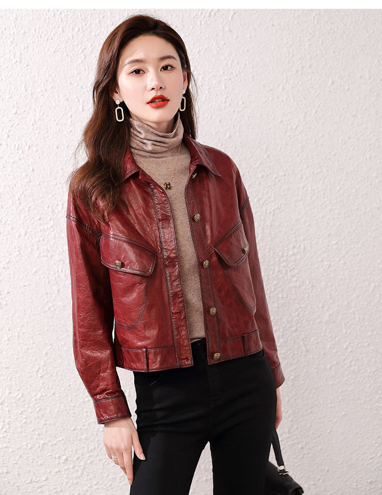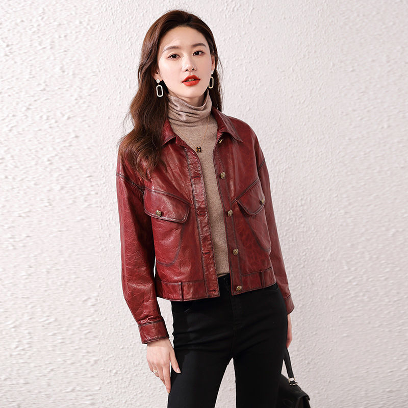 Áo khoác da cổ bẻ dành cho nữ, thiết kế kiểu dáng ngắn gọn và năng động. Sản phẩm được làm từ da cừu non mềm mại, có bề mặt bóng nhẹ tạo vẻ cá tính. Áo phù hợp mặc trong tiết trời mát mẻ của mùa xuân và mùa thu. Bạn có thể kết hợp cùng quần jeans và áo thun để tạo phong cách trẻ trung, hoặc mặc với váy để dịu dàng hơn. Mẫu áo này đặc biệt phù hợp cho những bạn có vóc dáng nhỏ nhắn. | Tên sản phẩm: Áo Da Nữ Chất Liệu Da Bò Kín Cổ Hàng Mùa Xuân Thu Đông - Thời Trang Nữ | Mã sản phẩm: B5027 - Giá: 5.370.000đ | Mã nhà sản xuất: HADGA-G06Hình ảnh sản phẩm