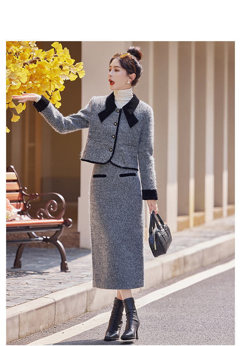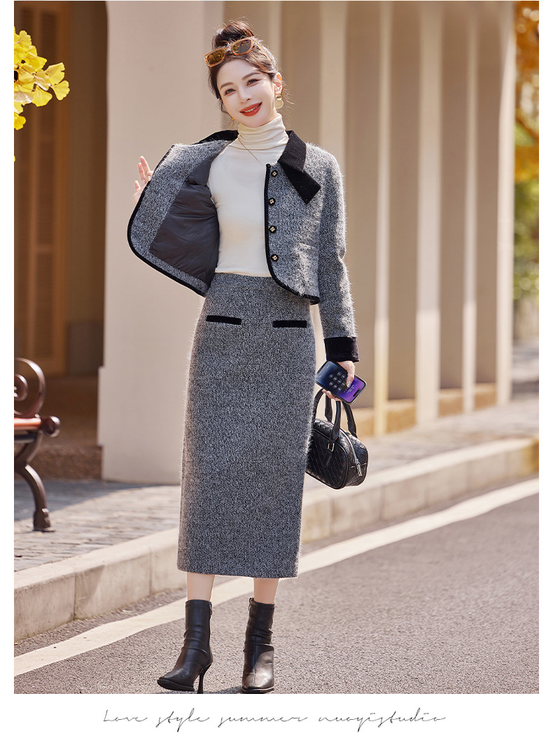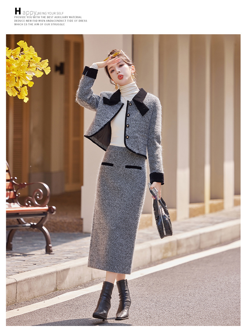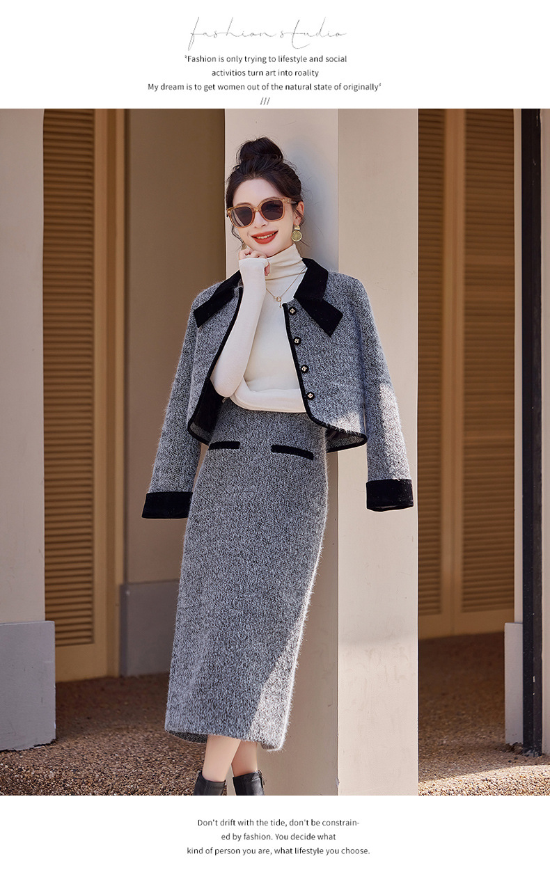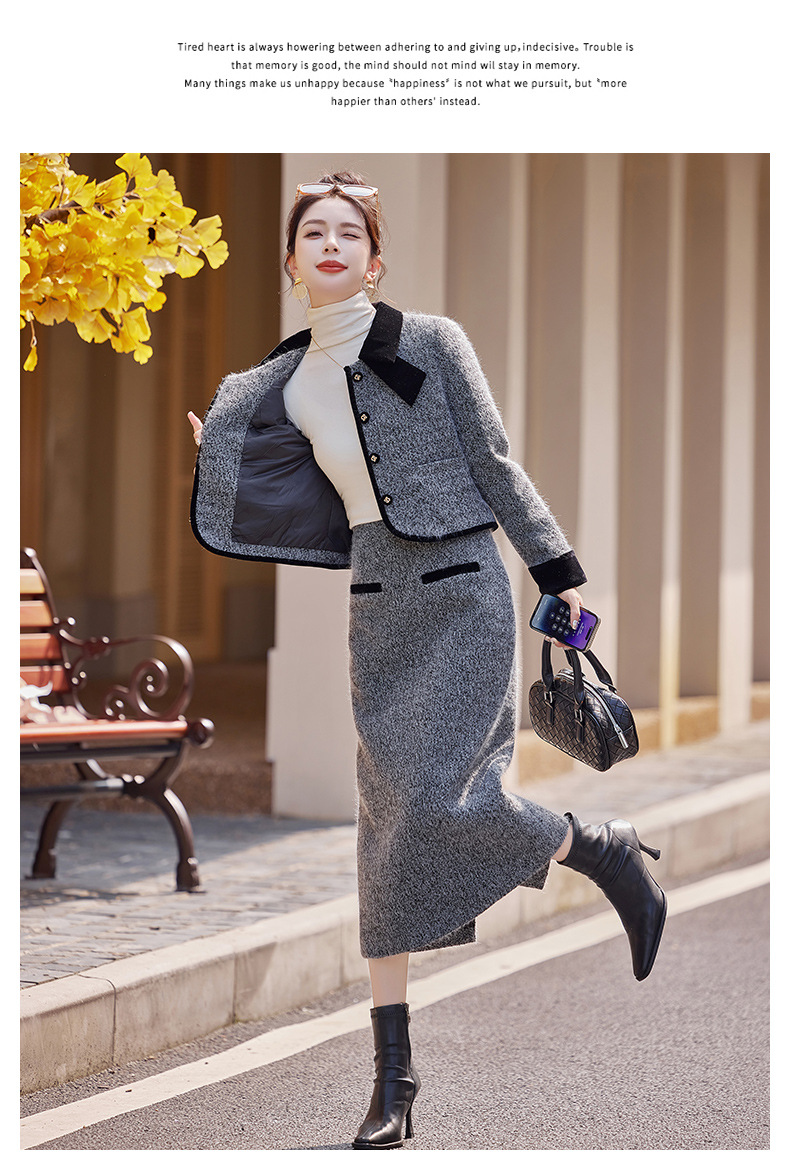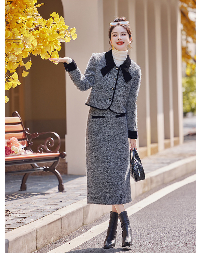 Bộ trang phục hai mảnh gồm áo khoác kiểu dáng vừa vặn và chân váy dài qua gối. Chất vải dày dặn, phù hợp giữ ấm nhẹ cho những ngày thu đông. Thiết kế tạo điểm nhấn với đường cắt may tỉ mỉ và kiểu dáng thanh lịch, giúp dễ dàng phối đồ. Có thể mặc nguyên bộ để tạo vẻ chỉn chu, hoặc tách riêng từng món để kết hợp với các trang phục khác nhau trong tủ đồ. | Tên sản phẩm: Áo Khoác Nữ Cả Bộ 2 Món Hàng Mùa Xuân Thu Đông - Thời Trang Nữ | Mã sản phẩm: B5029 - Giá: 2.290.000đ | Mã nhà sản xuất: HADG-G05Hình ảnh sản phẩm