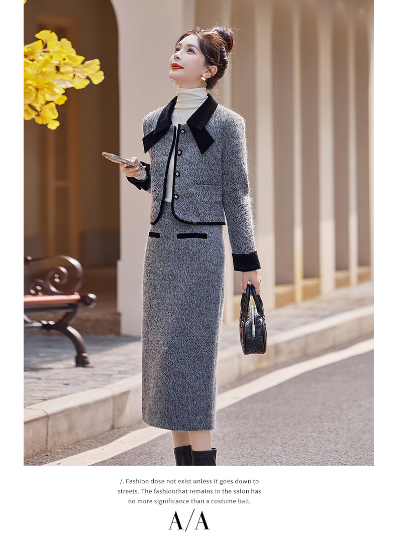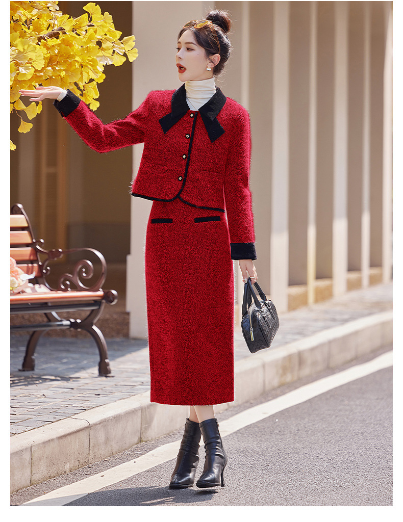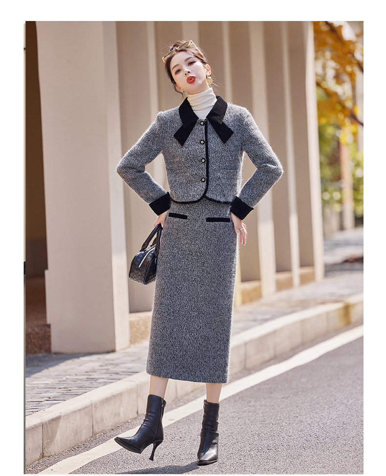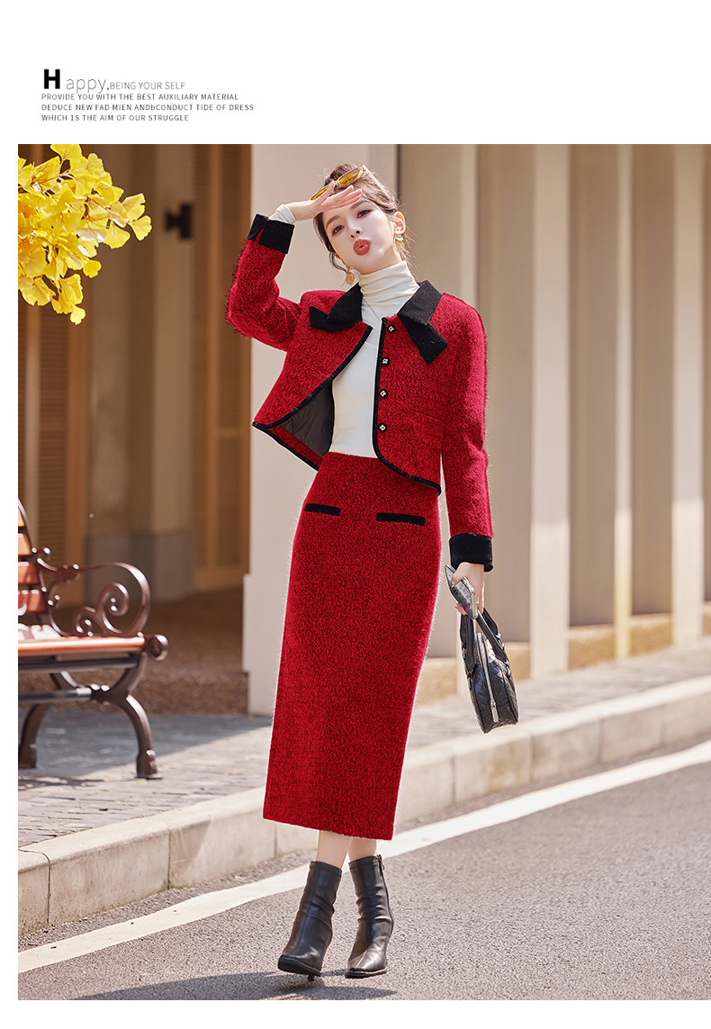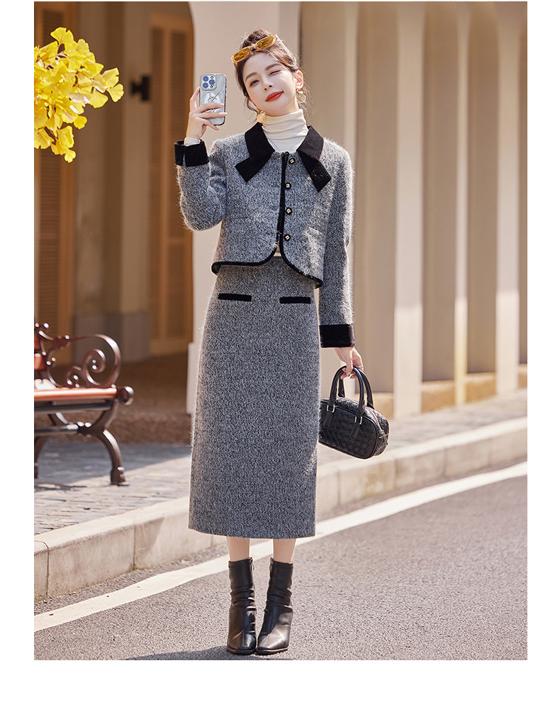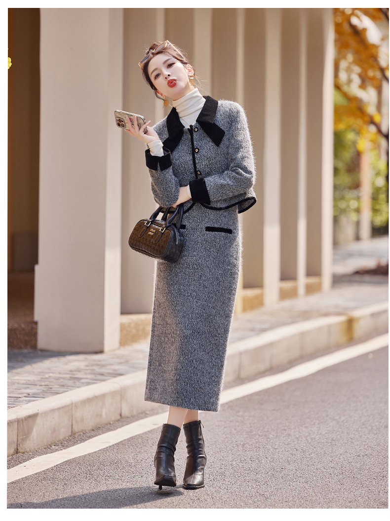 Bộ trang phục hai mảnh gồm áo khoác kiểu dáng vừa vặn và chân váy dài qua gối. Chất vải dày dặn, phù hợp giữ ấm nhẹ cho những ngày thu đông. Thiết kế tạo điểm nhấn với đường cắt may tỉ mỉ và kiểu dáng thanh lịch, giúp dễ dàng phối đồ. Có thể mặc nguyên bộ để tạo vẻ chỉn chu, hoặc tách riêng từng món để kết hợp với các trang phục khác nhau trong tủ đồ. | Tên sản phẩm: Áo Khoác Nữ Cả Bộ 2 Món Hàng Mùa Xuân Thu Đông - Thời Trang Nữ | Mã sản phẩm: B5029 - Giá: 2.290.000đ | Mã nhà sản xuất: HADG-G05Hình ảnh sản phẩm