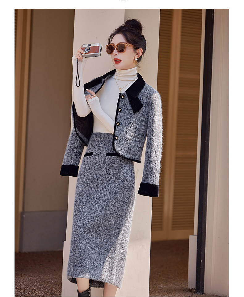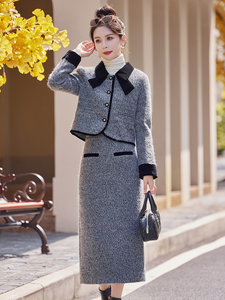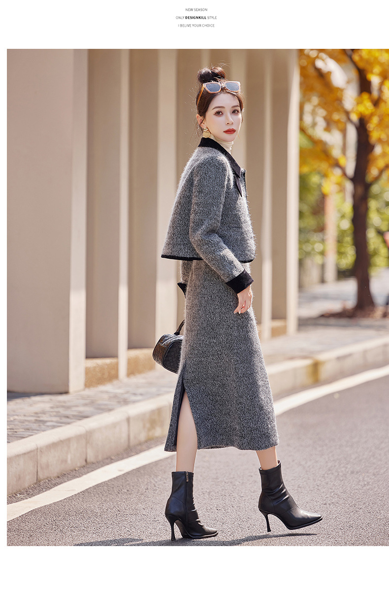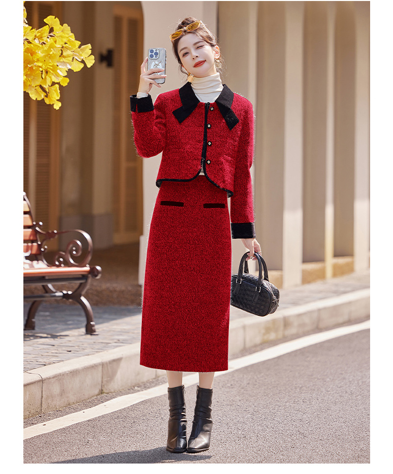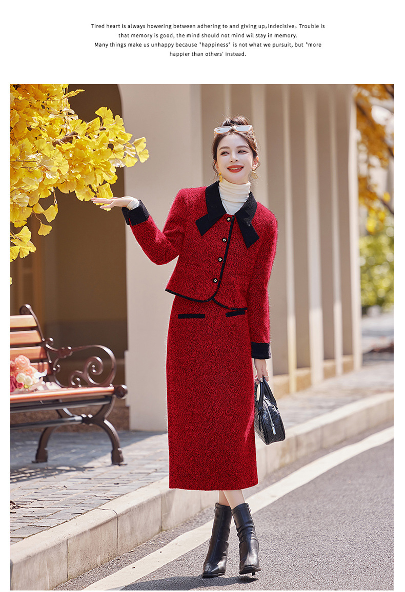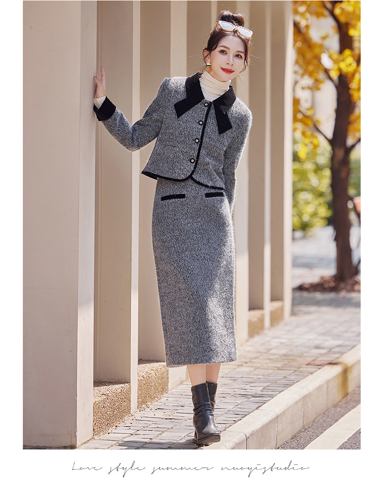 Bộ trang phục hai mảnh gồm áo khoác kiểu dáng vừa vặn và chân váy dài qua gối. Chất vải dày dặn, phù hợp giữ ấm nhẹ cho những ngày thu đông. Thiết kế tạo điểm nhấn với đường cắt may tỉ mỉ và kiểu dáng thanh lịch, giúp dễ dàng phối đồ. Có thể mặc nguyên bộ để tạo vẻ chỉn chu, hoặc tách riêng từng món để kết hợp với các trang phục khác nhau trong tủ đồ. | Tên sản phẩm: Áo Khoác Nữ Cả Bộ 2 Món Hàng Mùa Xuân Thu Đông - Thời Trang Nữ | Mã sản phẩm: B5029 - Giá: 2.290.000đ | Mã nhà sản xuất: HADG-G05Hình ảnh sản phẩm