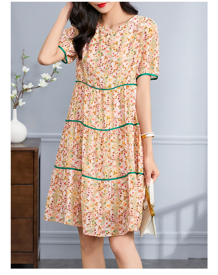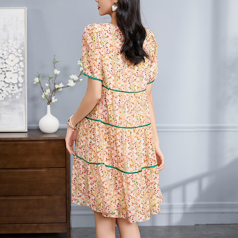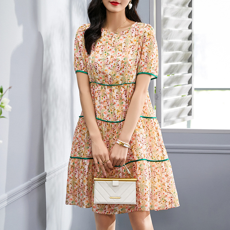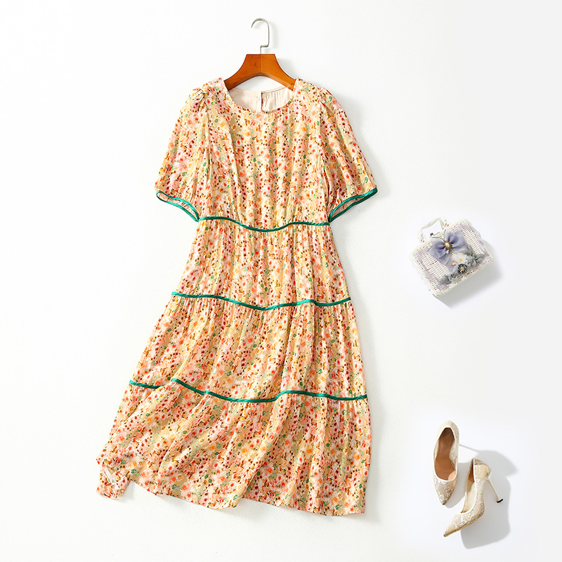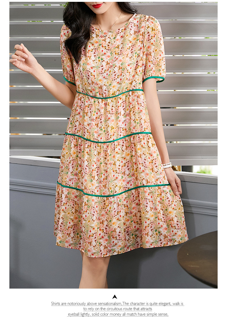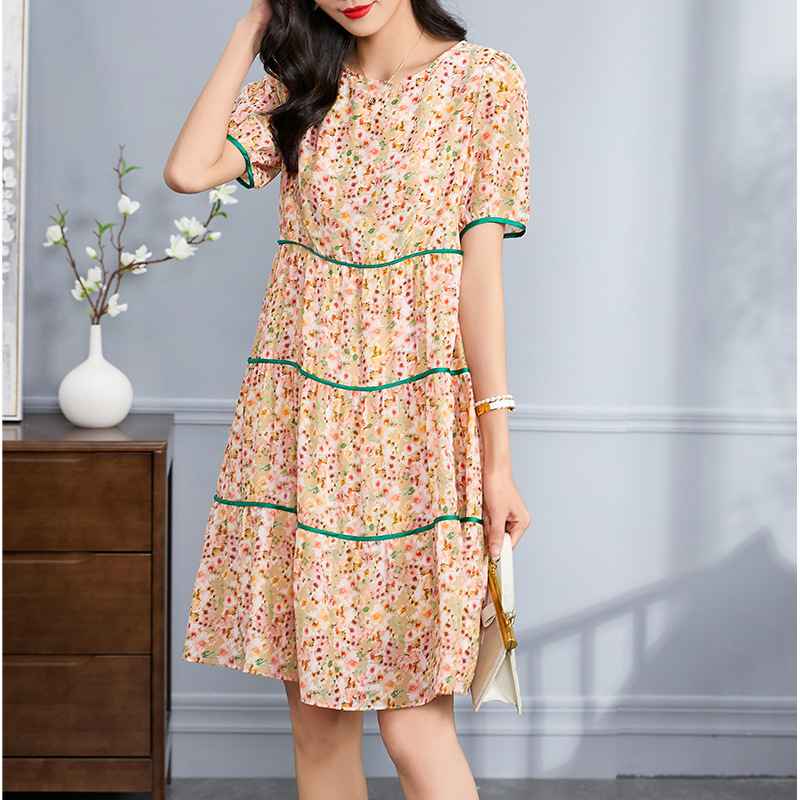Chiếc đầm thướt tha với họa tiết hoa nhỏ xinh, điểm nhấn là đường viền cổ tròn màu xanh lá tươi tắn. Chất vải mềm mại, thoáng mát mang đến sự dễ chịu khi mặc. Kiểu dáng ôn hòa, phù hợp cho nhiều dịp đi chơi, gặp gỡ hằng ngày. Có thể phối cùng giày bệt hoặc sandal để tạo vẻ nữ tính. Giặt nhẹ và phơi nơi râm mát để giữ form áo và màu sắc đẹp lâu. | Tên sản phẩm: Váy Đầm Liền Thân Nữ Họa Tiết Hoa - Thời Trang Nữ | Mã sản phẩm: B5035 - Giá: 2.730.000đ | Mã nhà sản xuất: SHDA-G06Hình ảnh sản phẩm