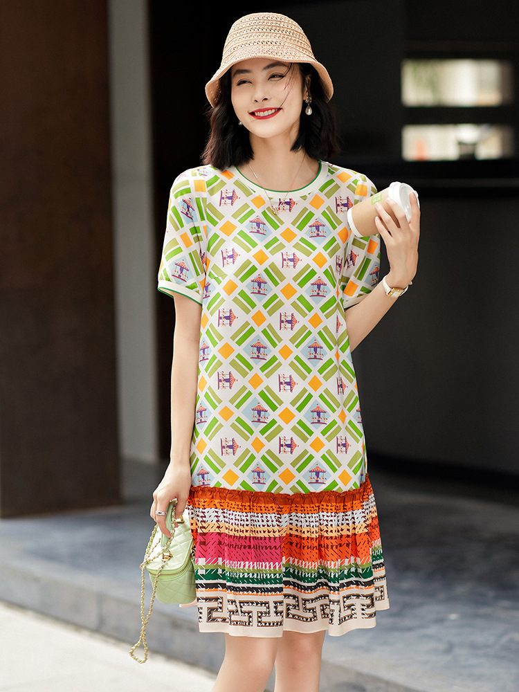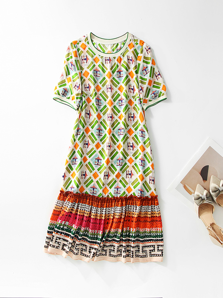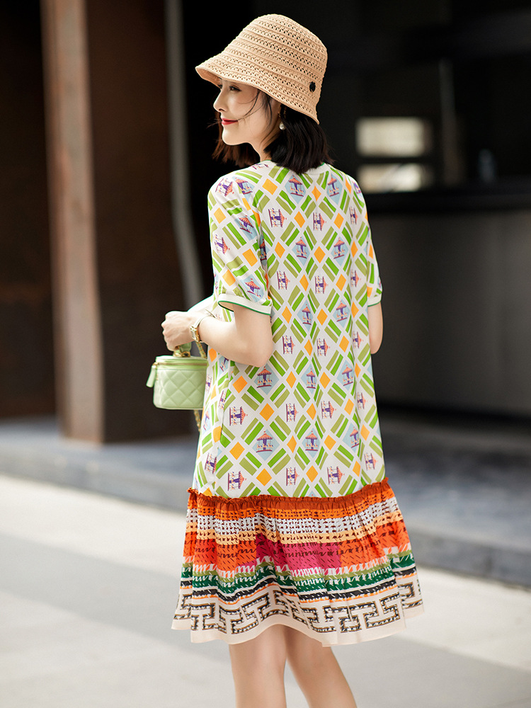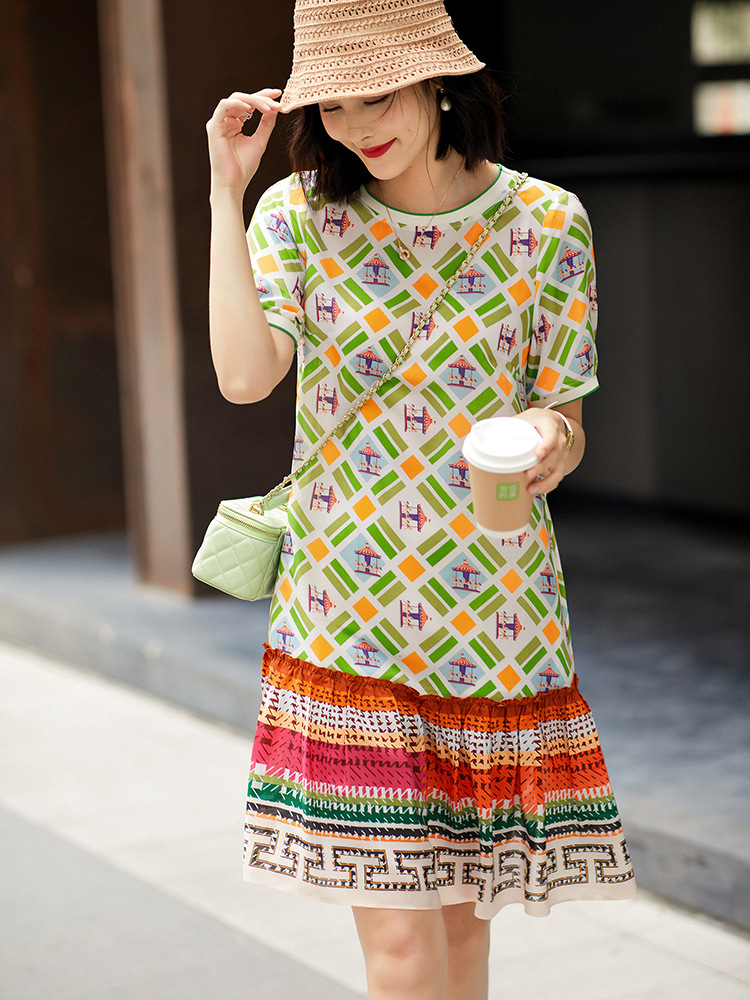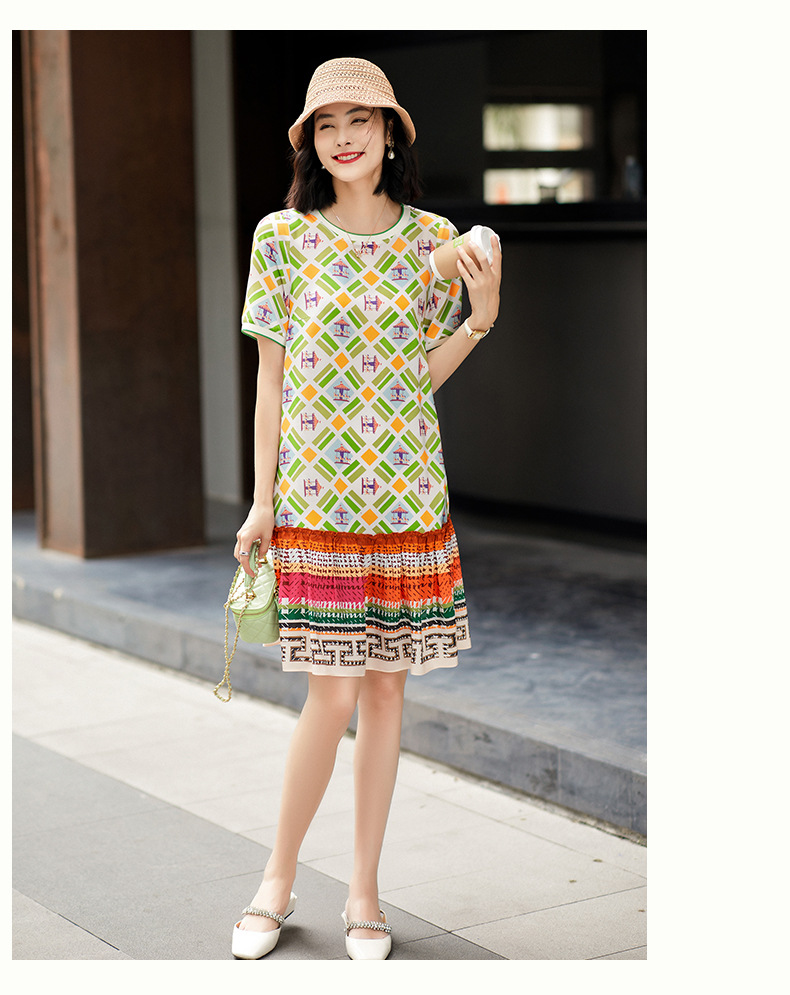 Chiếc váy này có họa tiết in hình khối rất đẹp mắt, được dệt từ chất liệu tơ tằm tự nhiên, mang lại cảm giác mềm mại và thoáng mát khi mặc. Kiểu dáng được thiết kế giúp tôn dáng, che đi phần bụng một cách khéo léo. Đây là mẫu váy ngắn phù hợp cho những bạn có chiều cao khiêm tốn. Sản phẩm rất dễ phối đồ, bạn có thể mặc đi làm, đi chơi hay dự tiệc đều phù hợp. | Tên sản phẩm: Váy Đầm Liền Thân Nữ Chất Liệu Lụa Tơ Tằm Họa Tiết Hoa - Thời Trang Nữ | Mã sản phẩm: B5036 - Giá: 2.760.000đ | Mã nhà sản xuất: SHDA-G06Hình ảnh sản phẩm