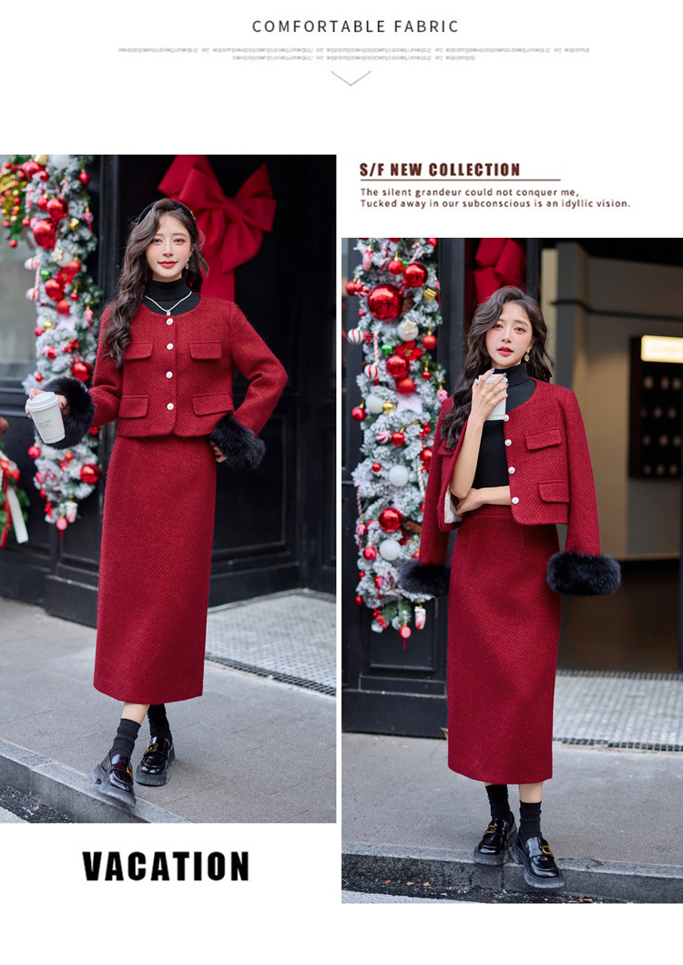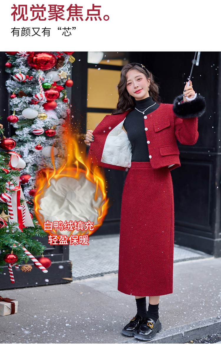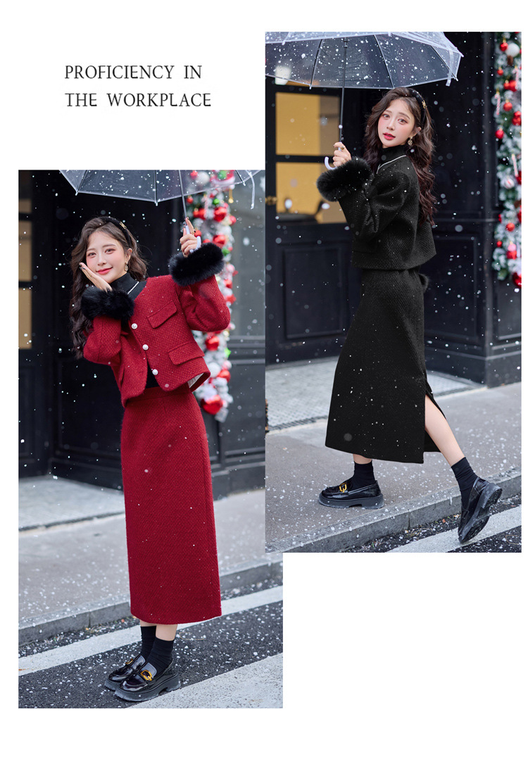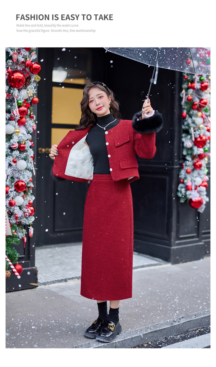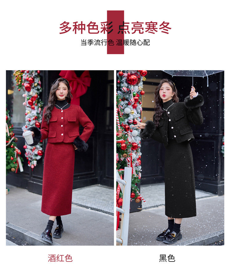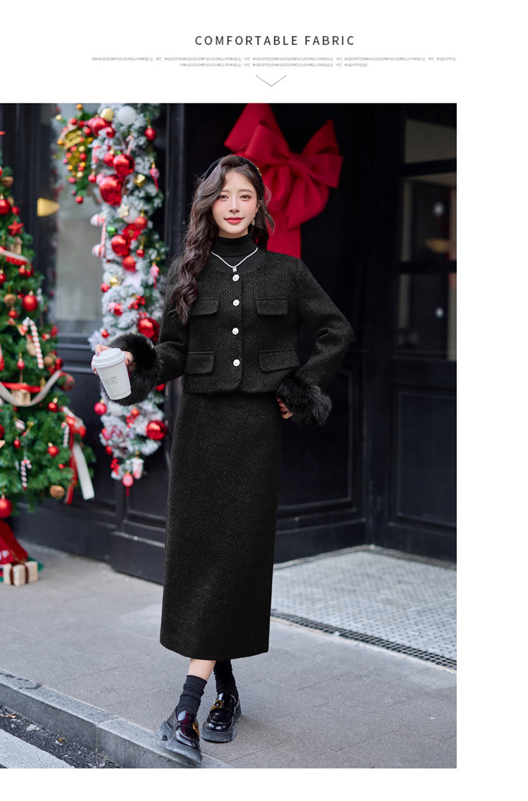 Bộ trang phục hai mảnh này gồm áo khoác và chân váy, phù hợp cho mùa thu đông. Áo khoác có lớp lông vũ cách nhiệt bên trong, giữ ấm tốt, kết hợp với chất liệu dệt dày dặn. Chân váy dáng dài tôn vẻ nữ tính. Bộ trang phục có kiểu dáng thanh lịch, dễ dàng phối đồ. Bạn có thể mặc nguyên bộ để tạo sự chỉn chu, hoặc tách riêng từng món để phối với các trang phục khác. | Tên sản phẩm: Áo Khoác Nữ Cả Bộ 2 Món Hàng Mùa Xuân Thu Đông - Thời Trang Nữ | Mã sản phẩm: B5081 - Giá: 3.690.000đ | Mã nhà sản xuất: HADG-G06Hình ảnh sản phẩm