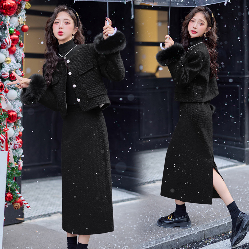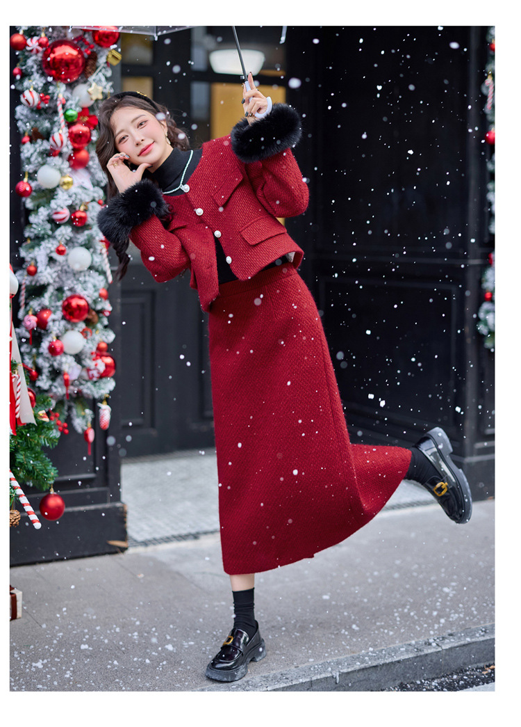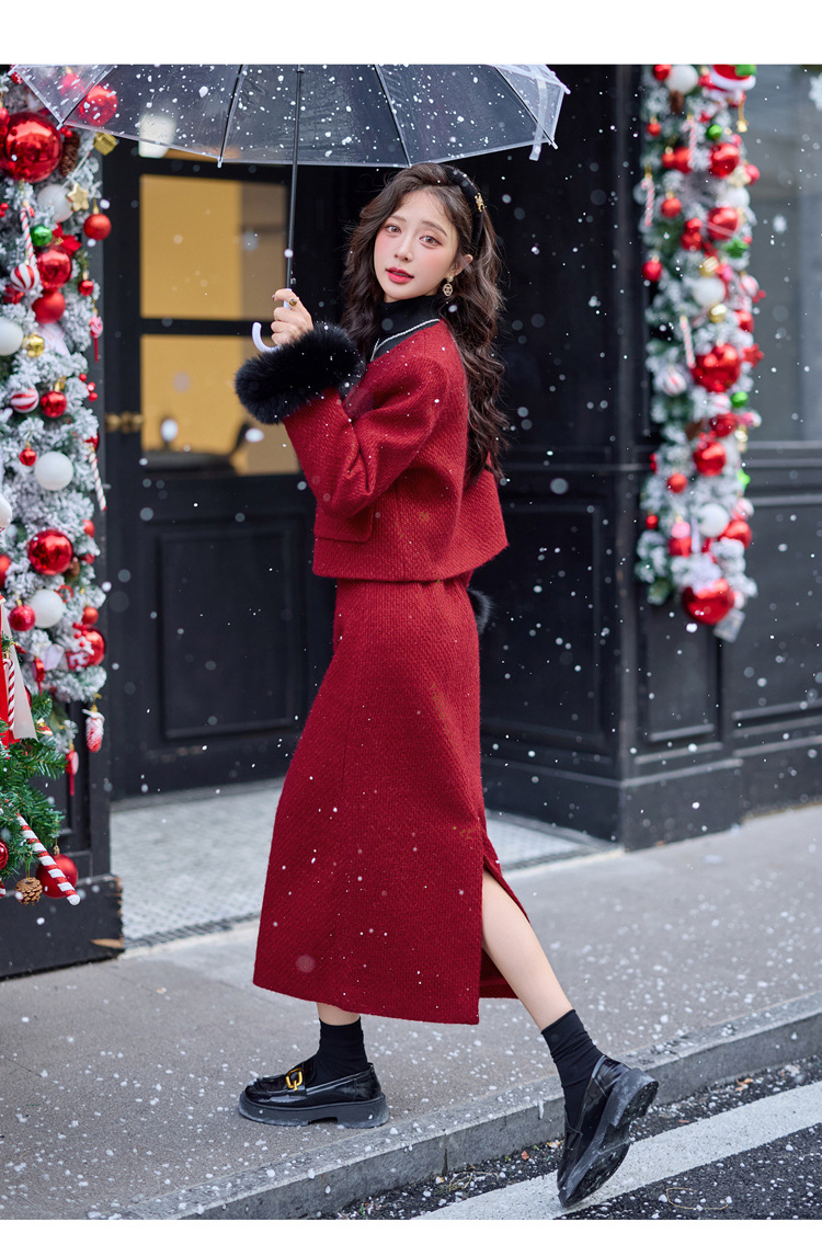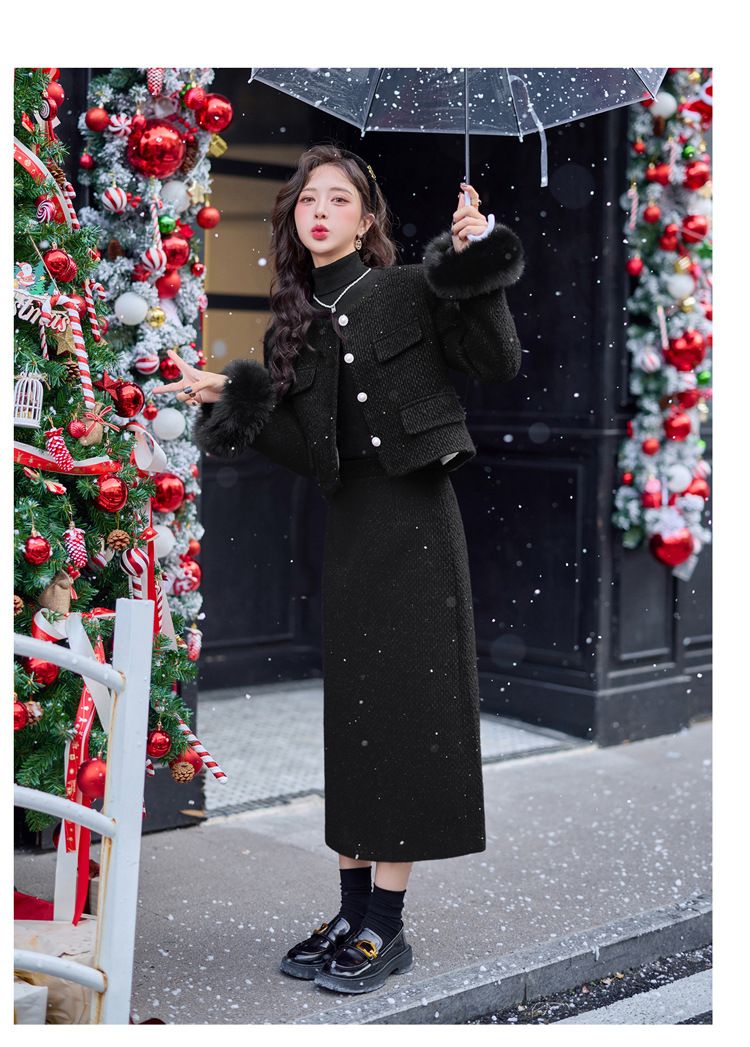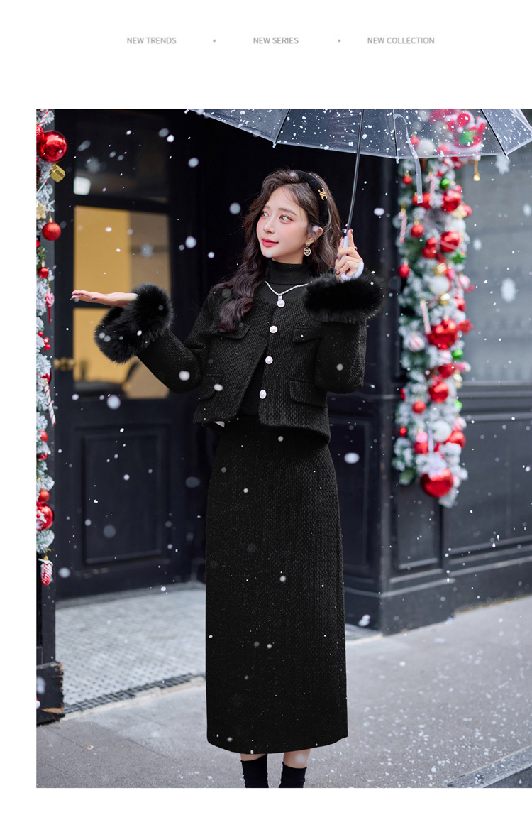 Bộ trang phục hai mảnh này gồm áo khoác và chân váy, phù hợp cho mùa thu đông. Áo khoác có lớp lông vũ cách nhiệt bên trong, giữ ấm tốt, kết hợp với chất liệu dệt dày dặn. Chân váy dáng dài tôn vẻ nữ tính. Bộ trang phục có kiểu dáng thanh lịch, dễ dàng phối đồ. Bạn có thể mặc nguyên bộ để tạo sự chỉn chu, hoặc tách riêng từng món để phối với các trang phục khác. | Tên sản phẩm: Áo Khoác Nữ Cả Bộ 2 Món Hàng Mùa Xuân Thu Đông - Thời Trang Nữ | Mã sản phẩm: B5081 - Giá: 3.690.000đ | Mã nhà sản xuất: HADG-G06Hình ảnh sản phẩm