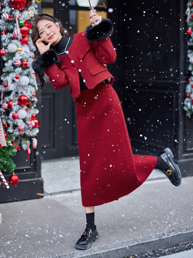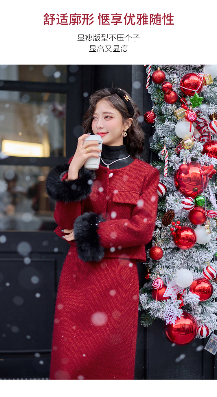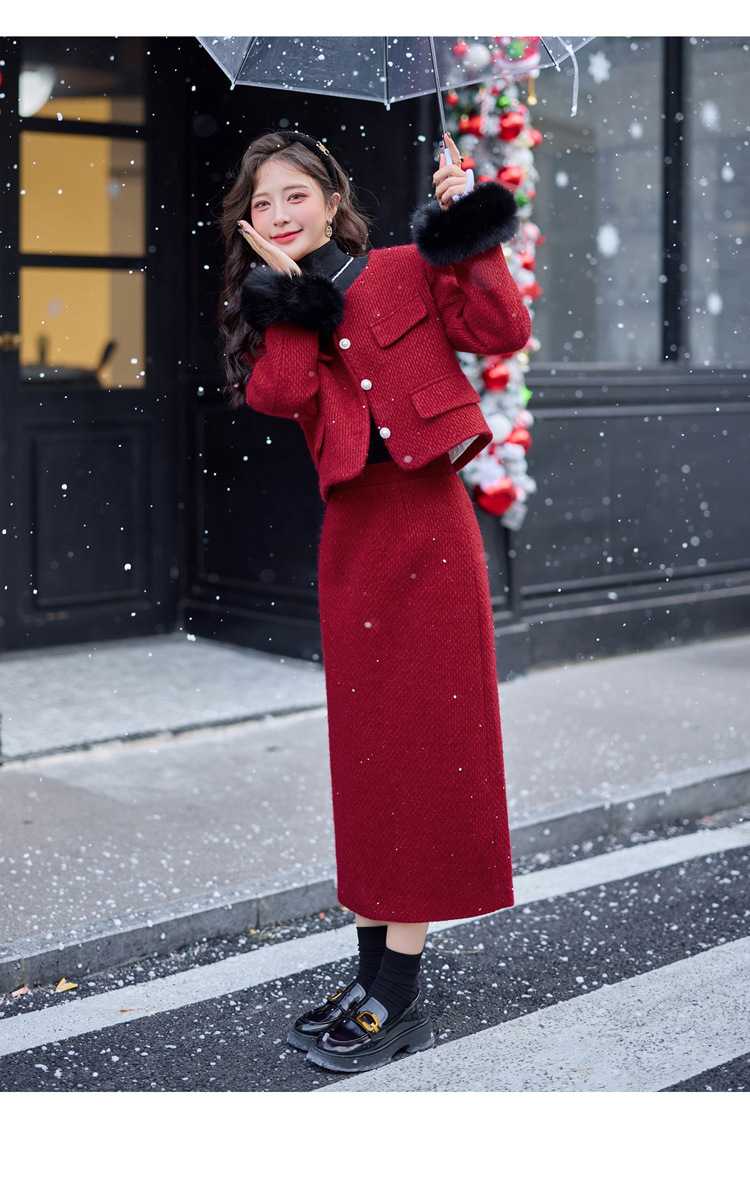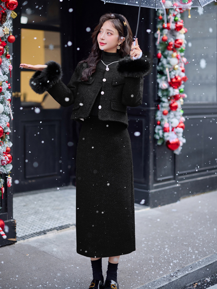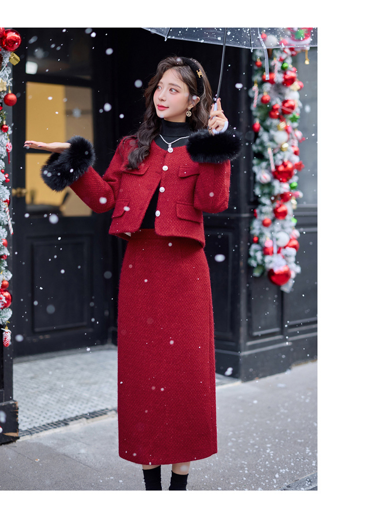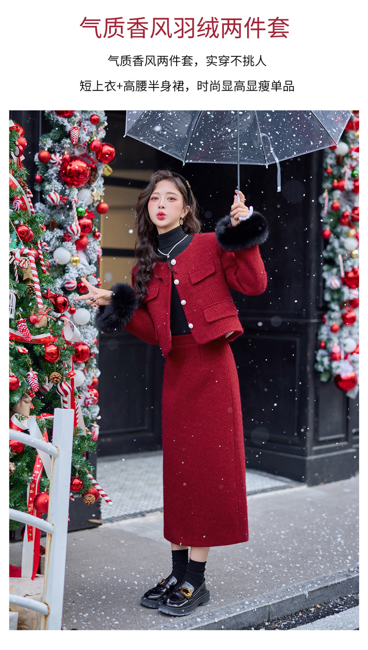 Bộ trang phục hai mảnh này gồm áo khoác và chân váy, phù hợp cho mùa thu đông. Áo khoác có lớp lông vũ cách nhiệt bên trong, giữ ấm tốt, kết hợp với chất liệu dệt dày dặn. Chân váy dáng dài tôn vẻ nữ tính. Bộ trang phục có kiểu dáng thanh lịch, dễ dàng phối đồ. Bạn có thể mặc nguyên bộ để tạo sự chỉn chu, hoặc tách riêng từng món để phối với các trang phục khác. | Tên sản phẩm: Áo Khoác Nữ Cả Bộ 2 Món Hàng Mùa Xuân Thu Đông - Thời Trang Nữ | Mã sản phẩm: B5081 - Giá: 3.690.000đ | Mã nhà sản xuất: HADG-G06Hình ảnh sản phẩm