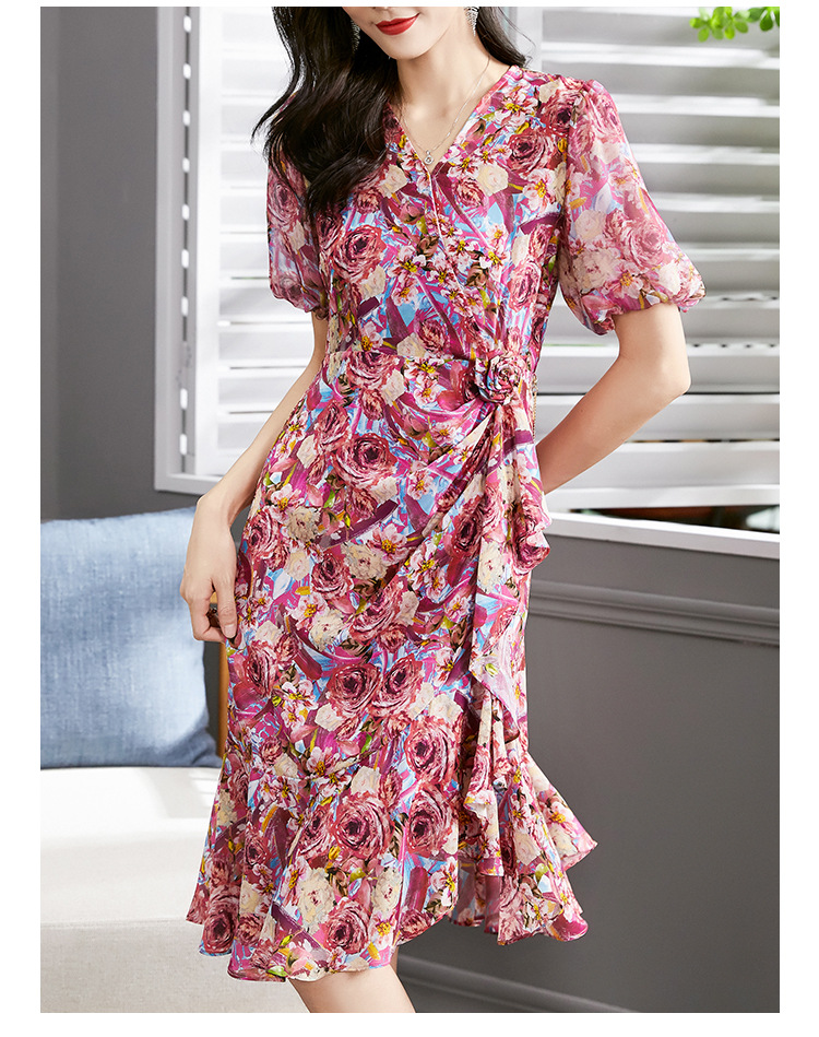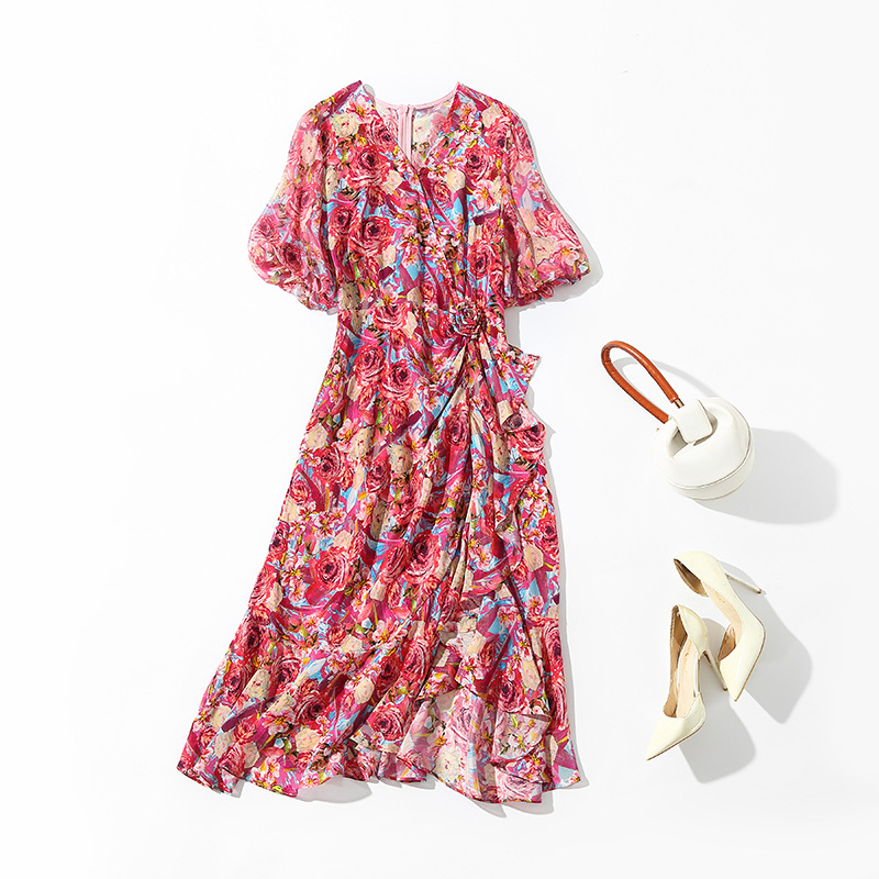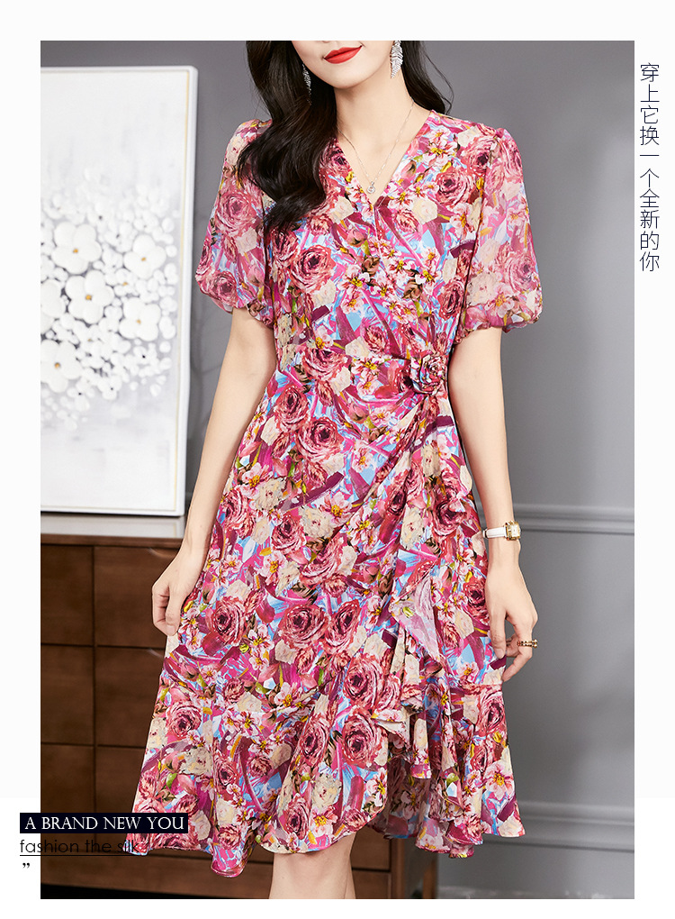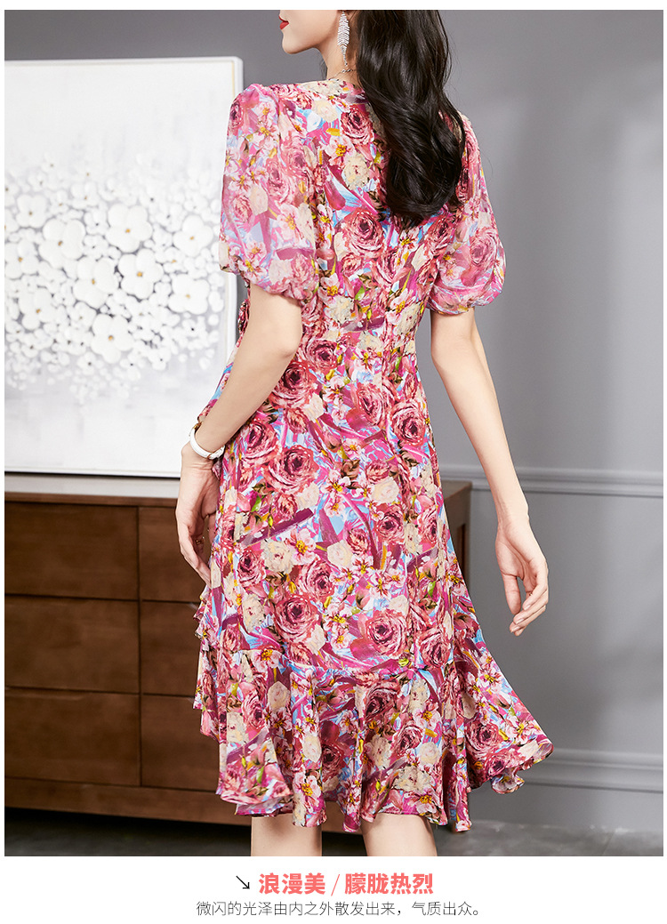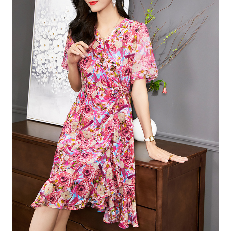 Chiếc đầm thướt tha với họa tiết hoa hồng tím hồng độc đáo như một bức tranh vẽ bằng mực. Tay áo phồng kiểu lồng đèn tôn lên vẻ dịu dàng và nữ tính. Thiết kế không theo quy tắc thông thường ở đường viền tạo nên điểm nhấn riêng biệt, mang đến vẻ lãng mạn kiểu Pháp. Mặc kết hợp cùng giày cao gót mũi nhọn hoặc sandals để hoàn thiện set đồ. Phù hợp cho những buổi gặp mặt, dạo phố hoặc hẹn hò. | Tên sản phẩm: Váy Đầm Liền Thân Nữ - Thời Trang Nữ | Mã sản phẩm: B5092 - Giá: 2.640.000đ | Mã nhà sản xuất: SHDA-G06Hình ảnh sản phẩm