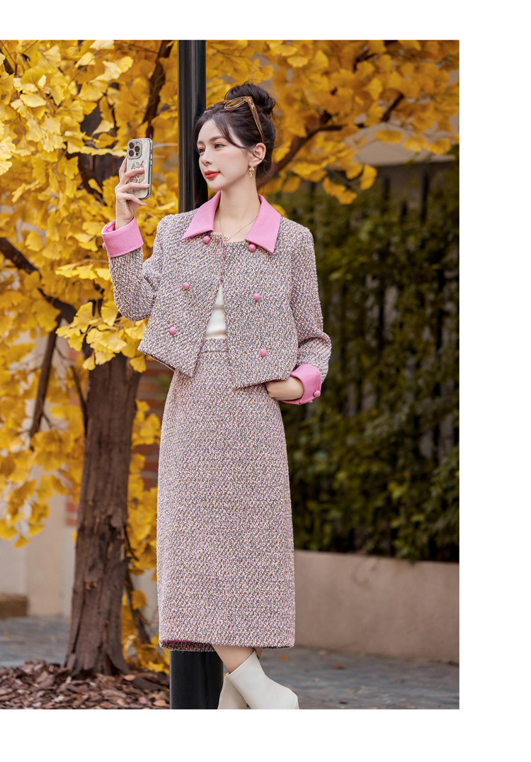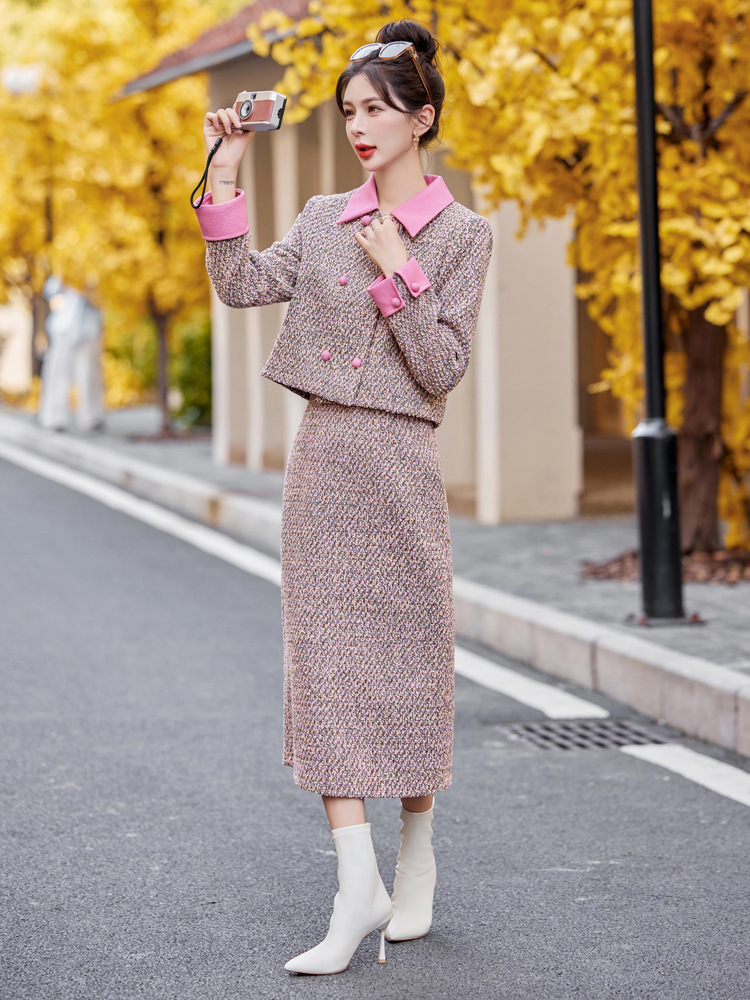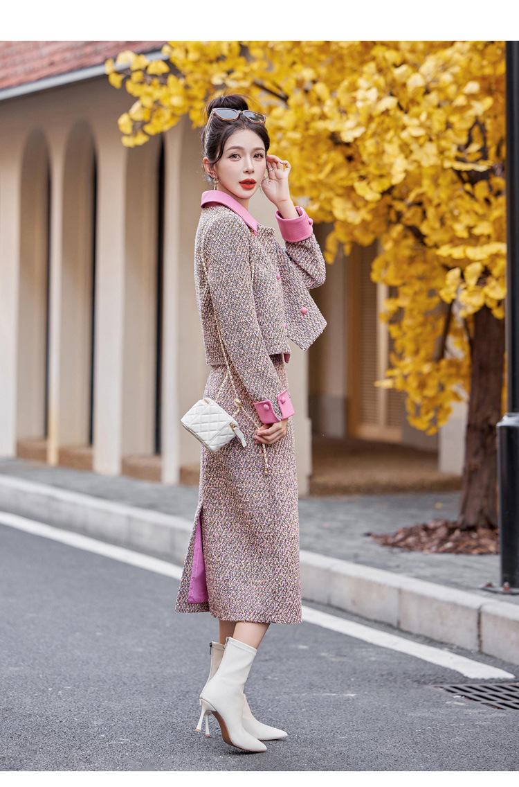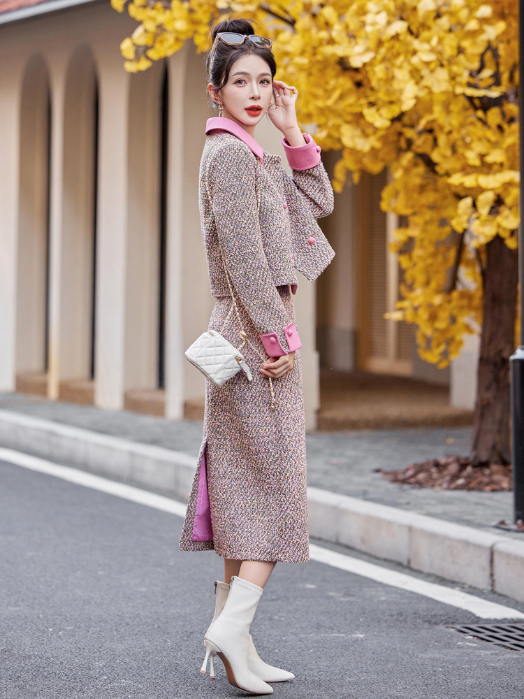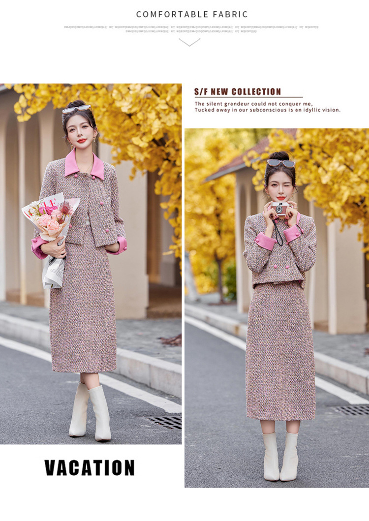 Bộ trang phục mùa lạnh này gồm áo khoác và chân váy, mang phong cách trẻ trung, hiện đại. Áo được thiết kế với cổ bẻ và điểm nhấn là sự kết hợp màu sắc tương phản, cách điệu. Chất liệu lông vũ nhẹ ấm bên trong giúp giữ nhiệt tốt. Bạn có thể mặc nguyên bộ để tạo vẻ chỉn chu, hoặc phối áo với quần jeans để thêm năng động. Đây là lựa chọn phù hợp cho nhiều dịp sinh hoạt hằng ngày. | Tên sản phẩm: Áo Khoác Nữ Cả Bộ 2 Món Kín Cổ Hàng Mùa Xuân Thu Đông - Thời Trang Nữ | Mã sản phẩm: B5097 - Giá: 2.660.000đ | Mã nhà sản xuất: HADG-G06Hình ảnh sản phẩm