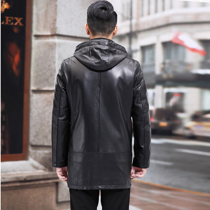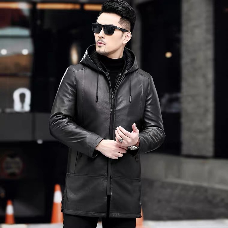 Áo khoác dành cho nam, thiết kế dáng dài qua hông, có mũ trùm tiện lợi. Chất liệu chính từ da dê thật, bên trong được lót lớp lông mềm mại giúp giữ ấm tốt cho những ngày thời tiết lạnh giá. Sản phẩm có kiểu dáng nam tính, phù hợp để mặc khi đi làm hoặc trong các sinh hoạt hằng ngày. Chỉ cần khoác áo lên người và kéo khóa là đã sẵn sàng xuống phố. | Tên sản phẩm: Áo Da Nam Chất Liệu Da Bò Mũ Liền Hàng Mùa Xuân Thu Đông - Thời Trang Nam | Mã sản phẩm: B5105 - Giá: 16.470.000đ | Mã nhà sản xuất: HADGA-G06Hình ảnh sản phẩm