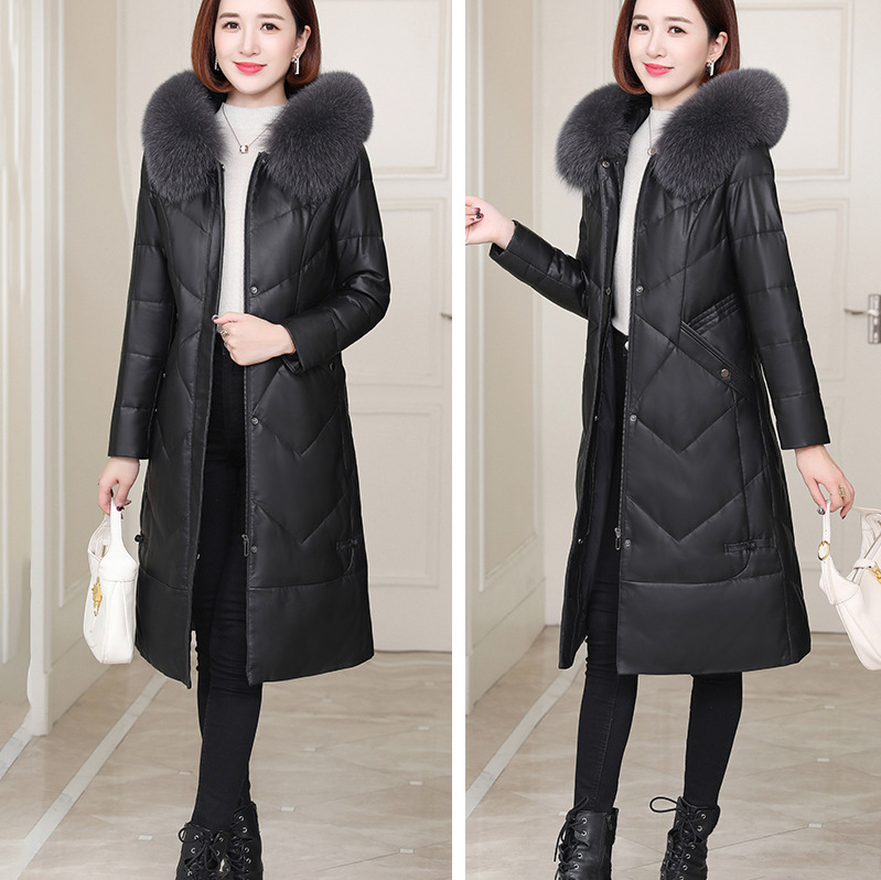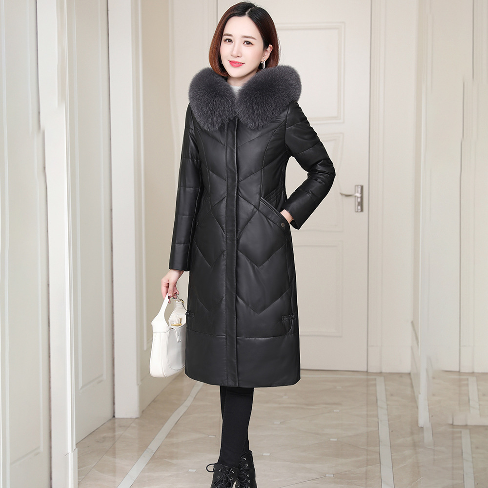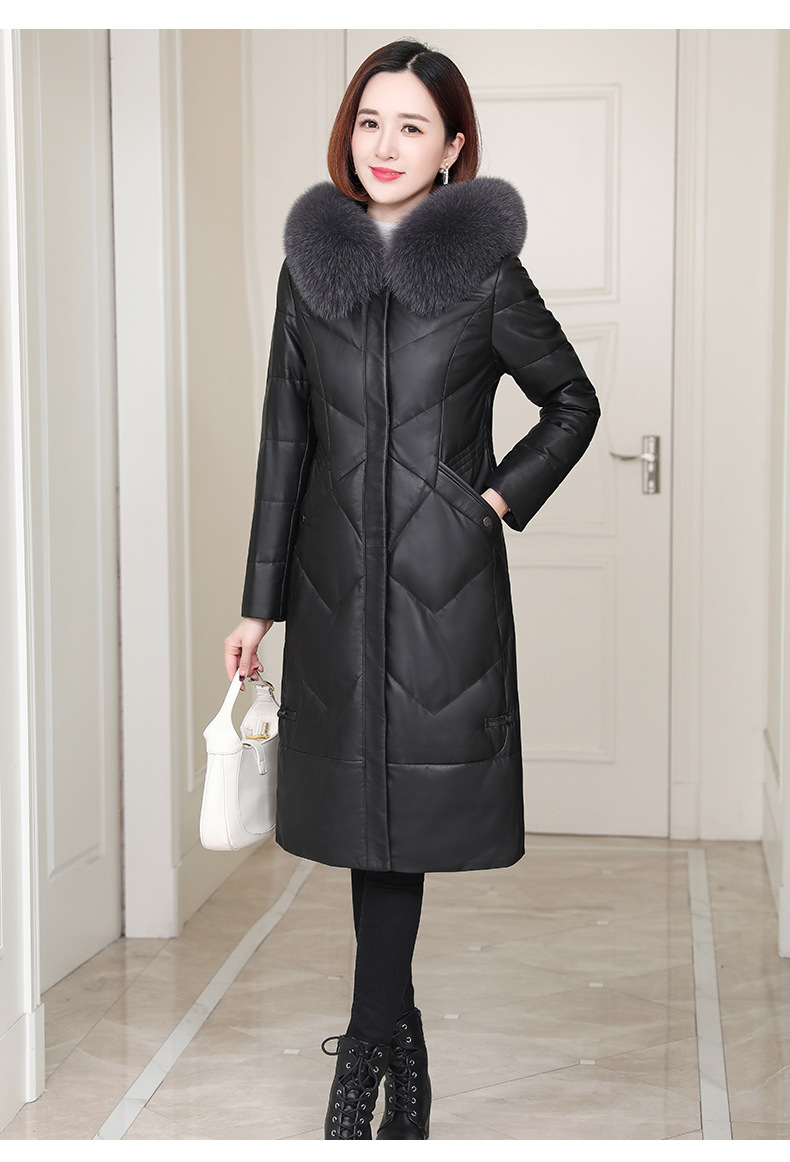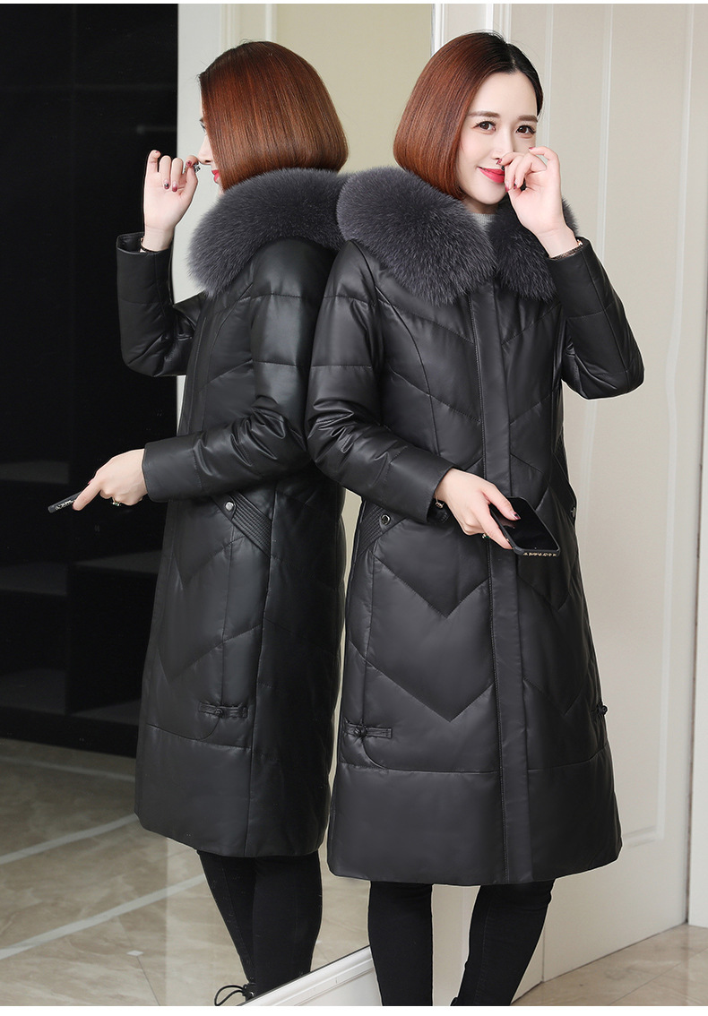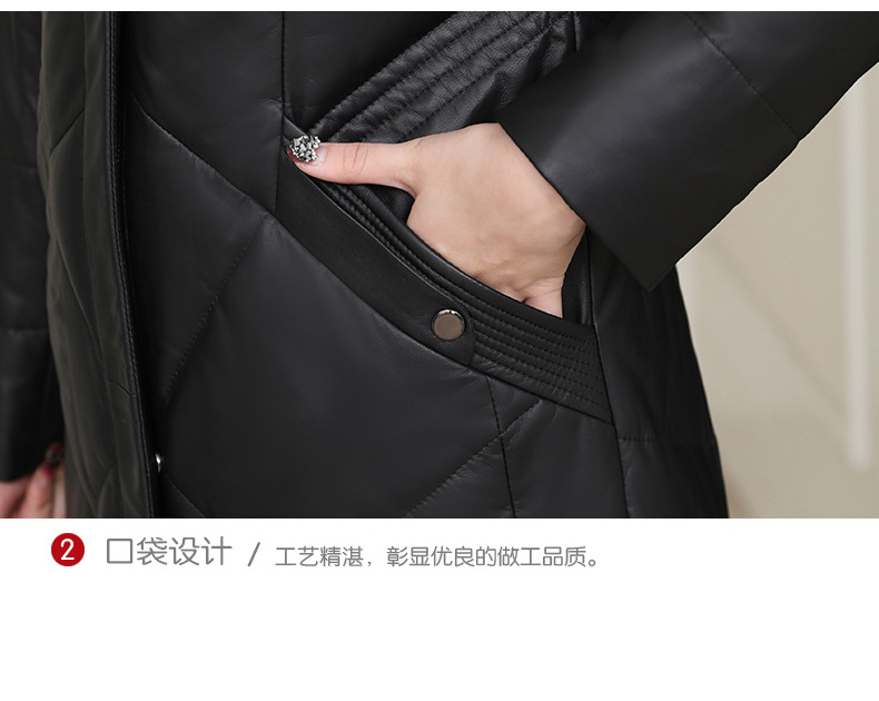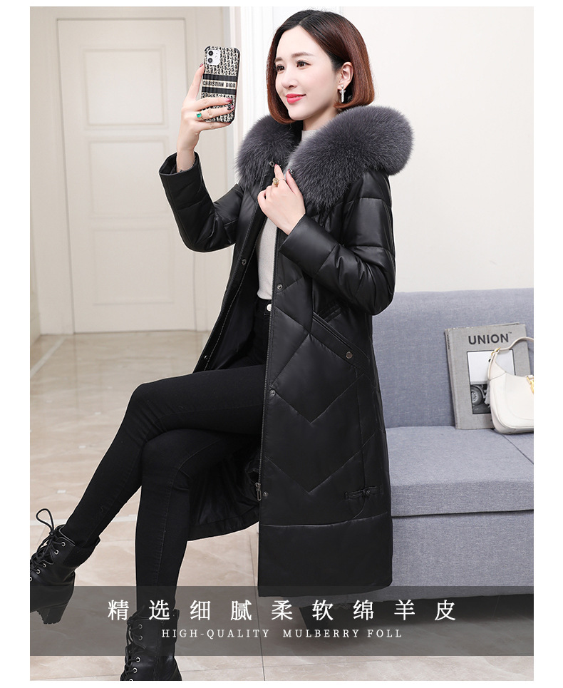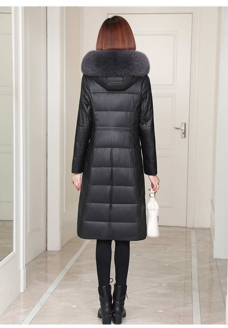 Áo khoác dáng dài có mũ trùm, được làm từ chất liệu da cừu mềm mại và ấm áp. Bên trong áo được lót một lớp lông vũ nhẹ, giúp giữ nhiệt tốt cho những ngày trời lạnh. Kiểu dáng ôm vừa vặn, tôn lên đường nét cơ thể. Màu đen dễ dàng phối hợp với nhiều trang phục khác nhau. Sản phẩm phù hợp để mặc khi đi làm hoặc dạo phố trong tiết trời se lạnh. | Tên sản phẩm: Áo Lông Nữ Chất Liệu Da Bò Dáng Ôm Mũ Liền Hàng Mùa Xuân Thu Đông - Thời Trang Nữ | Mã sản phẩm: B5109 - Giá: 7.860.000đ | Mã nhà sản xuất: HADGA-G06Hình ảnh sản phẩm