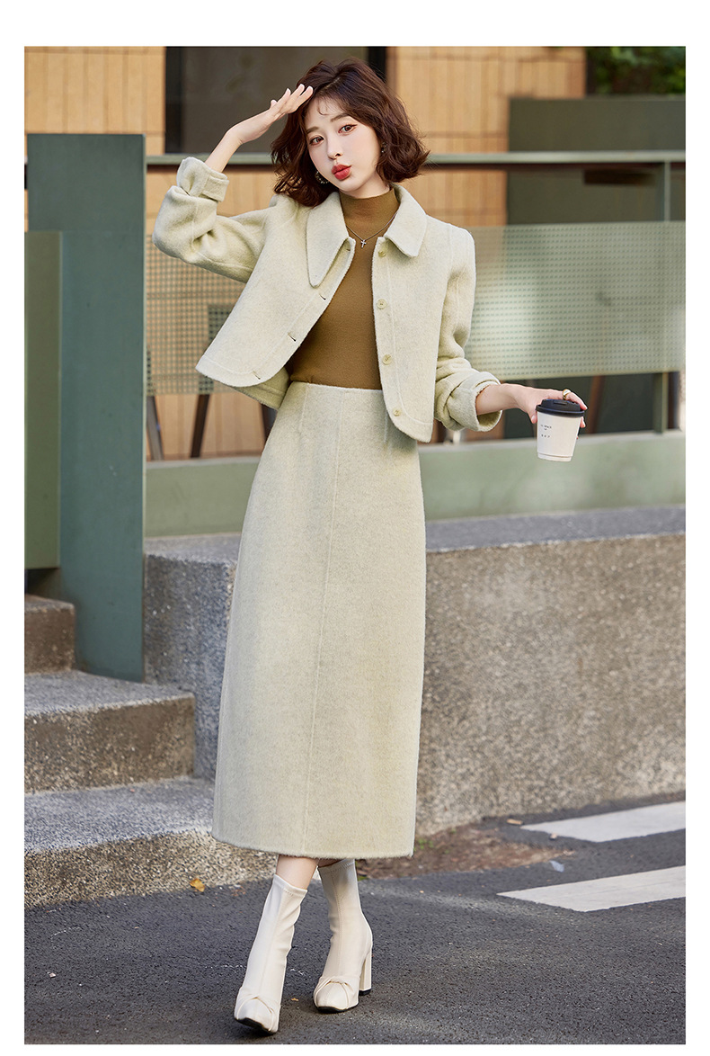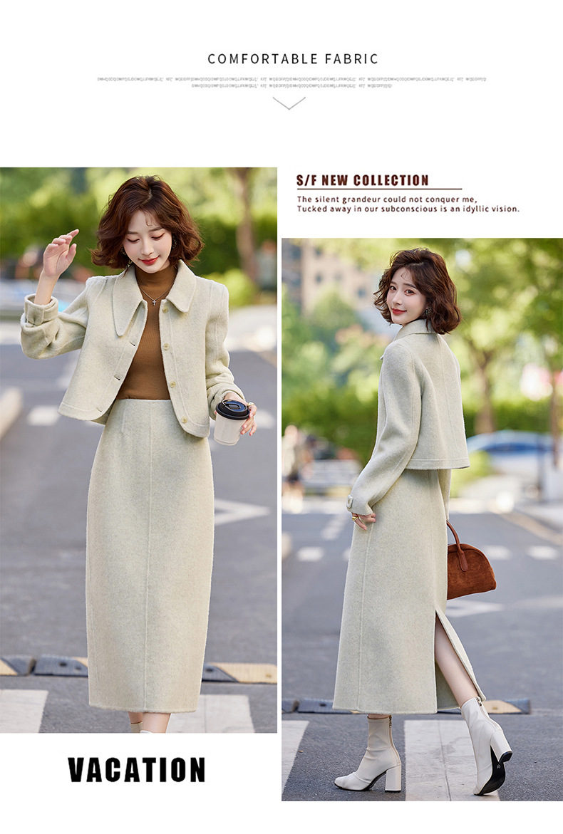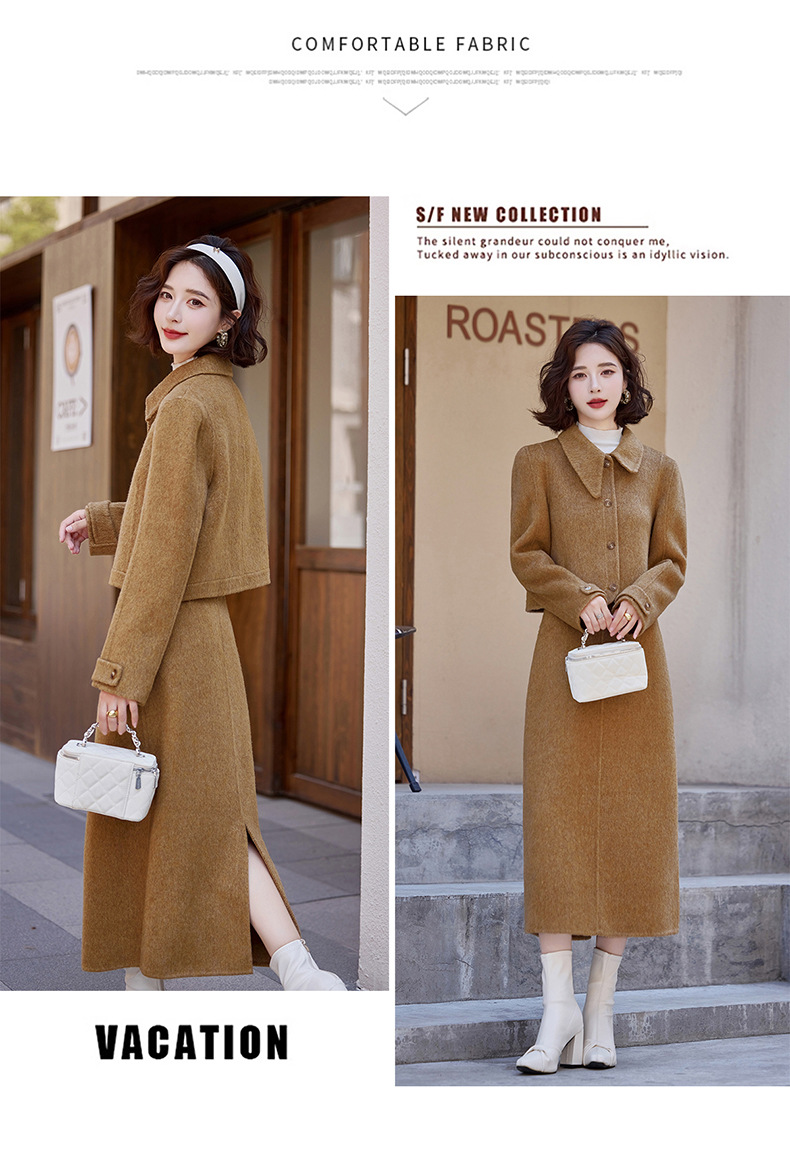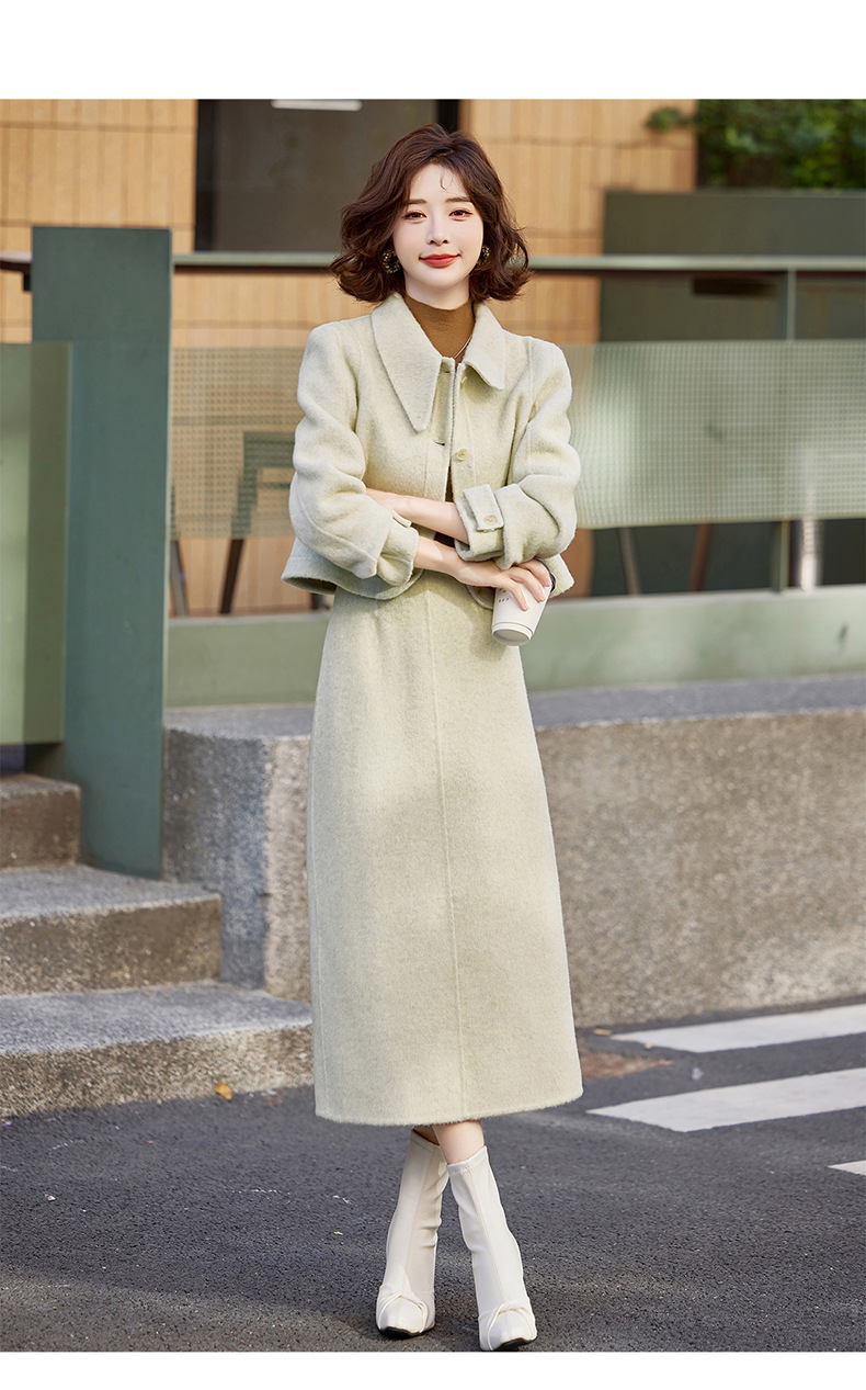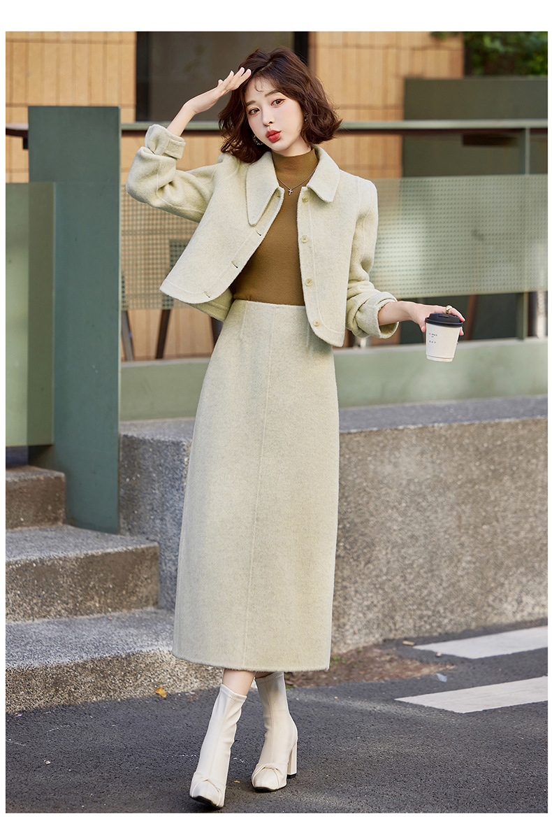 Bộ trang phục mùa thu đông này gồm áo khoác và chân váy, tạo nên một bộ đồ hoàn chỉnh. Chất liệu len dệt hai mặt giữ ấm tốt, mềm mại và thoải mái khi mặc. Kiểu dáng trẻ trung, phù hợp cho nhiều dịp đi chơi hay gặp gỡ. Bạn có thể mặc nguyên bộ để đồng bộ, hoặc phối với các món đồ khác để đa dạng phong cách. Giữ ấm cơ thể mà vẫn thanh lịch và năng động. | Tên sản phẩm: Áo Khoác Nữ Cả Bộ 2 Món Hàng Mùa Xuân Thu Đông Phong Cách Hàn Quốc - Thời Trang Nữ | Mã sản phẩm: B5112 - Giá: 3.460.000đ | Mã nhà sản xuất: HADG-G06Hình ảnh sản phẩm