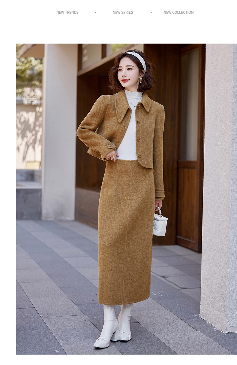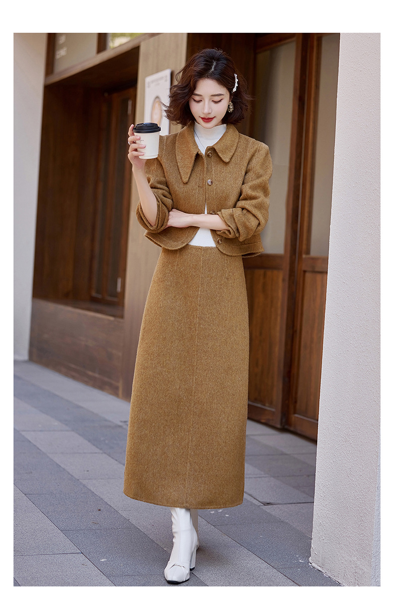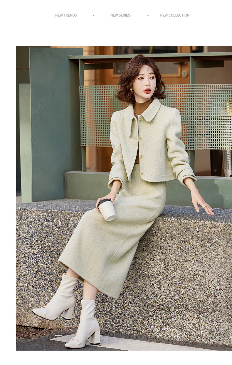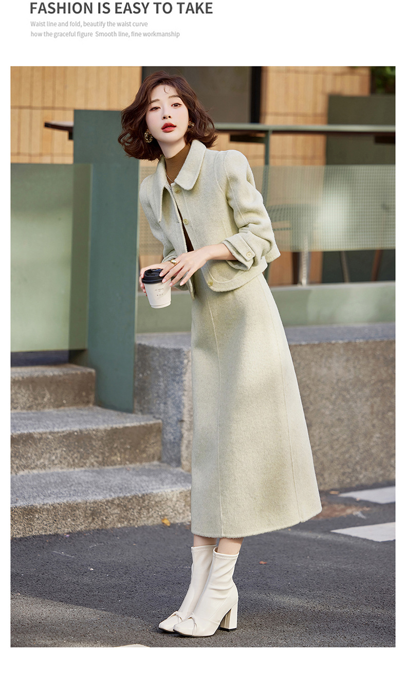 Bộ trang phục mùa thu đông này gồm áo khoác và chân váy, tạo nên một bộ đồ hoàn chỉnh. Chất liệu len dệt hai mặt giữ ấm tốt, mềm mại và thoải mái khi mặc. Kiểu dáng trẻ trung, phù hợp cho nhiều dịp đi chơi hay gặp gỡ. Bạn có thể mặc nguyên bộ để đồng bộ, hoặc phối với các món đồ khác để đa dạng phong cách. Giữ ấm cơ thể mà vẫn thanh lịch và năng động. | Tên sản phẩm: Áo Khoác Nữ Cả Bộ 2 Món Hàng Mùa Xuân Thu Đông Phong Cách Hàn Quốc - Thời Trang Nữ | Mã sản phẩm: B5112 - Giá: 3.460.000đ | Mã nhà sản xuất: HADG-G06Hình ảnh sản phẩm