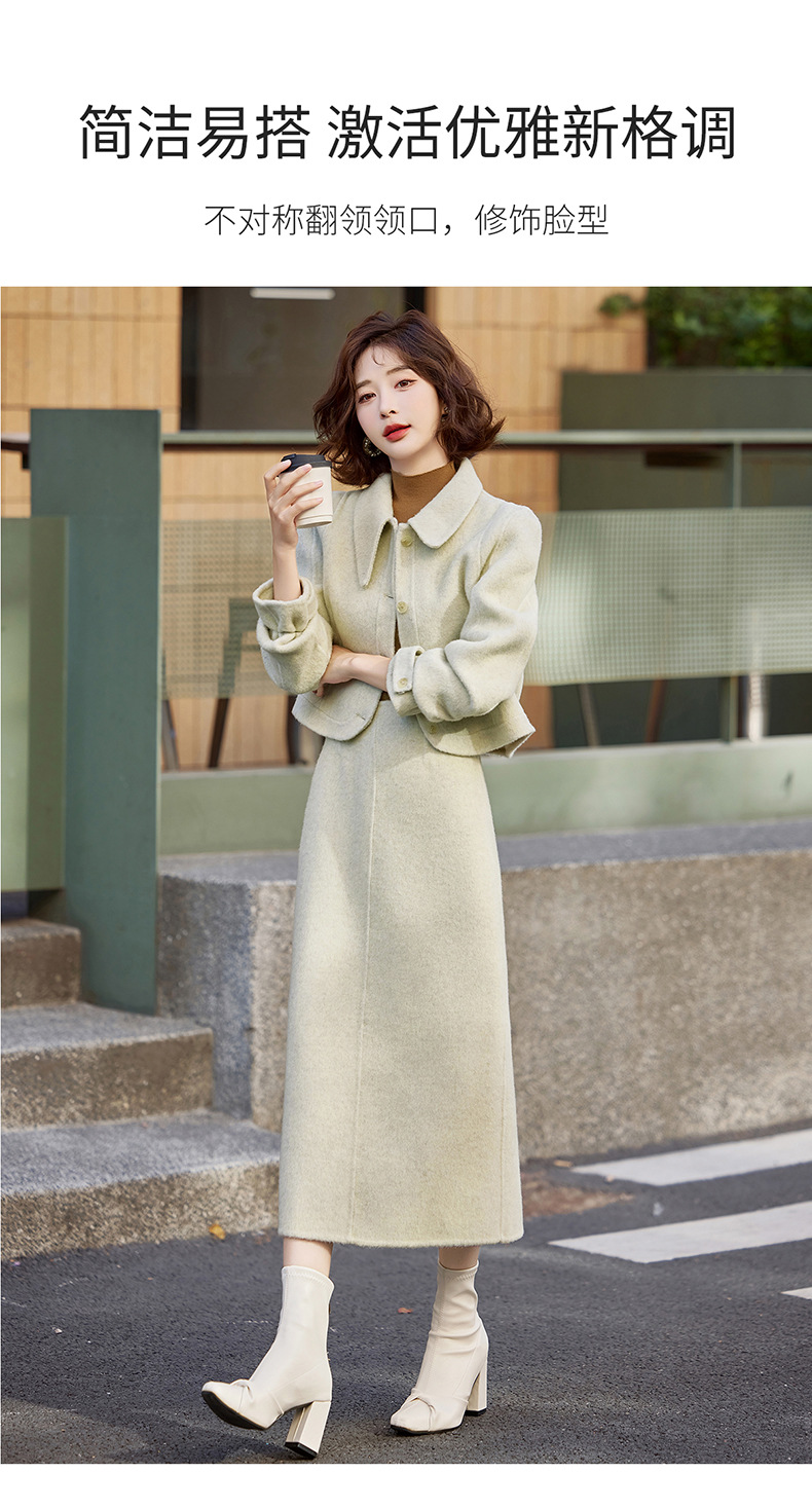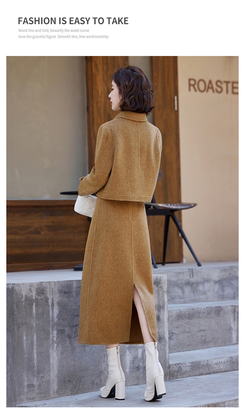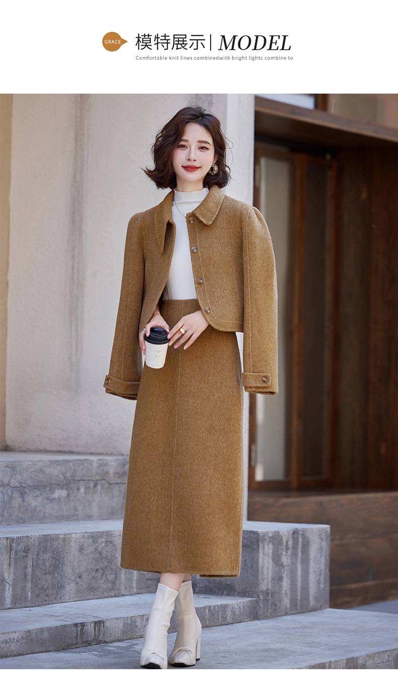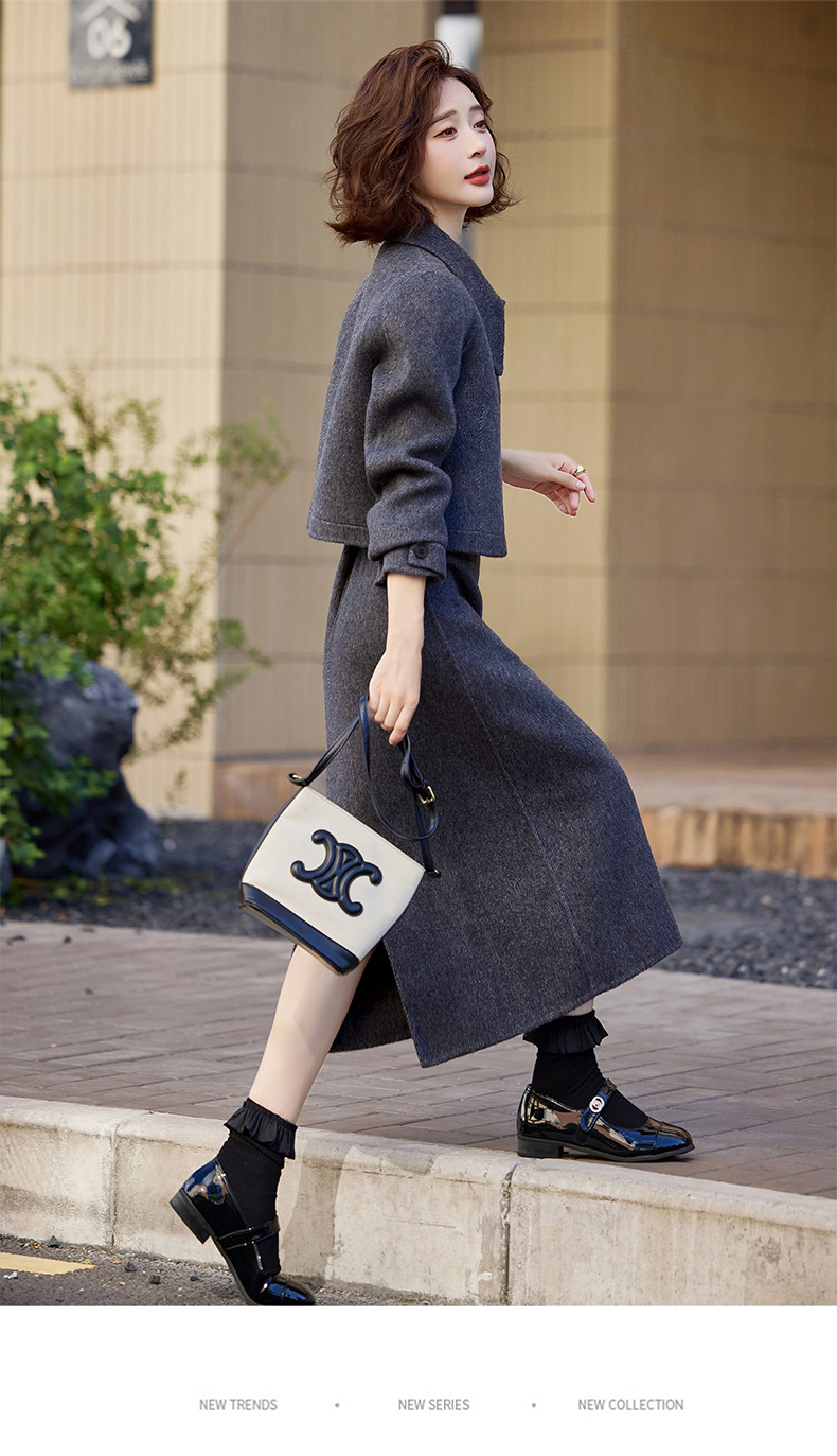 Bộ trang phục mùa thu đông này gồm áo khoác và chân váy, tạo nên một bộ đồ hoàn chỉnh. Chất liệu len dệt hai mặt giữ ấm tốt, mềm mại và thoải mái khi mặc. Kiểu dáng trẻ trung, phù hợp cho nhiều dịp đi chơi hay gặp gỡ. Bạn có thể mặc nguyên bộ để đồng bộ, hoặc phối với các món đồ khác để đa dạng phong cách. Giữ ấm cơ thể mà vẫn thanh lịch và năng động. | Tên sản phẩm: Áo Khoác Nữ Cả Bộ 2 Món Hàng Mùa Xuân Thu Đông Phong Cách Hàn Quốc - Thời Trang Nữ | Mã sản phẩm: B5112 - Giá: 3.460.000đ | Mã nhà sản xuất: HADG-G06Hình ảnh sản phẩm