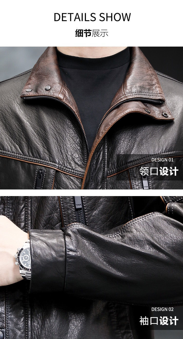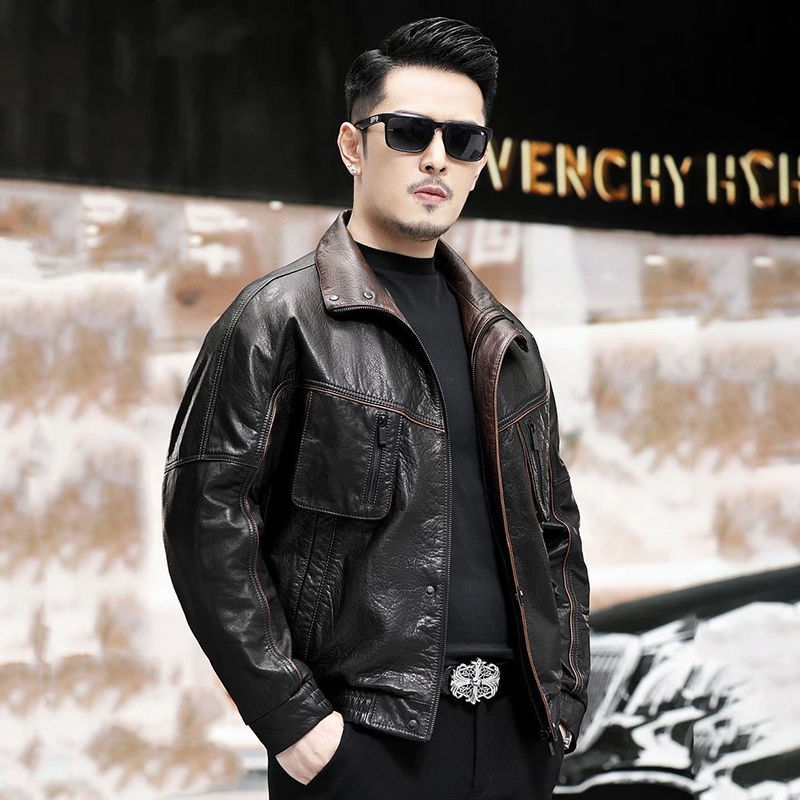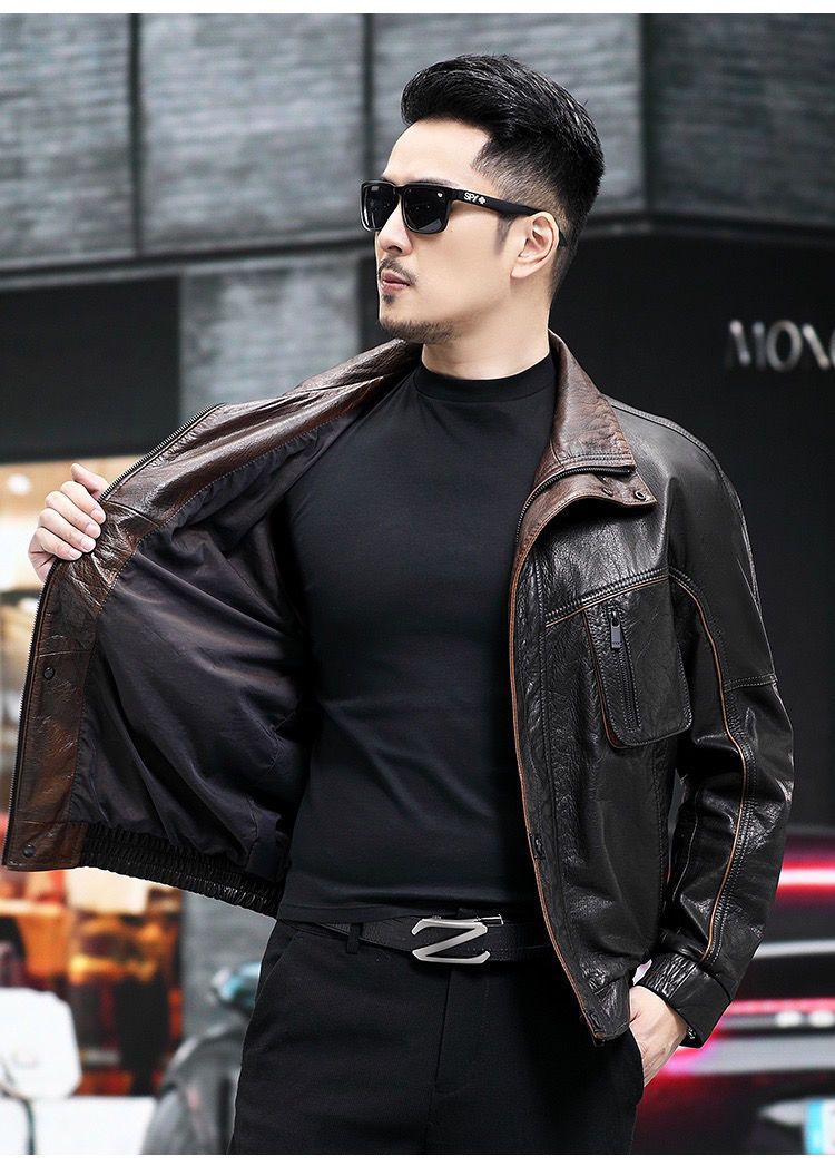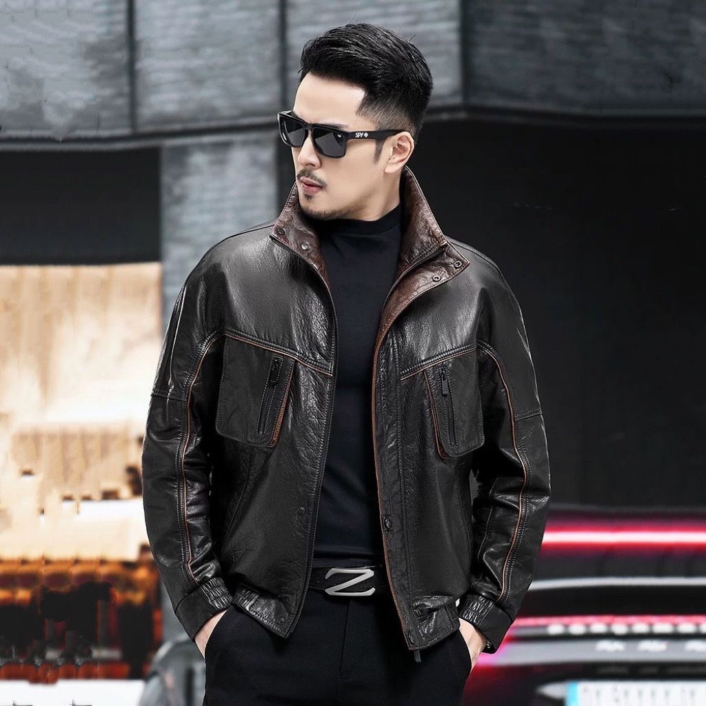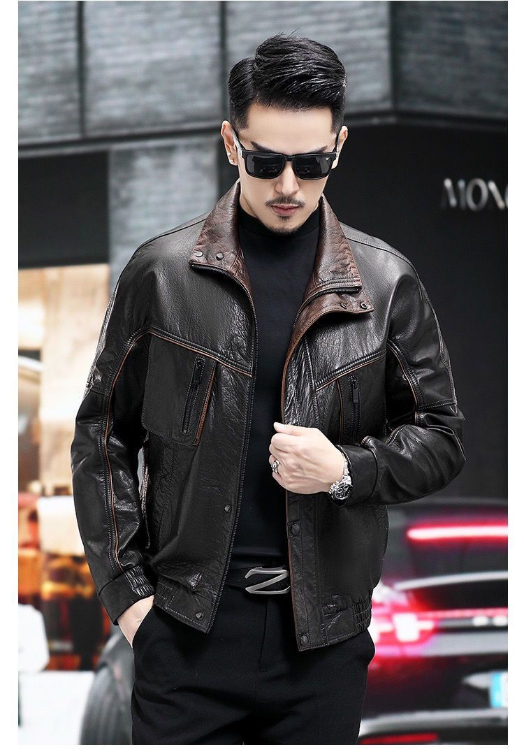 Áo khoác da nam thiết kế kiểu mặc khi lái xe, cổ bẻ đứng mang phong cách mạnh mẽ. Sản phẩm được làm từ chất da bò mềm có xử lý sáp, bề mặt da lên màu đẹp tự nhiên theo thời gian sử dụng. Áo phù hợp mặc trong tiết trời mát mẻ của mùa xuân và mùa thu. Khi mặc, nên treo bằng móc chắc chắn và lau nhẹ bằng vải mềm nếu bị bám bụi để giữ form áo và vẻ đẹp của chất da. | Tên sản phẩm: Áo Da Nam Chất Liệu Da Bò Kín Cổ Hàng Mùa Xuân Thu Đông - Thời Trang Nam | Mã sản phẩm: B5114 - Giá: 5.550.000đ | Mã nhà sản xuất: HADGA-G06Hình ảnh sản phẩm