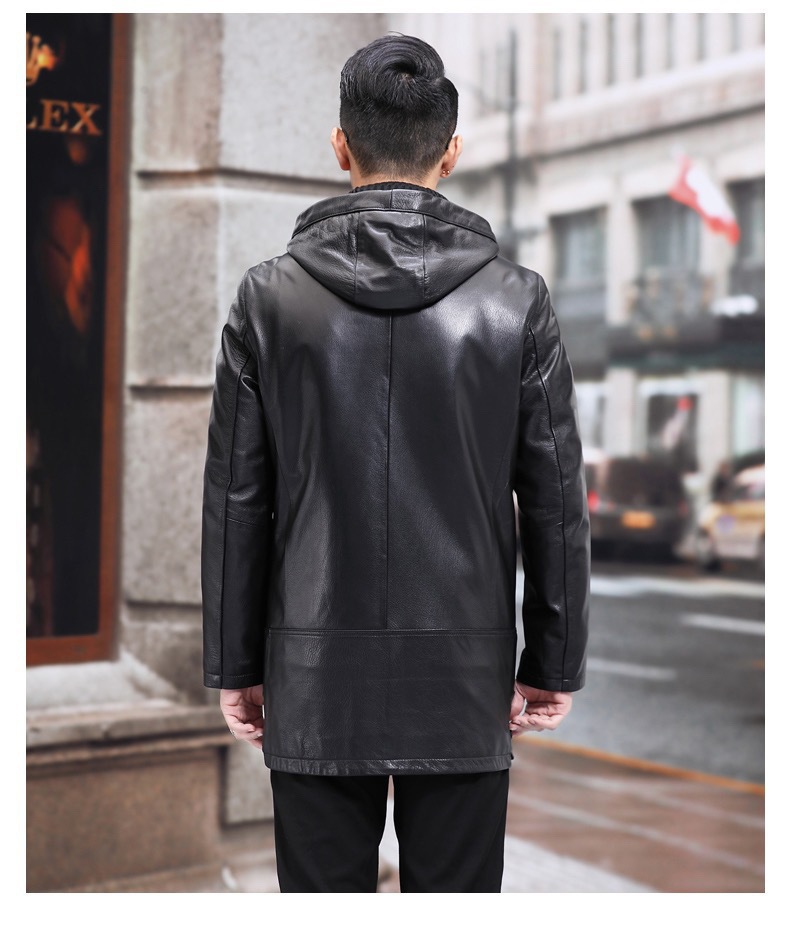 Áo khoác dành cho nam, thiết kế dáng dài qua hông, có mũ trùm tiện lợi. Sản phẩm được làm từ chất liệu da dê mềm mại bên ngoài, kết hợp cùng lớp lót bên trong bằng lông chồn ấm áp. Kiểu dáng thời trang, phù hợp mặc trong những ngày thời tiết lạnh giá. Khi sử dụng, chỉ cần mặc trực tiếp như các loại áo khoác thông thường, giúp giữ nhiệt và bảo vệ cơ thể một cách hiệu quả. | Tên sản phẩm: Áo Da Nam Chất Liệu Da Bò Mũ Liền Hàng Mùa Xuân Thu Đông - Thời Trang Nam | Mã sản phẩm: B5167 - Giá: 19.240.000đ | Mã nhà sản xuất: HADGA-G06Hình ảnh sản phẩm