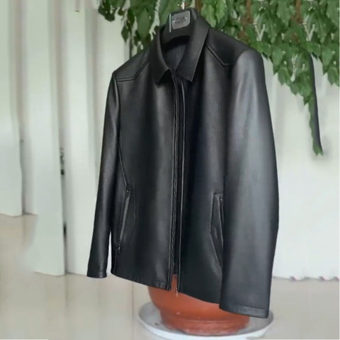 Áo khoác da dành cho nam, được làm từ chất liệu da dê bền chắc với họa tiết vân độc đáo. Kiểu dáng ngắn gọn, cổ bẻ mang đến vẻ ngoại hình lịch sự. Thiết kế này phù hợp cho tiết trời mát mẻ của mùa xuân và mùa thu. Sản phẩm có thể kết hợp cùng quần âu hoặc trang phục thường ngày. Khi mặc, tránh tiếp xúc với mưa và nên lau chùi nhẹ nhàng bằng vải mềm để giữ được độ bền đẹp. | Tên sản phẩm: Áo Da Nam Chất Liệu Da Bò Kín Cổ Hàng Mùa Xuân Thu Đông - Thời Trang Nam | Mã sản phẩm: B5169 - Giá: 7.220.000đ | Mã nhà sản xuất: HADGA-G06Hình ảnh sản phẩm
