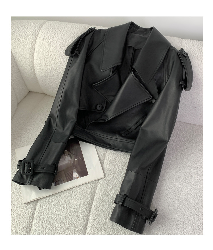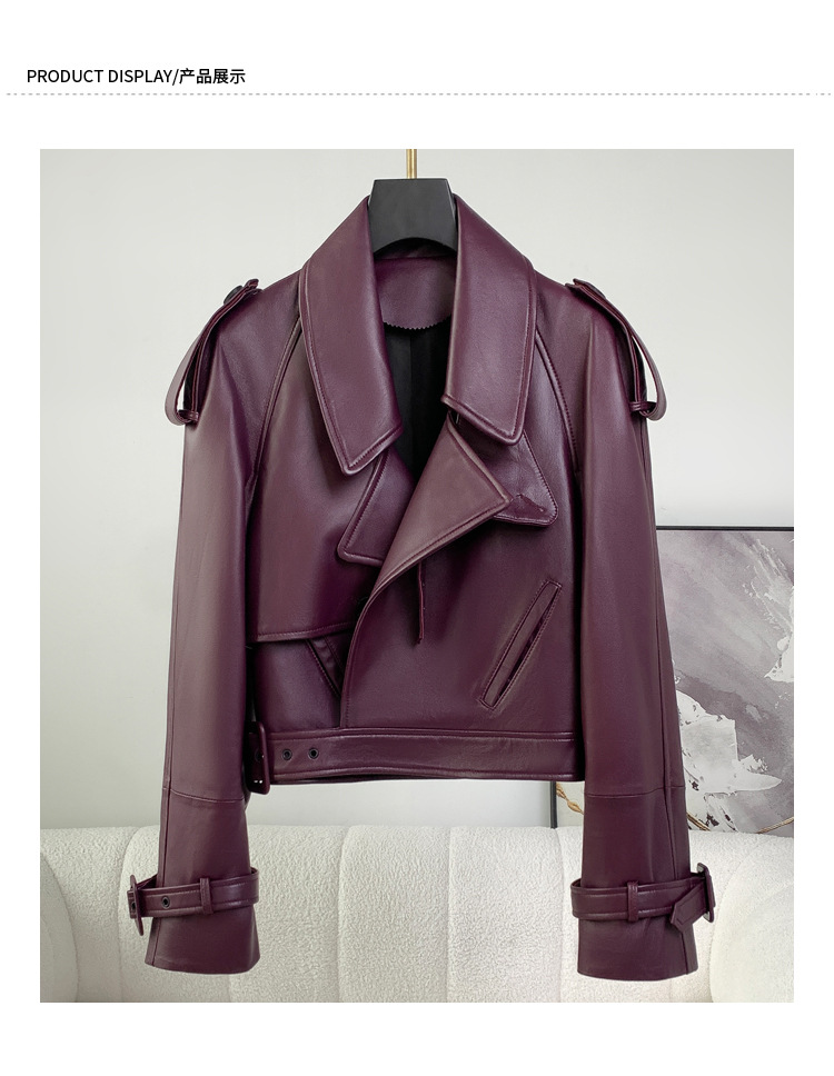 Áo khoác da cừu thật dành cho nữ, kiểu dáng phong cách mô tô kết hợp xu hướng Hàn Quốc. Chất liệu da mềm mại, thoáng khí, phù hợp mặc trong tiết trời mùa xuân và mùa thu. Thiết kế rộng rãi tạo cảm giác thoải mái, dễ dàng phối với nhiều loại trang phục khác nhau. Sản phẩm có thể mặc hằng ngày hoặc khi đi chơi, dễ bảo quản bằng cách lau sạch bề mặt và treo ở nơi khô ráo. | Tên sản phẩm: Áo Da Nữ Chất Liệu Da Bò Hàng Mùa Xuân Thu Đông Phong Cách Hàn Quốc - Thời Trang Nữ | Mã sản phẩm: B5173 - Giá: 6.010.000đ | Mã nhà sản xuất: HADGA-G06Hình ảnh sản phẩm