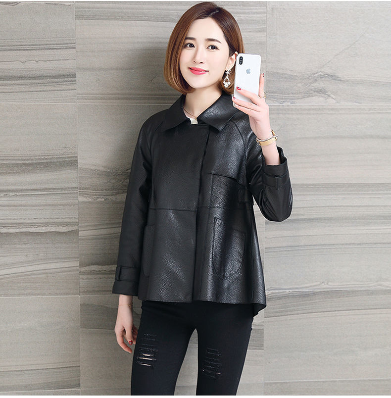 Áo khoác da cừu non cho nữ, kiểu dáng ngắn gọn gàng. Chất liệu da thật mềm mại, mang đến cảm giác dễ chịu khi mặc. Thiết kế form rộng thoải mái, cổ bẻ lịch sự, phong cách hiện đại phù hợp xu hướng. Sản phẩm thích hợp dùng vào tiết trời mùa xuân và mùa thu. Có thể phối cùng quần jeans và áo thun để tạo vẻ ngoài trẻ trung, năng động. | Tên sản phẩm: Áo Da Nữ Chất Liệu Da Bò Kín Cổ Hàng Mùa Xuân Thu Đông Phong Cách Hàn Quốc - Thời Trang Nữ | Mã sản phẩm: B5199 - Giá: 4.530.000đ | Mã nhà sản xuất: HADGA-G06Hình ảnh sản phẩm