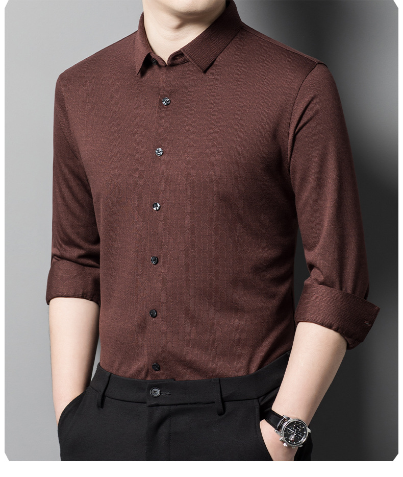 Áo sơ mi nam dành cho mùa thu đông, được dệt từ sợi len mềm mại, mang đến cảm giác dễ chịu khi mặc. Kiểu dáng cơ bản, dễ phối đồ với nhiều loại trang phục khác nhau. Thiết kế dành cho nam giới, phù hợp cho những dịp thư giãn hằng ngày. Chất vải có ưu điểm ít nhăn, giúp bảo quản dễ dàng hơn. Có thể dùng làm áo bên trong hoặc mặc riêng như một áo phông thông thường. | Tên sản phẩm: Áo Lót Nam Hàng Mùa Xuân Thu Đông Trung Niên - Thời Trang Nam | Mã sản phẩm: B5215 - Giá: 2.480.000đ | Mã nhà sản xuất: SHRYCT-G05Hình ảnh sản phẩm