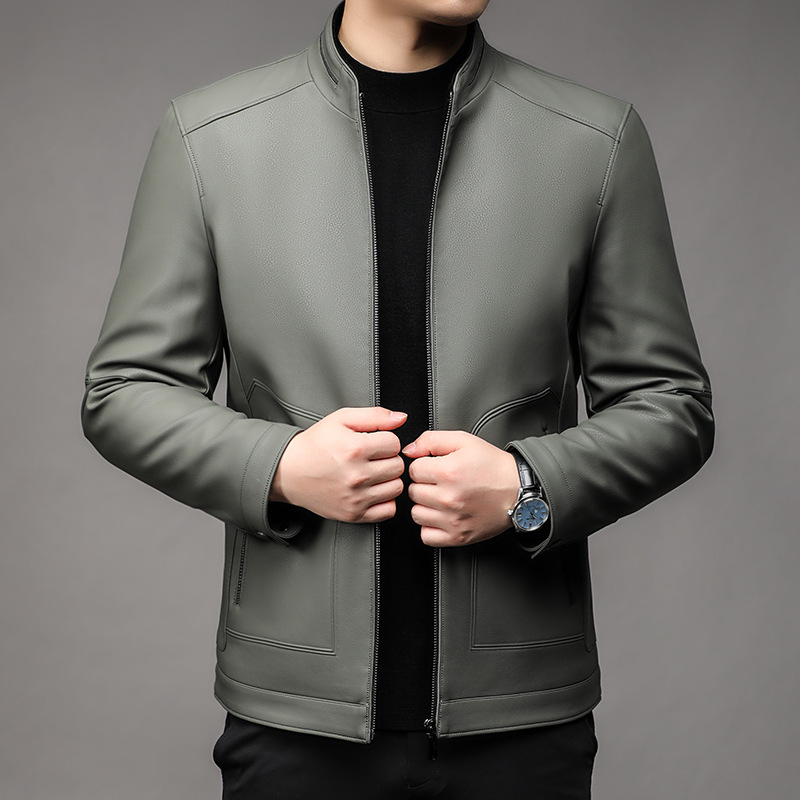 Áo khoác da thật dành cho nam, thiết kế cổ đứng mang phong cách thoải mái, phù hợp cho mùa thu đông. Bên trong áo được lót một lớp lụa mềm mại giúp giữ ấm tốt. Chất liệu da mềm, bền đẹp, tạo cảm giác dễ chịu khi mặc. Sản phẩm dễ dàng kết hợp với nhiều loại trang phục khác nhau. Có thể mặc trực tiếp, phù hợp cho nhiều dịp sinh hoạt hằng ngày. | Tên sản phẩm: Áo Da Nam Chất Liệu Da Bò Hàng Mùa Xuân Thu Đông - Thời Trang Nam | Mã sản phẩm: B5225 - Giá: 2.390.000đ | Mã nhà sản xuất: SHRYCT-G05Hình ảnh sản phẩm