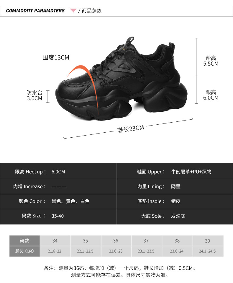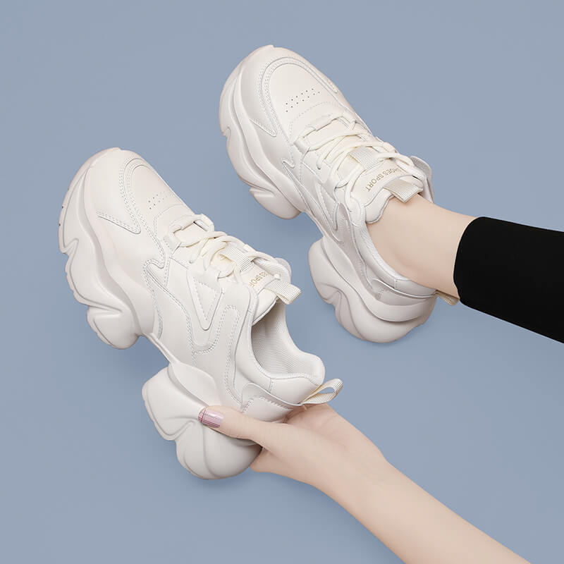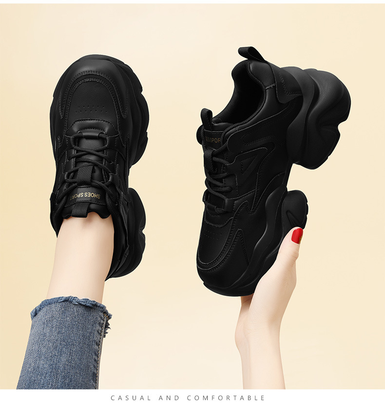 Giày thể thao nữ thiết kế dáng hầm hố, màu đen dễ phối đồ. Đế giày dày giúp tăng chiều cao nhẹ nhàng, đồng thời tạo cảm giác đôi chân thon gọn hơn. Bên trong có lớp lót mềm mại, ấm áp, phù hợp mang khi thời tiết mát mẻ. Kiểu dáng năng động, tiện dụng cho các hoạt động hằng ngày như đi dạo, gặp gỡ bạn bè. Chỉ cần kết hợp với quần jeans hay váy ngắn đều cho vẻ ngoài trẻ trung, thoải mái. | Tên sản phẩm: Giày Thể Thao Nữ Tăng Chiều Cao Đế Cao Hàng Mùa Xuân Thu Đông - Giày Dép Nữ | Mã sản phẩm: B5236 - Giá: 1.240.000đ | Mã nhà sản xuất: PUDT-G04Hình ảnh sản phẩm
