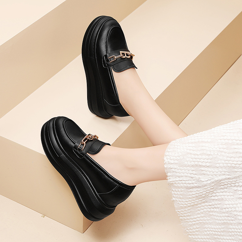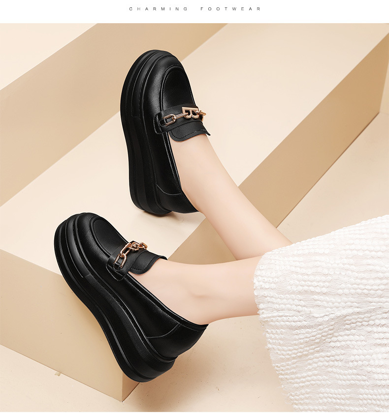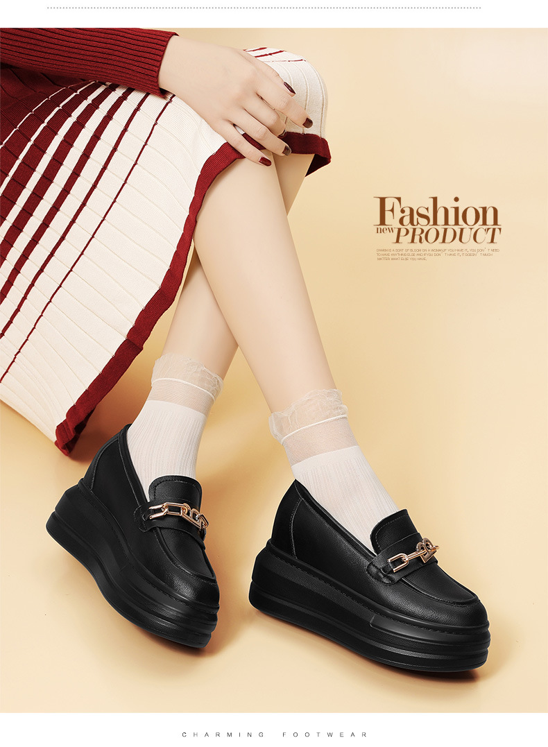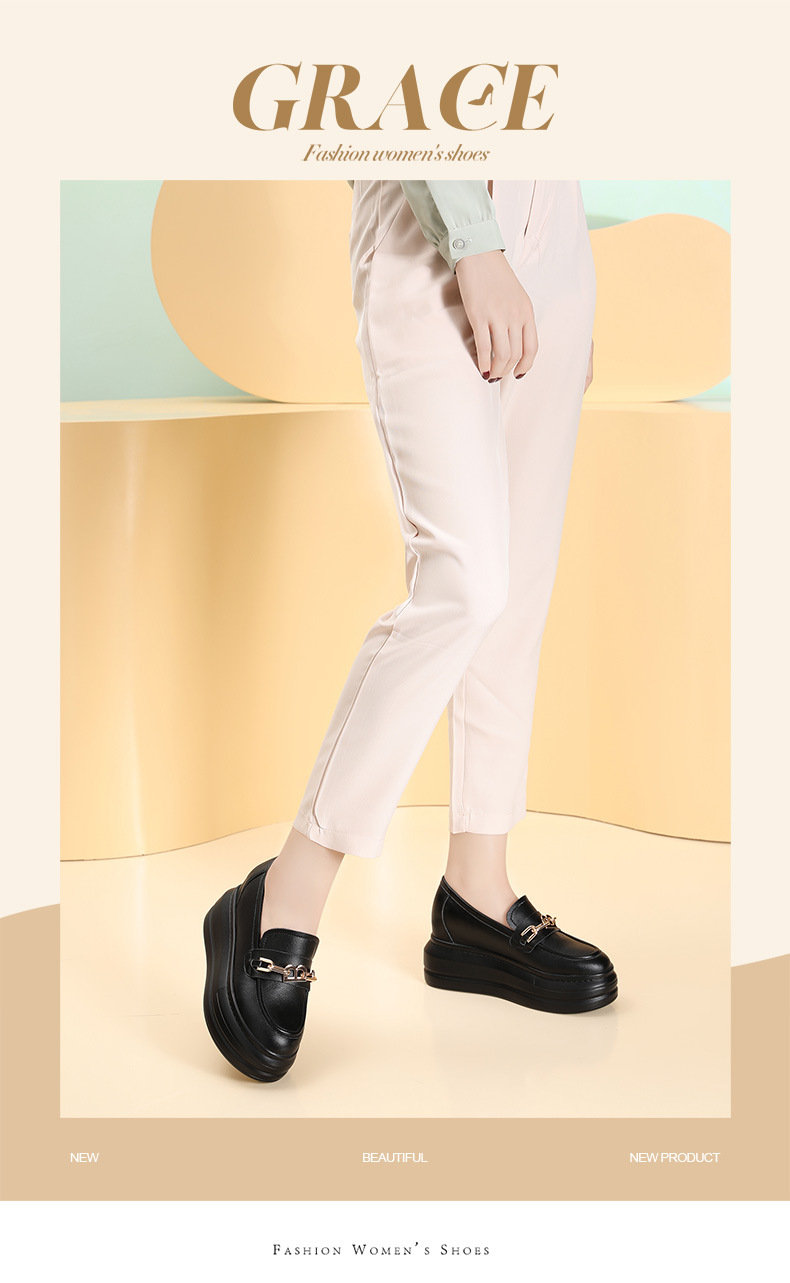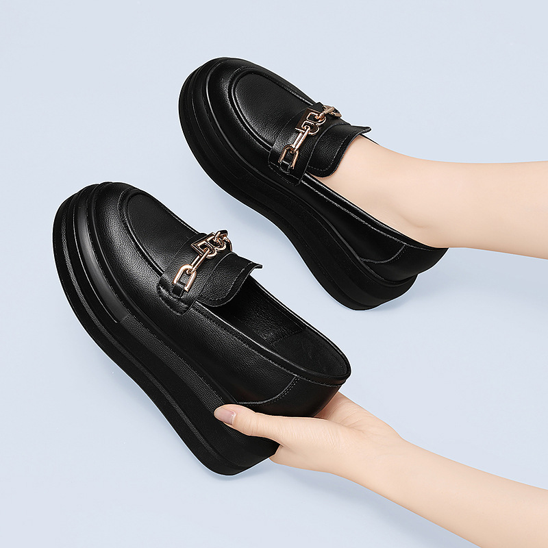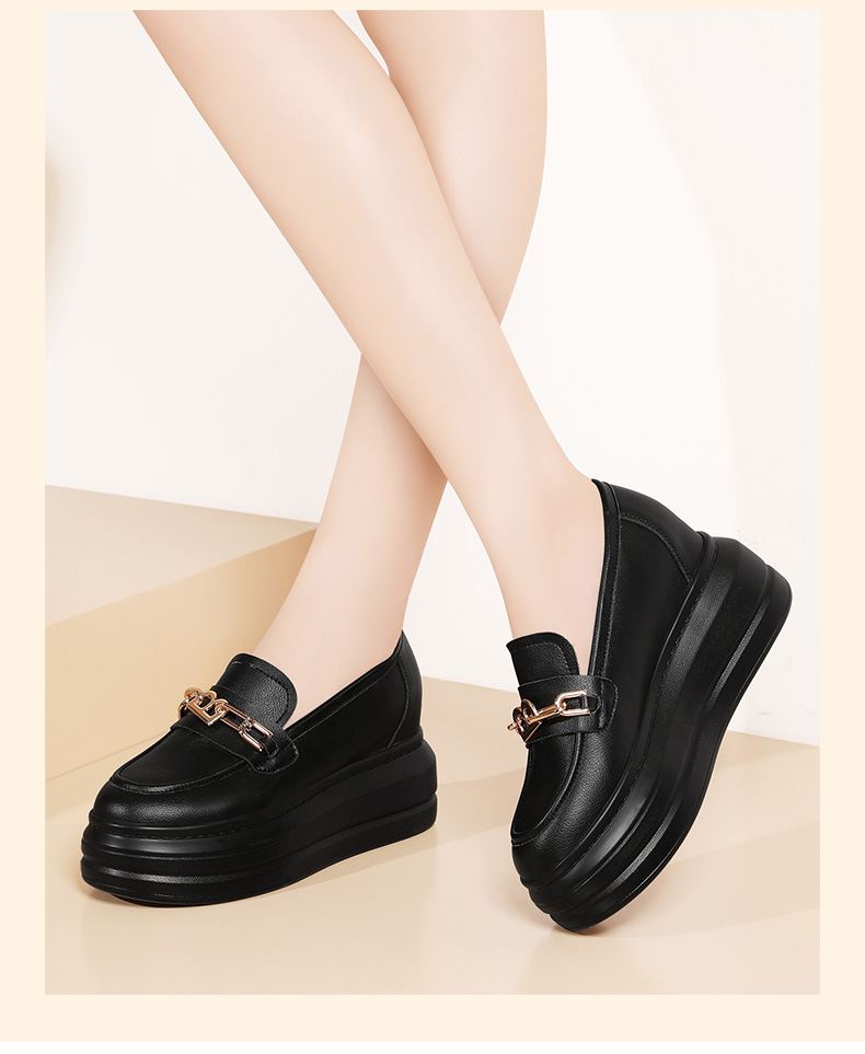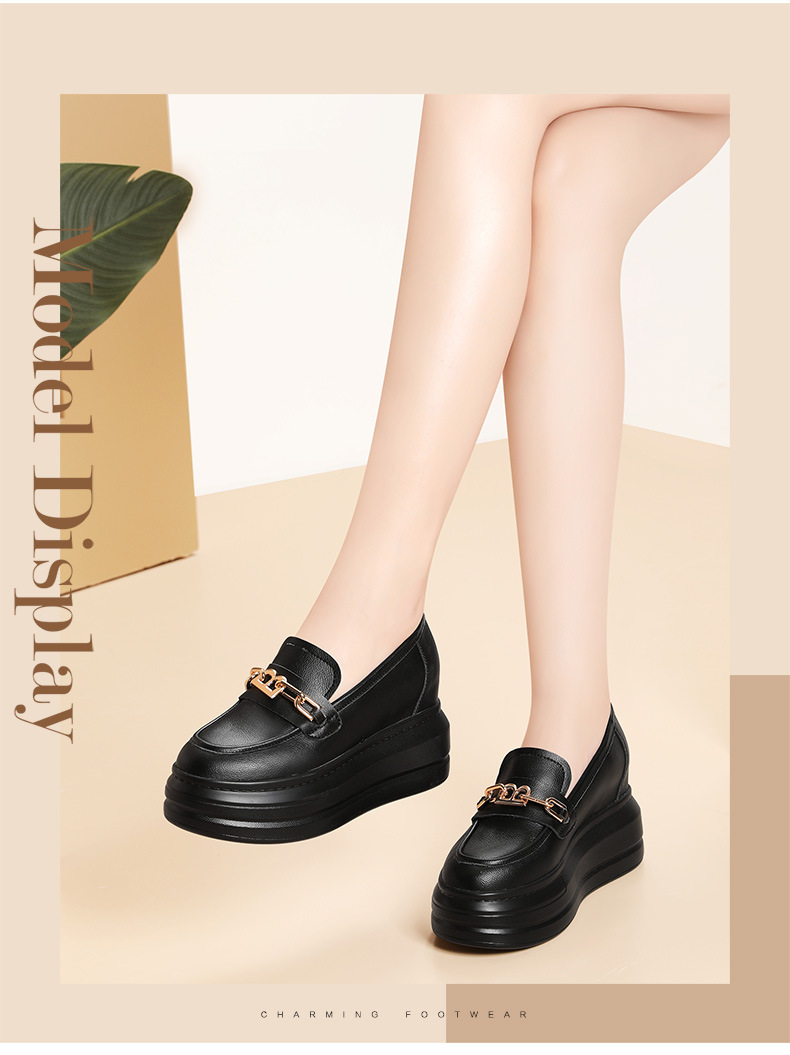 Đôi giày này có phần đế dày tạo dáng thoải mái, giúp tăng chiều cao một cách nhẹ nhàng. Kiểu dáng cổ điển theo phong cách châu Âu, phù hợp cho những ngày thu và xuân mát mẻ. Sản phẩm được làm từ chất liệu da mềm, ôm chân nhẹ nhàng. Bạn có thể dễ dàng phối cùng quần âu, chân váy hoặc quần jeans để tạo vẻ ngoài chỉn chu, lịch sự mỗi khi ra ngoài. | Tên sản phẩm: Giày Da Nữ Chất Liệu Da Bò Cao 8cm Tăng Chiều Cao Đế Cao Hàng Mùa Xuân Thu Đông - Giày Dép Nữ | Mã sản phẩm: B5244 - Giá: 1.090.000đ | Mã nhà sản xuất: PUDT-G03Hình ảnh sản phẩm