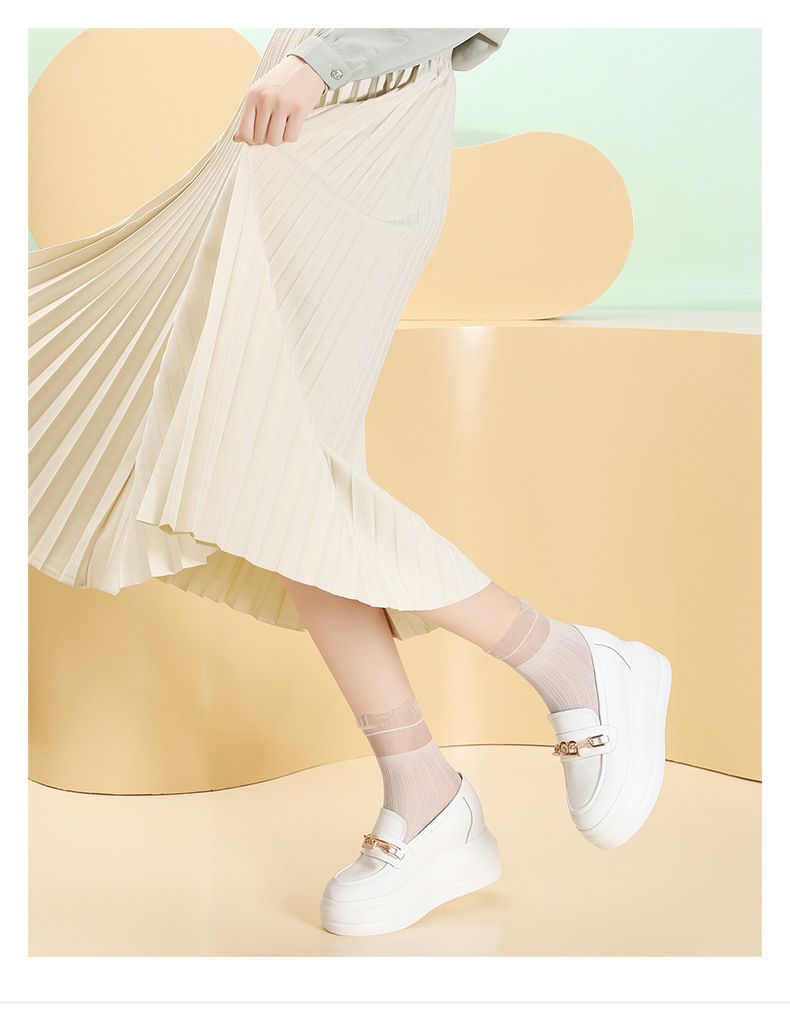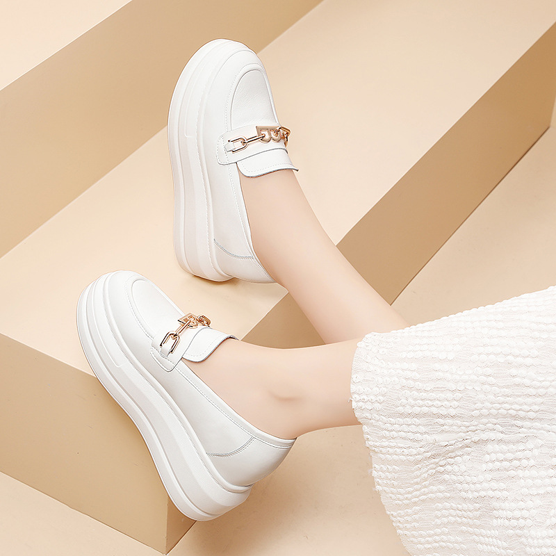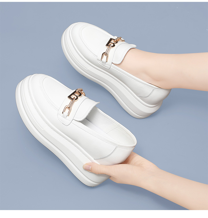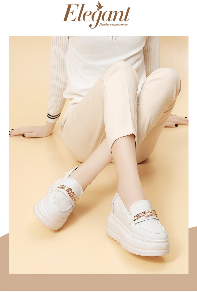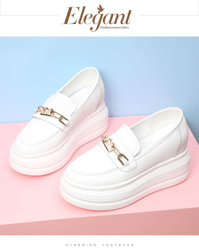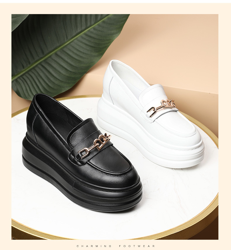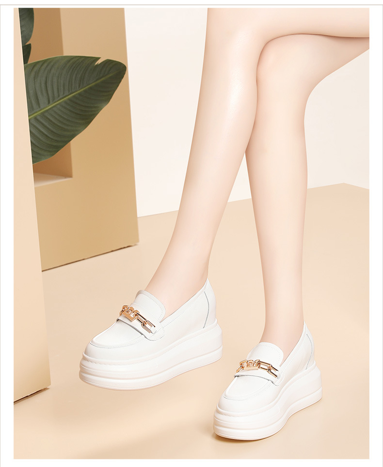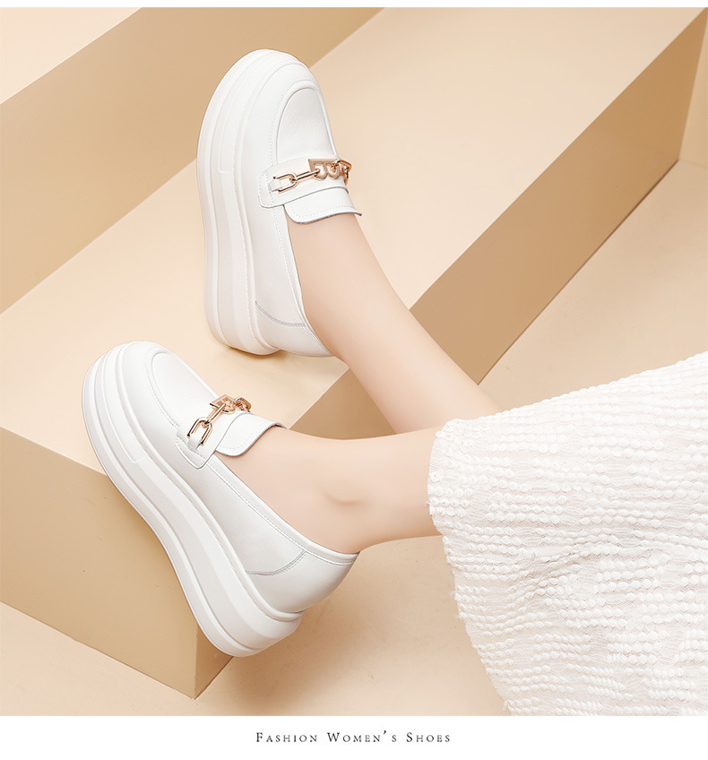 Đôi giày này có phần đế dày tạo dáng thoải mái, giúp tăng chiều cao một cách nhẹ nhàng. Kiểu dáng cổ điển theo phong cách châu Âu, phù hợp cho những ngày thu và xuân mát mẻ. Sản phẩm được làm từ chất liệu da mềm, ôm chân nhẹ nhàng. Bạn có thể dễ dàng phối cùng quần âu, chân váy hoặc quần jeans để tạo vẻ ngoài chỉn chu, lịch sự mỗi khi ra ngoài. | Tên sản phẩm: Giày Da Nữ Chất Liệu Da Bò Cao 8cm Tăng Chiều Cao Đế Cao Hàng Mùa Xuân Thu Đông - Giày Dép Nữ | Mã sản phẩm: B5244 - Giá: 1.090.000đ | Mã nhà sản xuất: PUDT-G03Hình ảnh sản phẩm