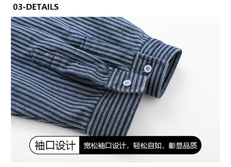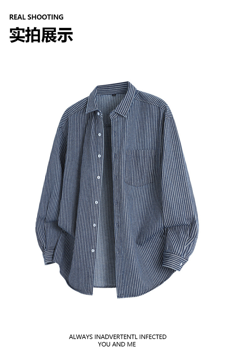 Áo khoác nam dáng rộng, kiểu dáng kết hợp giữa sơ mi và áo khoác nhẹ. Sản phẩm có cổ bẻ phong cách denim, thân áo là các sọc dọc tạo điểm nhấn. Chất vải mềm mại, mang lại sự thoải mái cho các hoạt động hằng ngày. Bạn có thể mặc như một chiếc áo sơ mi dài tay hoặc dùng làm áo khoác nhẹ bên ngoài. Phù hợp cho thời tiết mùa thu, dễ dàng phối cùng quần tây hoặc quần jeans. | Tên sản phẩm: Áo Khoác Nam Chất Liệu Jean Bò Dài Tay Kín Cổ Hàng Mùa Xuân Thu Đông - Thời Trang Nam | Mã sản phẩm: B5263 - Giá: 600.000đ | Mã nhà sản xuất: SHDLO-G01Hình ảnh sản phẩm
