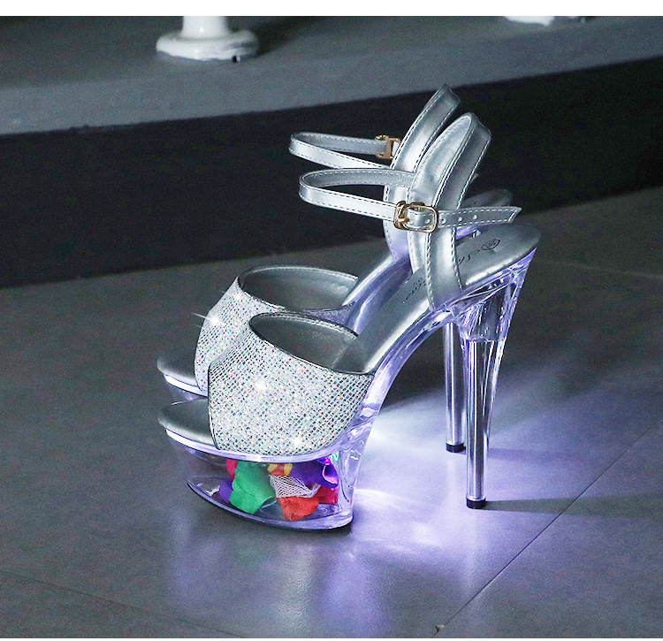 Đôi giày cao gót này có phần gót nhọn thanh thoát cao mười lăm phân. Chất da bóng đẹp và điểm xuyết những viên đá lấp lánh tinh tế. Phần đế trước được thiết kế hỗ trợ nâng đỡ bàn chân, giúp bạn di chuyển thoải mái hơn. Sản phẩm có khả năng phát sáng nhẹ trong bóng tối, tạo điểm nhấn nổi bật. Bạn có thể dễ dàng phối cùng nhiều trang phục để tạo phong cách riêng. | Tên sản phẩm: Giày Cao Gót Nữ Cao 15cm Gắn Đá Gót Nhọn - Giày Dép Nữ | Mã sản phẩm: B5270 - Giá: 940.000đ | Mã nhà sản xuất: JIENNG-G03Hình ảnh sản phẩm