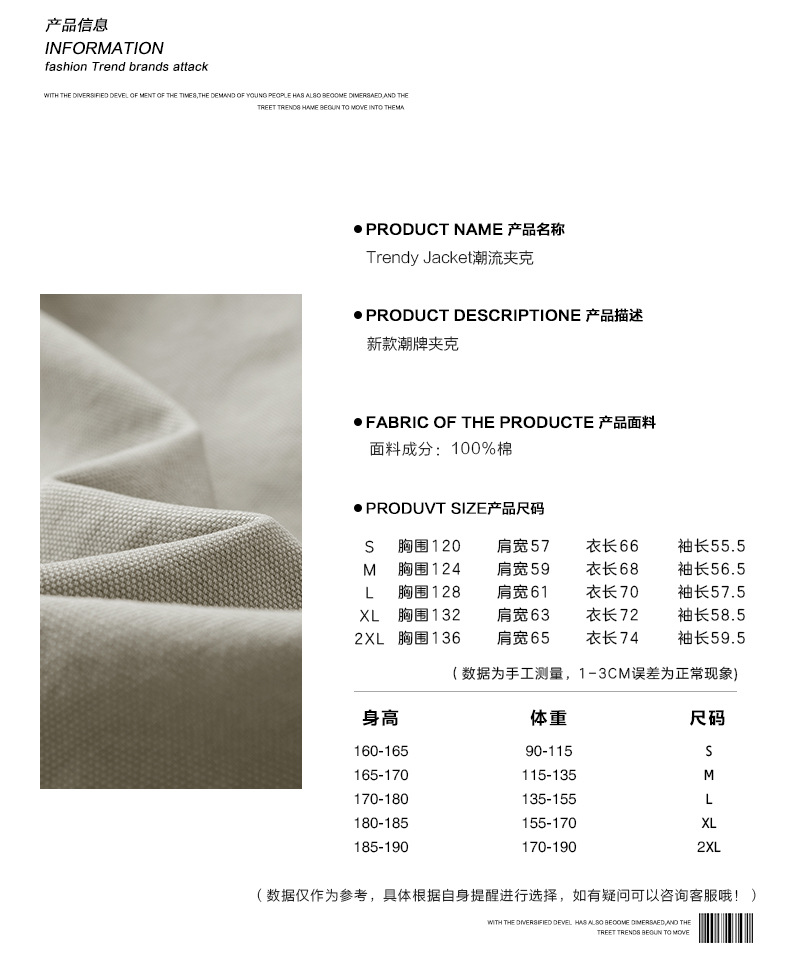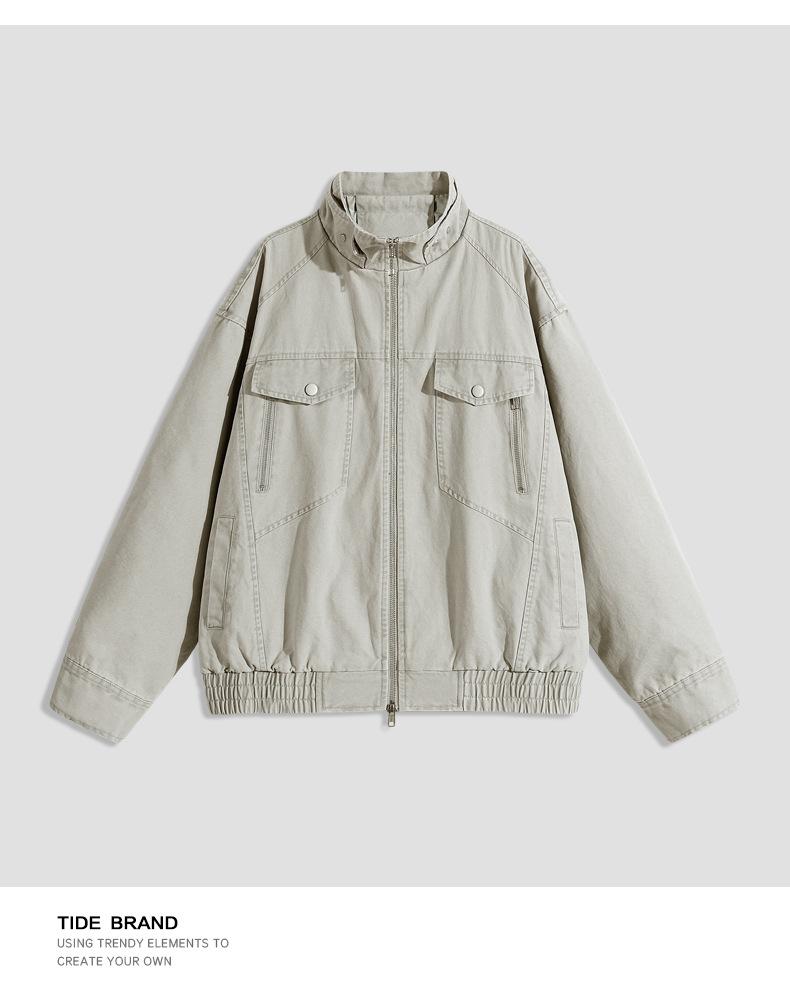 Áo khoác nam với kiểu dáng rộng rãi thoải mái, được làm từ chất liệu vải mềm mại. Thiết kế cổ đứng và phong cách kiểu Mỹ mang đến vẻ ngoài trẻ trung, năng động. Áo có kỹ thuật giặt nước tạo hiệu ứng ph màu nhẹ nhàng, phù hợp cho thời tiết mùa xuân và mùa thu. Sản phẩm dễ dàng phối cùng nhiều loại trang phục như quần jean hay áo thun. Bạn chỉ cần mặc trực tiếp và giặt theo hướng dẫn thông thường để giữ áo bền đẹp. | Tên sản phẩm: Áo Khoác Nam Chất Liệu Vải Bông Hàng Mùa Xuân Thu Đông - Thời Trang Nam | Mã sản phẩm: B5273 - Giá: 1.070.000đ | Mã nhà sản xuất: SHDLO-G03Hình ảnh sản phẩm
