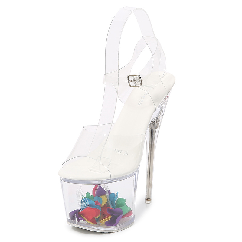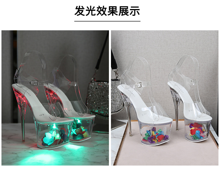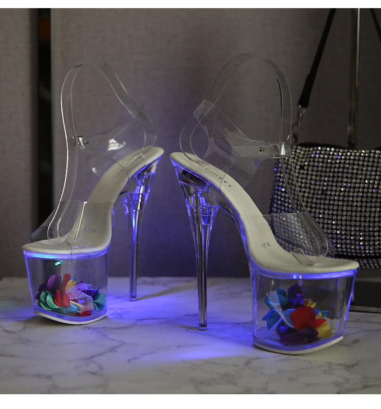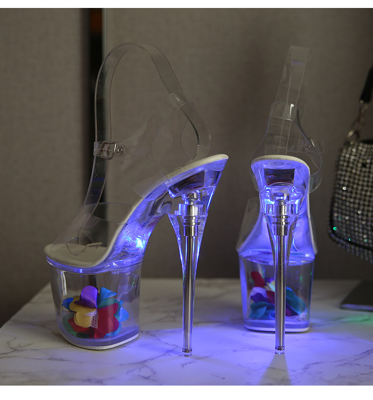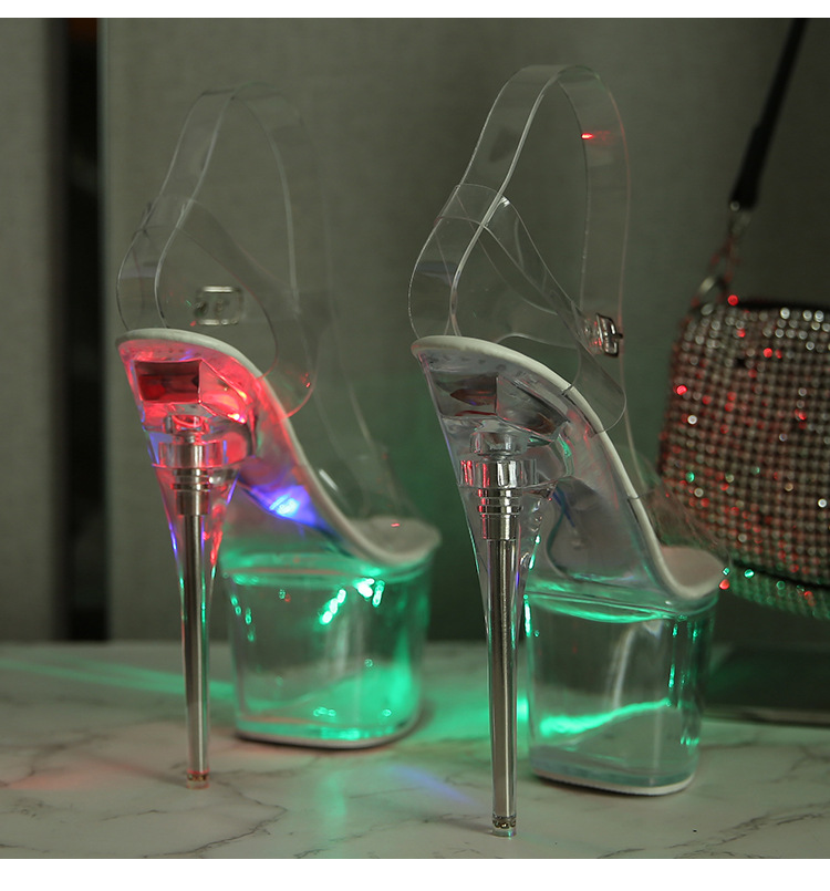 Đôi giày cao gót này có phần gót rất cao, tạo dáng thanh thoát và nổi bật. Đế giày trong suốt như pha lê, đồng thời có khả năng phát sáng khi di chuyển trong bóng tối, rất phù hợp cho các buổi tiệc hoặc biểu diễn. Sản phẩm được thiết kế chắc chắn, hỗ trợ tốt cho các bước di chuyển linh hoạt. Bạn chỉ cần xỏ chân vào, điều chỉnh dây qu cho vừa vặn và sử dụng như giày thông thường. | Tên sản phẩm: Giày Cao Gót Nữ - Giày Dép Nữ | Mã sản phẩm: B5365 - Giá: 990.000đ | Mã nhà sản xuất: JIENNG-G03Hình ảnh sản phẩm