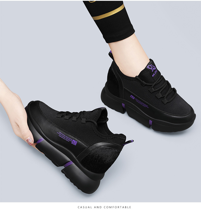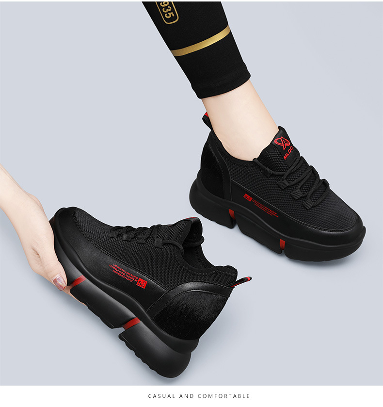 Đôi giày da mềm này có phần đế trong được thiết kế tăng chiều cao một cách tinh tế, giúp tôn dáng người mang. Kiểu dáng thể thao kết hợp với form giày lịch sự, rất dễ phối cùng nhiều trang phục khác nhau trong mùa thu đông. Đế giày làm từ chất liệu mềm dẻo, ôm sát chân và mang lại cảm giác dễ chịu khi di chuyển cả ngày. Bạn có thể sử dụng hằng ngày cho các sinh hoạt đi làm, dạo phố hay những lúc vui chơi thư giãn. | Tên sản phẩm: Giày Da Nữ Đế Mềm Tăng Chiều Cao Đế Cao Hàng Mùa Xuân Thu Đông Trung Niên - Giày Dép Nữ | Mã sản phẩm: B5413 - Giá: 1.020.000đ | Mã nhà sản xuất: PUDT-G03Hình ảnh sản phẩm