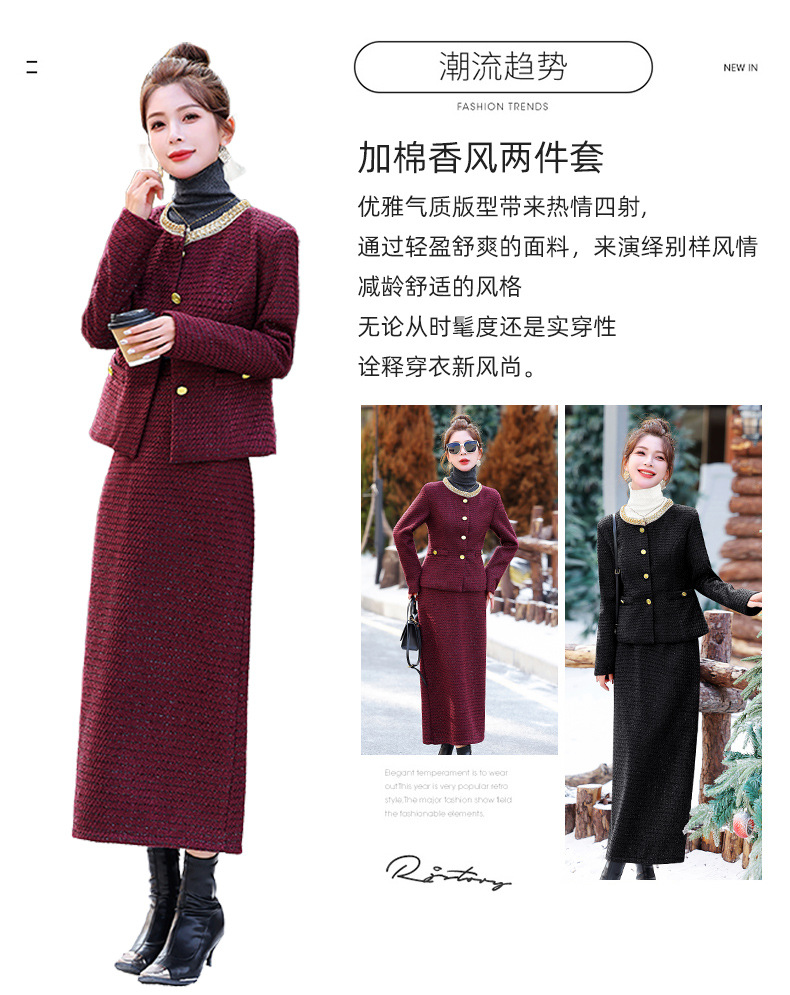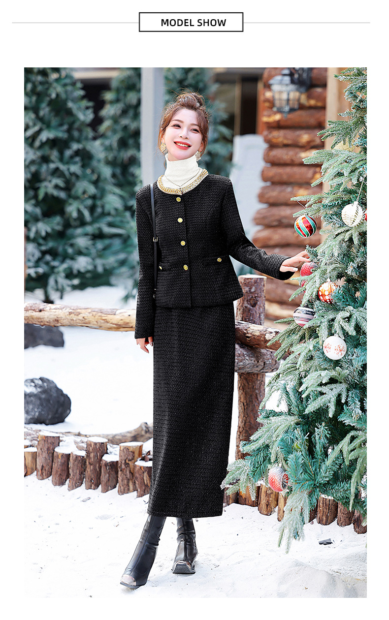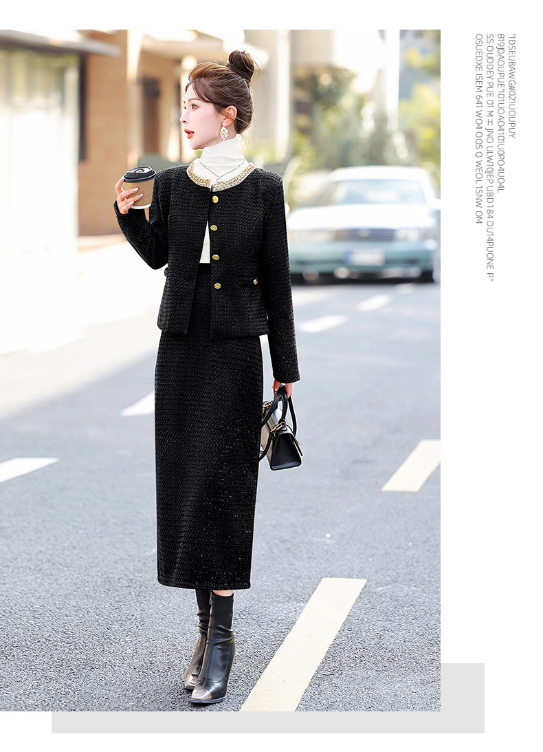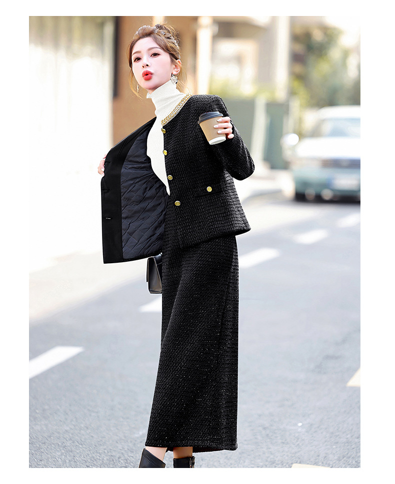 Bộ trang phục hai mảnh này có áo khoác dáng ngắn và chân váy dài, được may cùng một chất liệu vải. Áo có cổ tròn, bên trong được lót một lớp bông mỏng nhẹ giúp giữ ấm tốt. Kiểu dáng thanh lịch, phù hợp cho những ngày trời se lạnh. Bạn có thể mặc nguyên bộ để tạo vẻ chỉn chu, hoặc tách riêng từng món để kết hợp với các trang phục khác. Chất vải mềm mại, tạo cảm giác thoải mái khi mặc cả ngày dài. | Tên sản phẩm: Áo Khoác Nữ Chất Liệu Vải Bông Cả Bộ 2 Món Hàng Mùa Xuân Thu Đông - Thời Trang Nữ | Mã sản phẩm: B5423 - Giá: 2.230.000đ | Mã nhà sản xuất: HADG-G05Hình ảnh sản phẩm