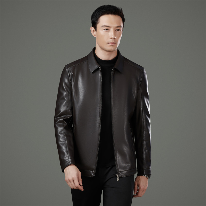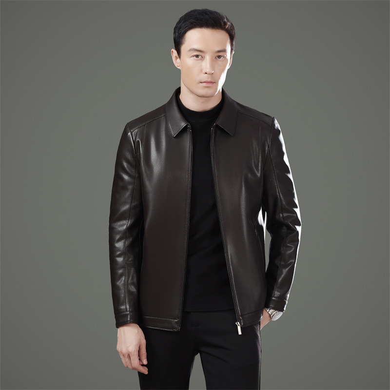 Áo khoác da dành cho nam, được làm từ chất liệu da cừu mềm mại và bền bỉ. Bên trong áo có lớp lót bằng vải dày giúp giữ ấm tốt, phù hợp cho những ngày thời tiết lạnh. Kiểu dáng áo cổ bẻ, phom dáng vừa vặn tạo cảm giác thoải mái khi mặc. Sản phẩm dễ dàng phối cùng nhiều trang phục khác nhau. Chỉ cần mặc trực tiếp và kết hợp với quần âu hoặc quần jeans để có vẻ ngoại hình chỉn chu. | Tên sản phẩm: Áo Da Nam Kín Cổ Hàng Mùa Xuân Thu Đông Trung Niên - Thời Trang Nam | Mã sản phẩm: B5446 - Giá: 2.100.000đ | Mã nhà sản xuất: SHRYCT-G05Hình ảnh sản phẩm