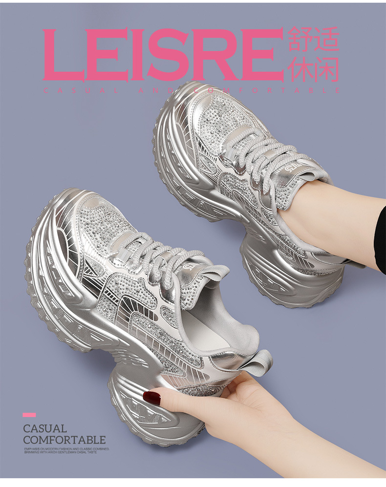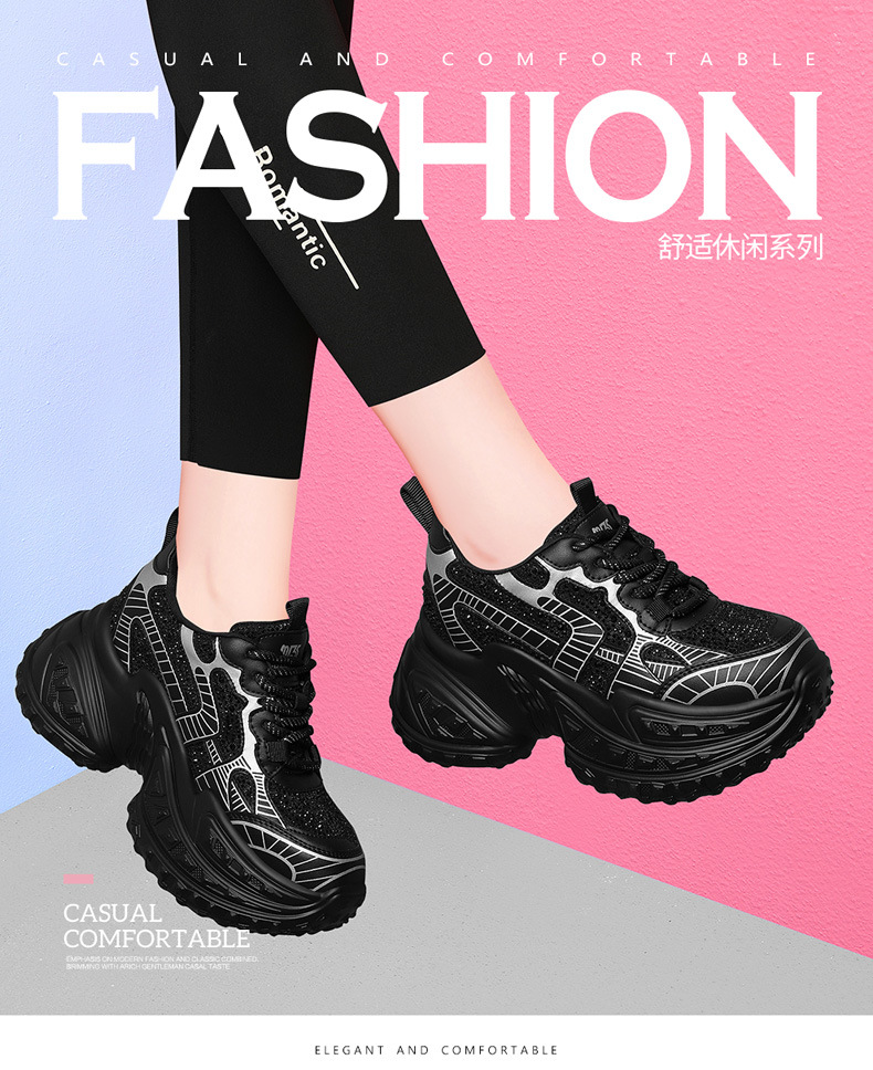 Giày thể thao nữ thiết kế dáng hầm hố với đế rất dày, giúp tăng chiều cao một cách tự nhiên. Mẫu giày này phù hợp cho nhiều dịp, từ đi chơi, dạo phố đến các hoạt động thường ngày. Chất liệu co giãn nhẹ nhàng ôm chân, mang lại cảm giác dễ chịu khi sử dụng lâu. Cách dùng đơn giản, chỉ cần xỏ chân vào và điều chỉnh dây giày cho vừa vặn. Đây là người bạn đồng hành tiện lợi cho các hoạt động trong ngày. | Tên sản phẩm: Giày Thể Thao Nữ Tăng Chiều Cao Đế Cao Hàng Mùa Xuân Thu Đông - Giày Dép Nữ | Mã sản phẩm: B5480 - Giá: 1.400.000đ | Mã nhà sản xuất: PUDT-G04Hình ảnh sản phẩm