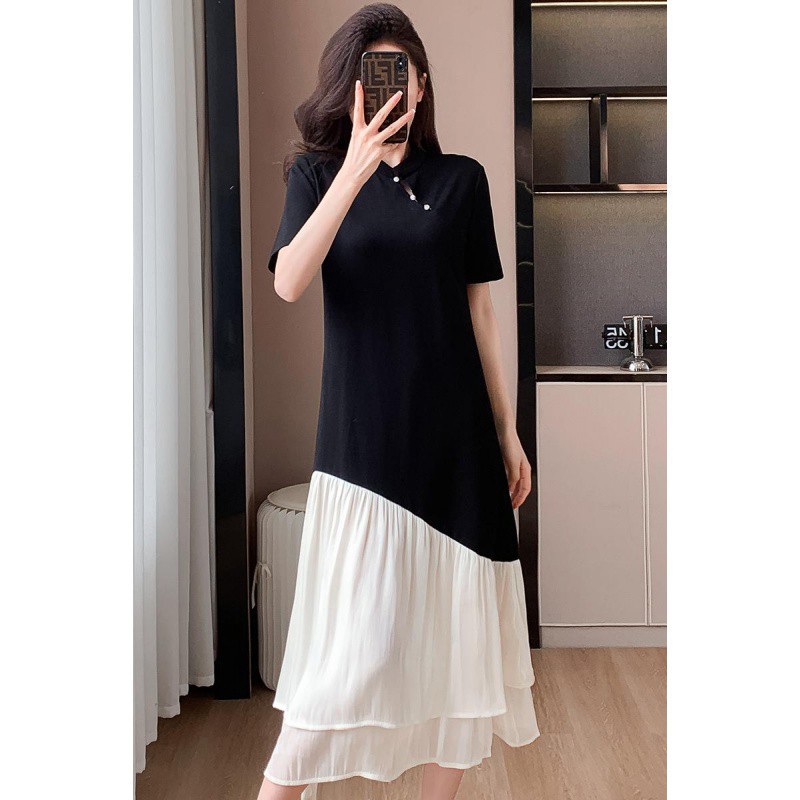 Chiếc đầm này kết hợp họa tiết cổ điển với đường nét hiện đại, tạo nên vẻ đẹp hài hòa. Thiết kế dáng dài ôn nữ tính cùng phần eo may liền giúp tôn dáng người mặc. Chất vải mềm mại, thoáng mát thích hợp cho mùa hè. Sản phẩm phối các mảng màu đối lập một cách tinh tế, có thể mặc đi làm, dự tiệc hoặc các dịp thường ngày. Dễ dàng phối với giày cao gót hay túi xách để hoàn thiện bộ trang phục. | Tên sản phẩm: Váy Đầm Liền Thân Nữ Hàng Mùa Hè - Thời Trang Nữ | Mã sản phẩm: B5502 - Giá: 810.000đ | Mã nhà sản xuất: JUOUTO-G03Hình ảnh sản phẩm