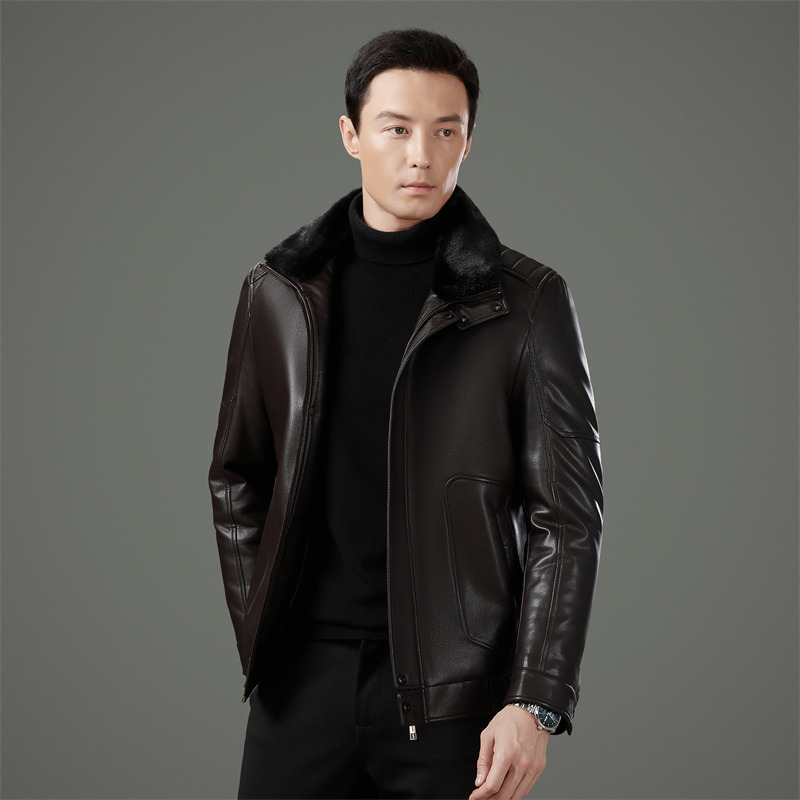 Áo khoác da thật dành cho nam, kiểu dáng cổ điển phù hợp với nhiều dịp. Sản phẩm có phần cổ áo được làm từ lông thú mềm mại, giữ ấm tốt cho những ngày trời lạnh. Chất liệu da bền đẹp, form áo ôm vừa vặn, mang đến cảm giác thoải mái khi mặc. Bạn có thể dùng làm áo đi làm, dạo phố hoặc trong các sinh hoạt thường ngày. Giặt khô và bảo quản nơi thoáng mát để sản phẩm luôn bền đẹp. | Tên sản phẩm: Áo Da Nam Chất Liệu Da Bò Dày Ấm Hàng Mùa Xuân Thu Đông Trung Niên - Thời Trang Nam | Mã sản phẩm: B5504 - Giá: 3.130.000đ | Mã nhà sản xuất: SHRYCT-G06Hình ảnh sản phẩm