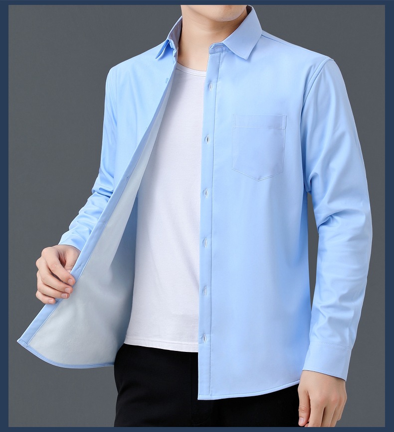 Áo sơ mi nam dành cho tiết trời se lạnh, bên trong có lớp lông mềm mại giữ ấm tốt. Kiểu dáng kết hợp linh hoạt giữa công sở và đi chơi, phù hợp nhiều dịp. Thiết kế thẳng form, tạo vẻ lịch sự nhưng vẫn thoải mái. Chất vải ít nhăn, tiết kiệm thời gian ủi là. Dễ dàng phối cùng quần tây hoặc quần jeans để có vẻ ngoài chỉn chu. | Tên sản phẩm: Áo Sơ Mi Nam Hàng Mùa Xuân Thu Đông Đồ Công Sở - Thời Trang Nam | Mã sản phẩm: B5507 - Giá: 1.810.000đ | Mã nhà sản xuất: SHRYCT-G05Hình ảnh sản phẩm
