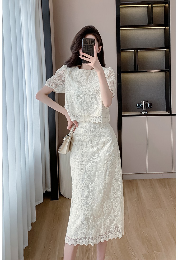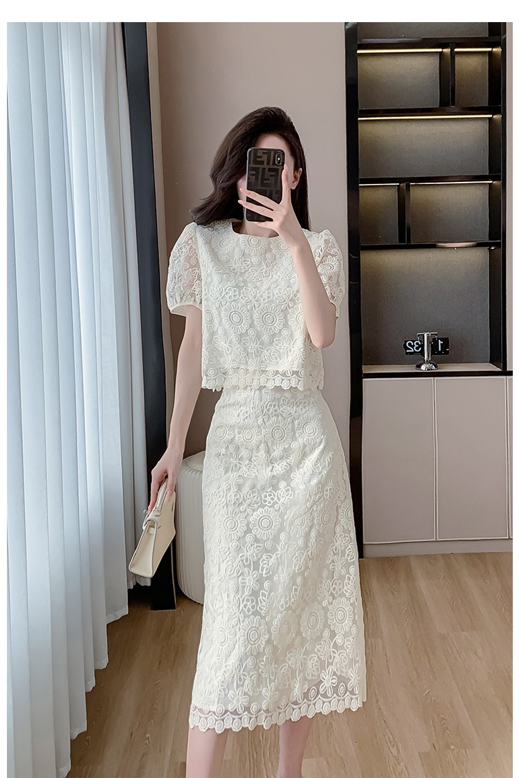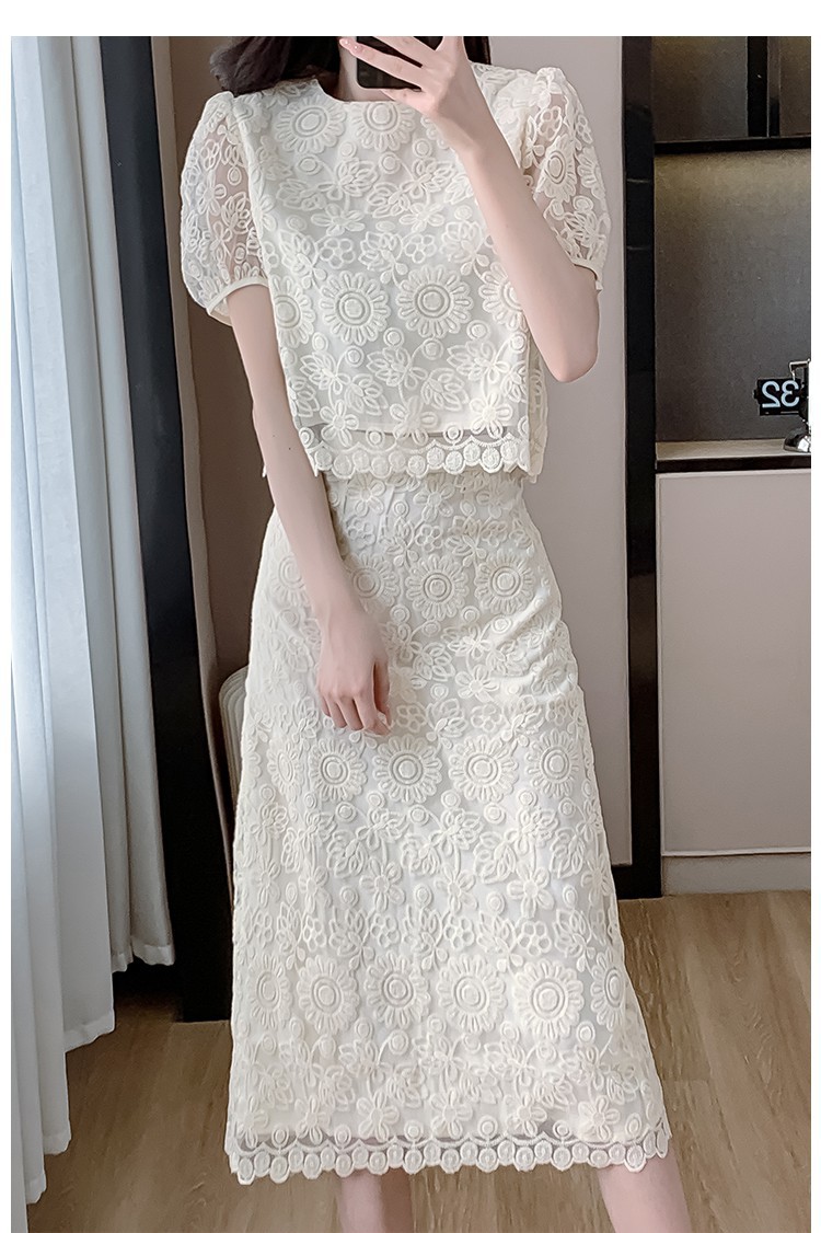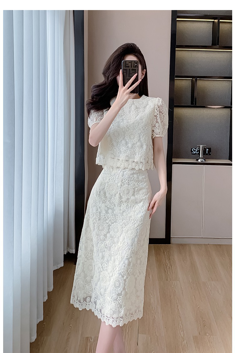 Bộ trang phục này gồm áo và chân váy, được kết hợp hài hòa tạo nên vẻ đẹp nhẹ nhàng, thanh lịch. Áo có họa tiết ren tinh tế, phối cùng chân váy ngắn cùng tông màu, giúp tôn lên nét duyên dáng cho người mặc. Chất vải mềm mại, thoáng mát, mang lại cảm giác dễ chịu. Bạn có thể mặc bộ này đi làm, đi chơi hay dự những buổi gặp mặt thân mật. Phù hợp để phối với giày cao gót hoặc giày bệt để hoàn thiện bộ trang phục. | Tên sản phẩm: Đồ Bộ Nữ Chất Liệu Ren Cả Bộ 2 Món - Thời Trang Nữ | Mã sản phẩm: B5540 - Giá: 980.000đ | Mã nhà sản xuất: JUOUTO-G03Hình ảnh sản phẩm